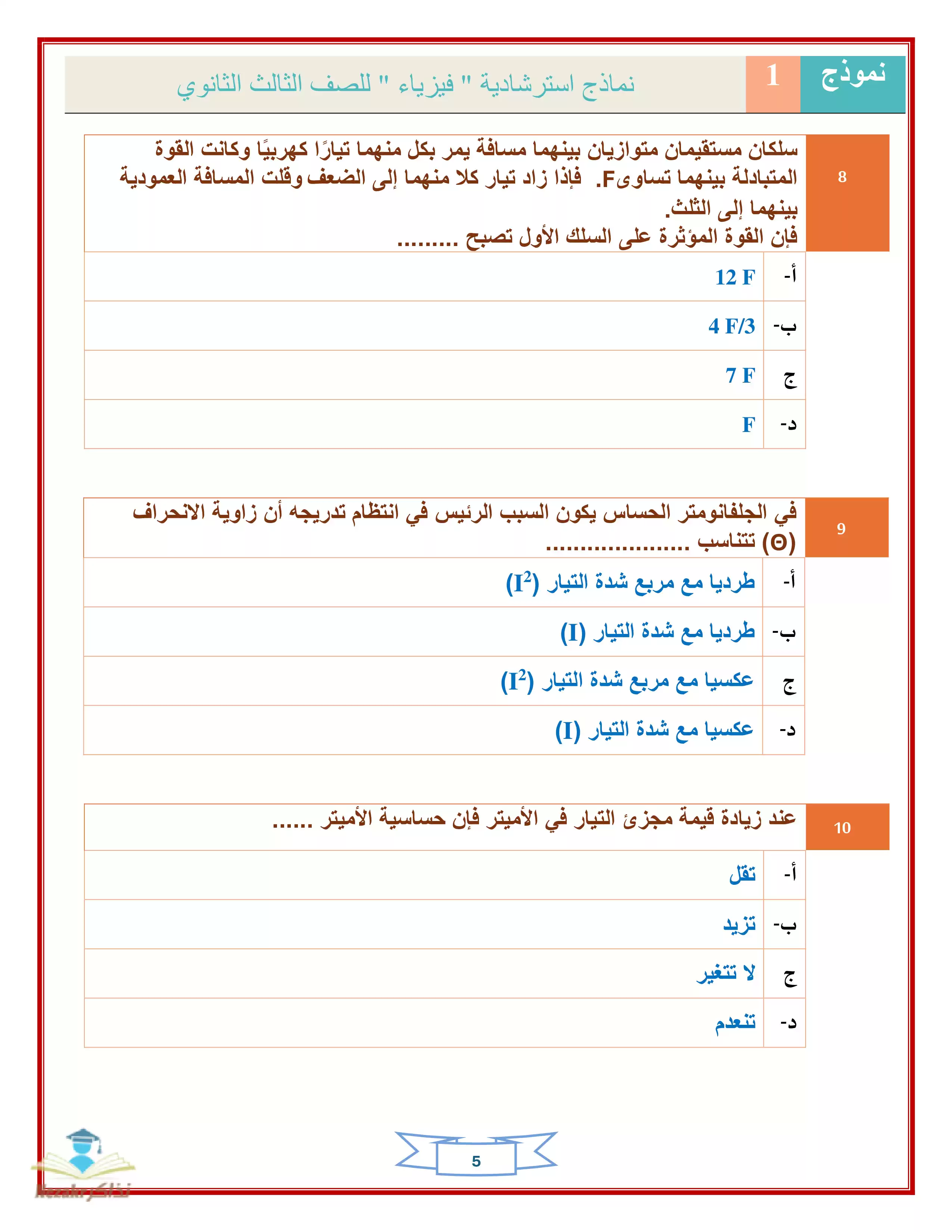 | بيانات الملف: (نماذج امتحانات الوزارة الاسترشادية في الفيزياء للثانوية العامة شهر أبريل ٢٠٢٥ - Nezakr) | |