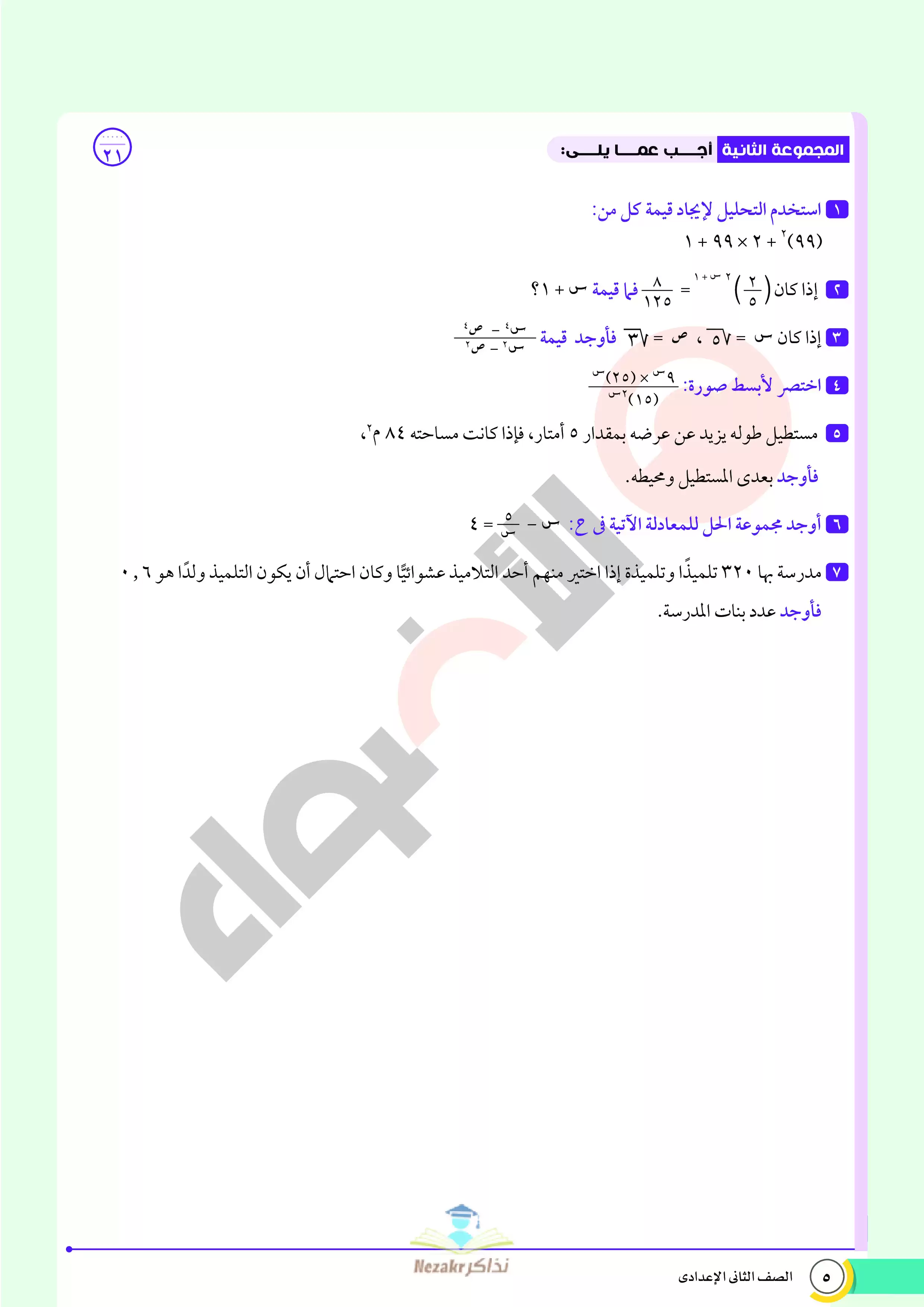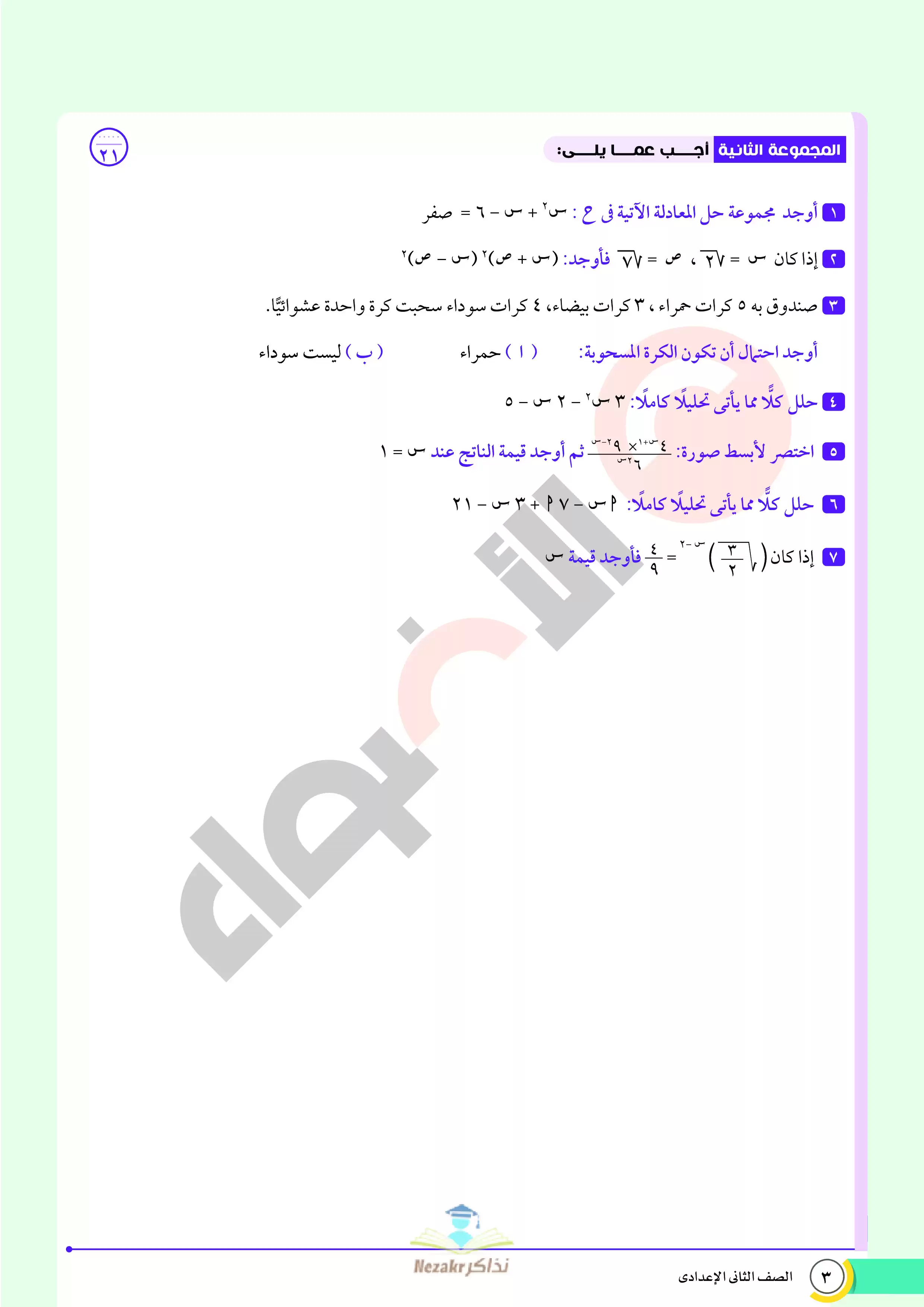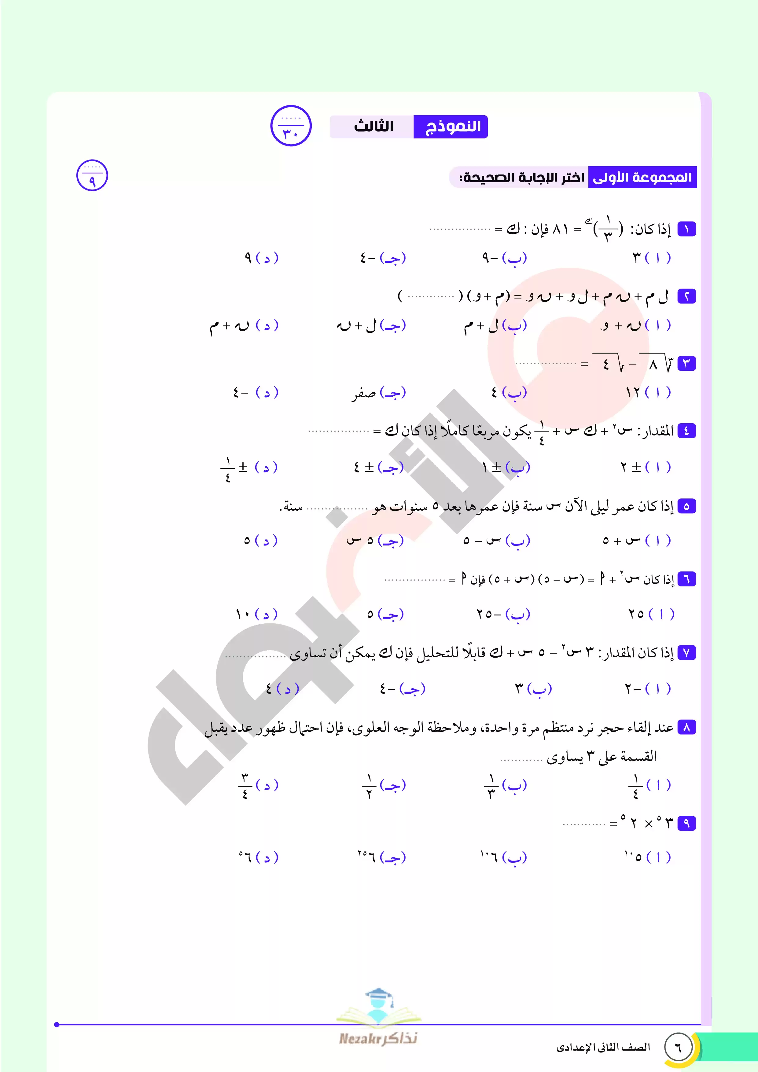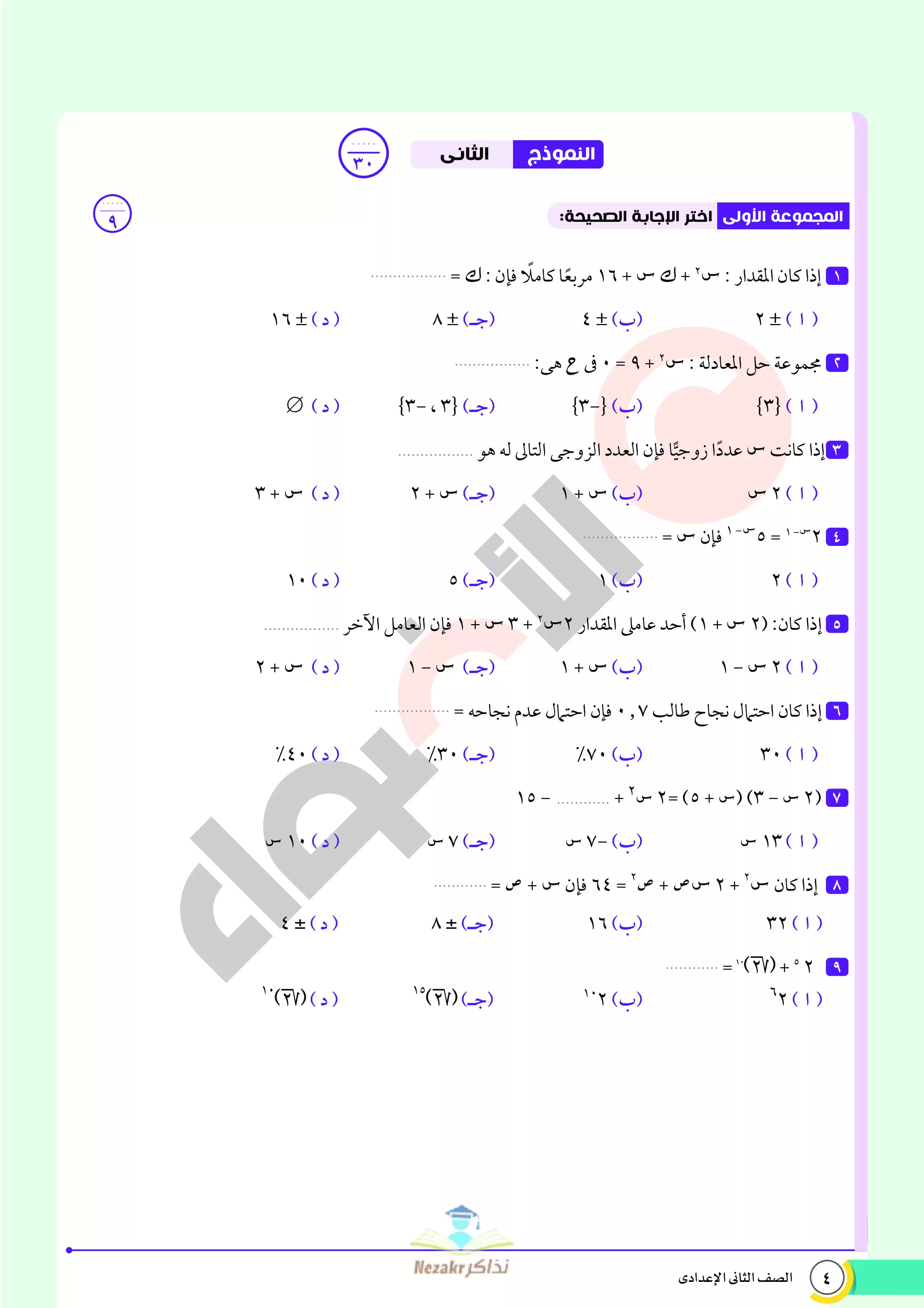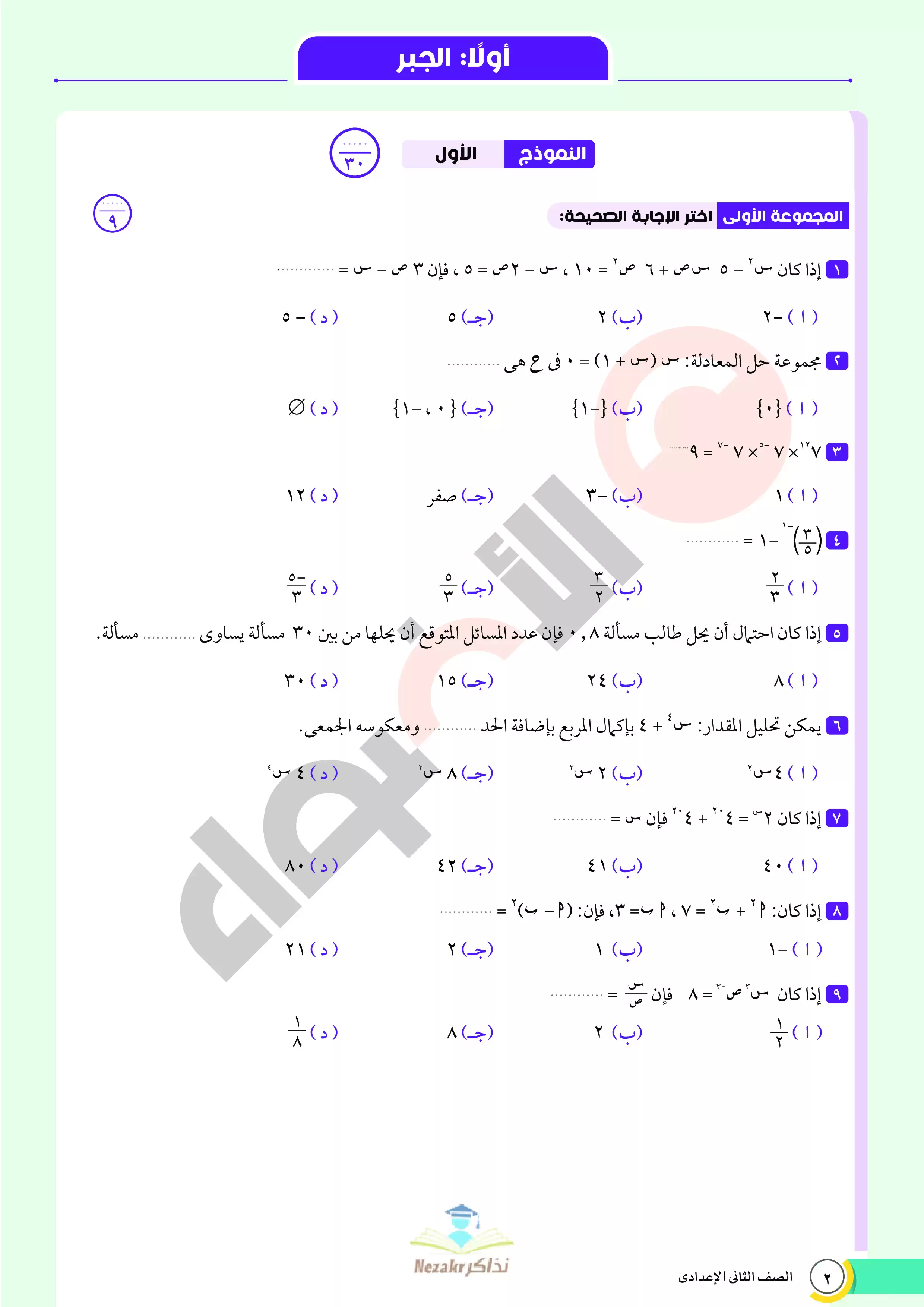 | بيانات الملف: (نماذج اختبارات ومراجعة الأضواء النهائية في مادة الرياضيات للصف الثاني الإعدادي الترم الثاني 2025 - Nezakr) | |