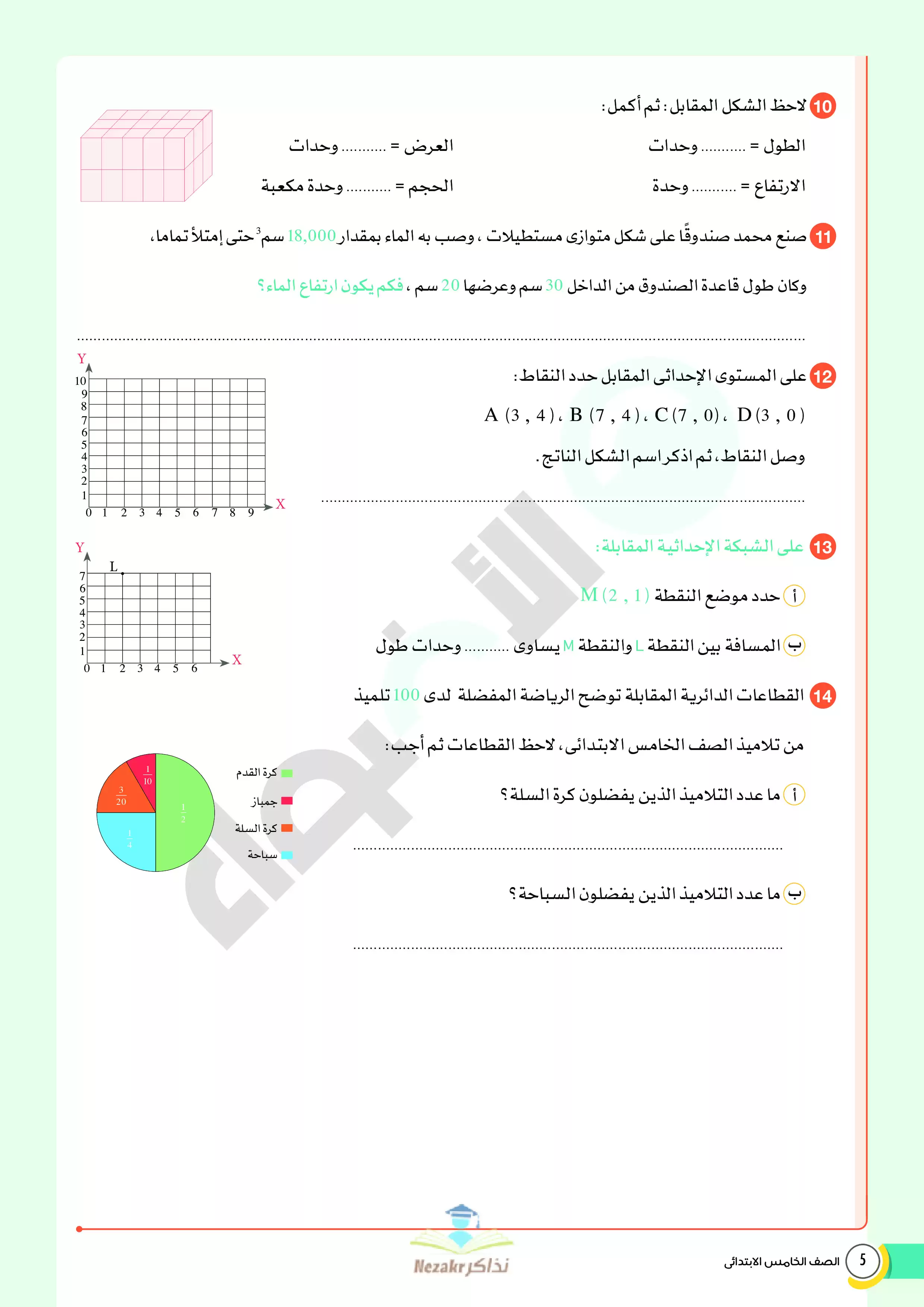 صفحة 5 من 26 صفحة من ملف: نماذج اختبارات ومراجعة الأضواء النهائية في الرياضيات للصف الخامس الابتدائي الترم الثاني 2025 - Nezakr