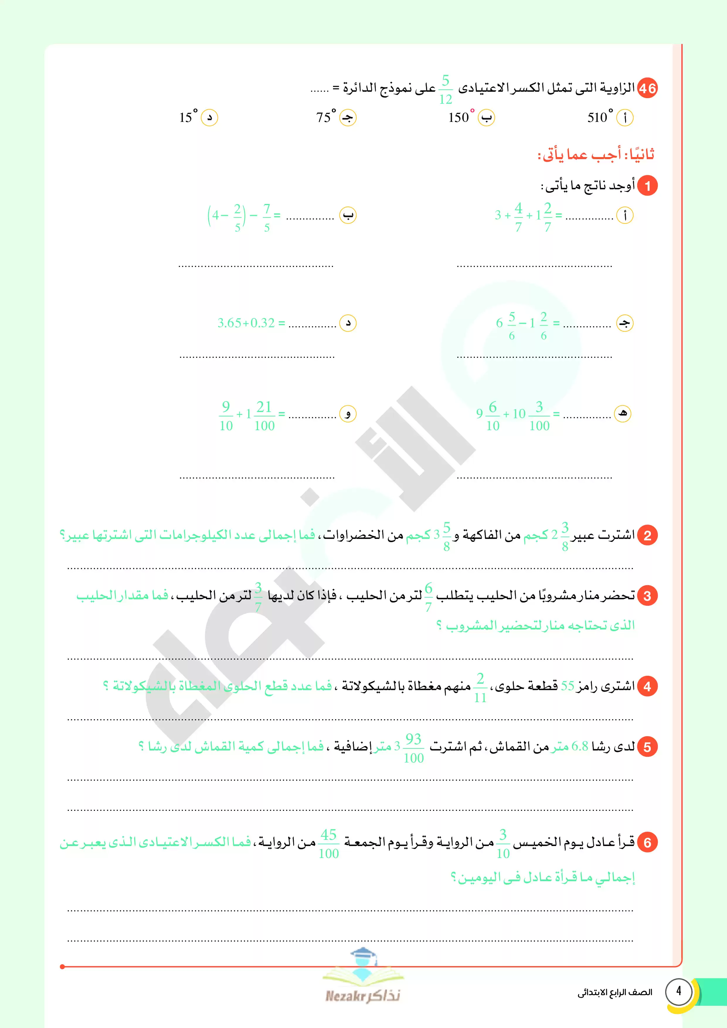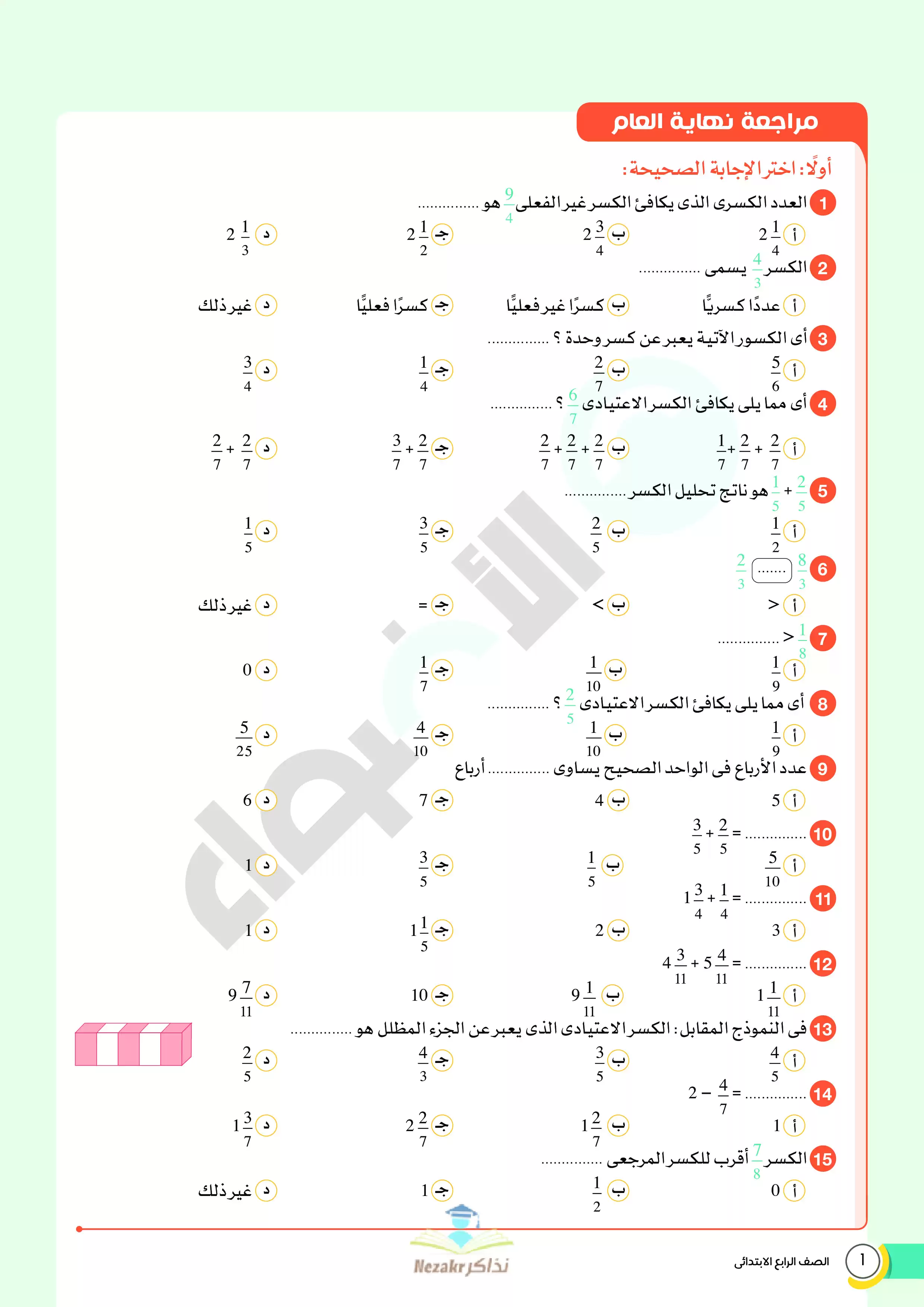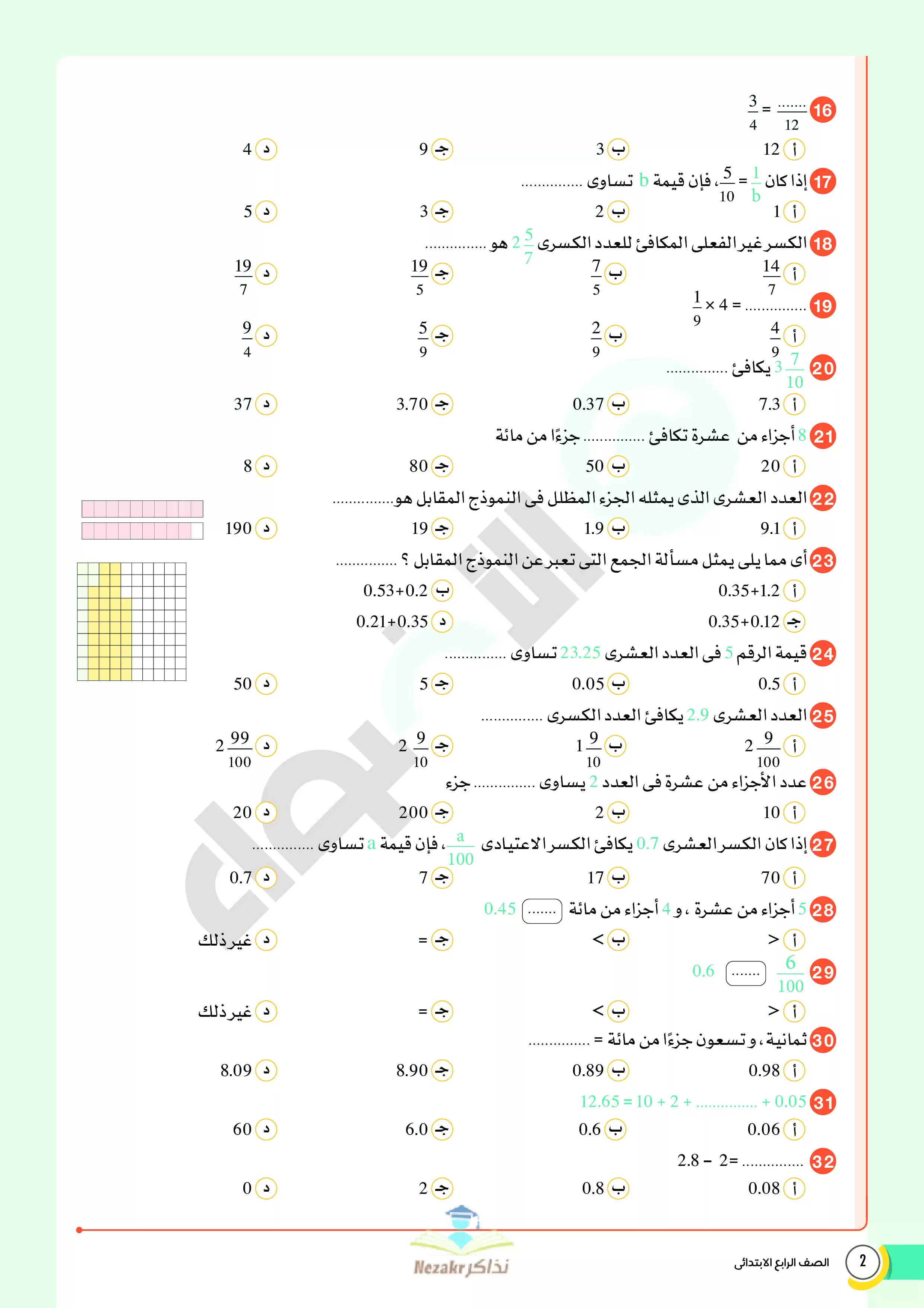 | بيانات الملف: (نماذج اختبارات ومراجعة الأضواء النهائية في الرياضيات للصف الرابع الابتدائي الترم الثاني 2025 - Nezakr) | |
