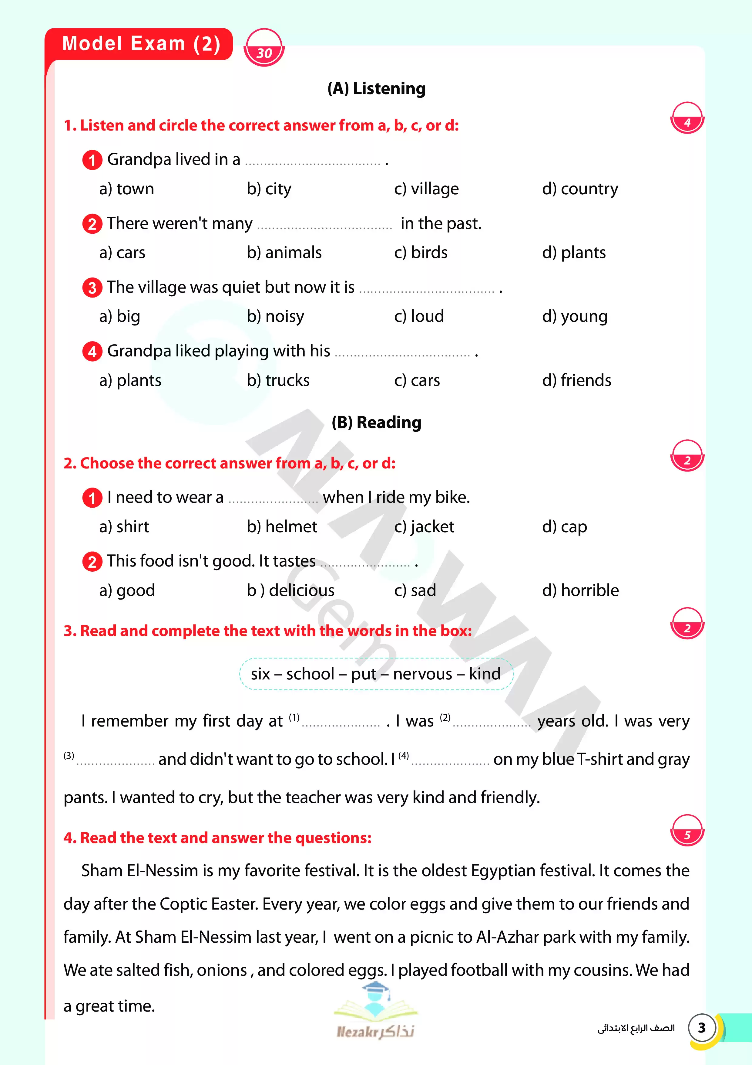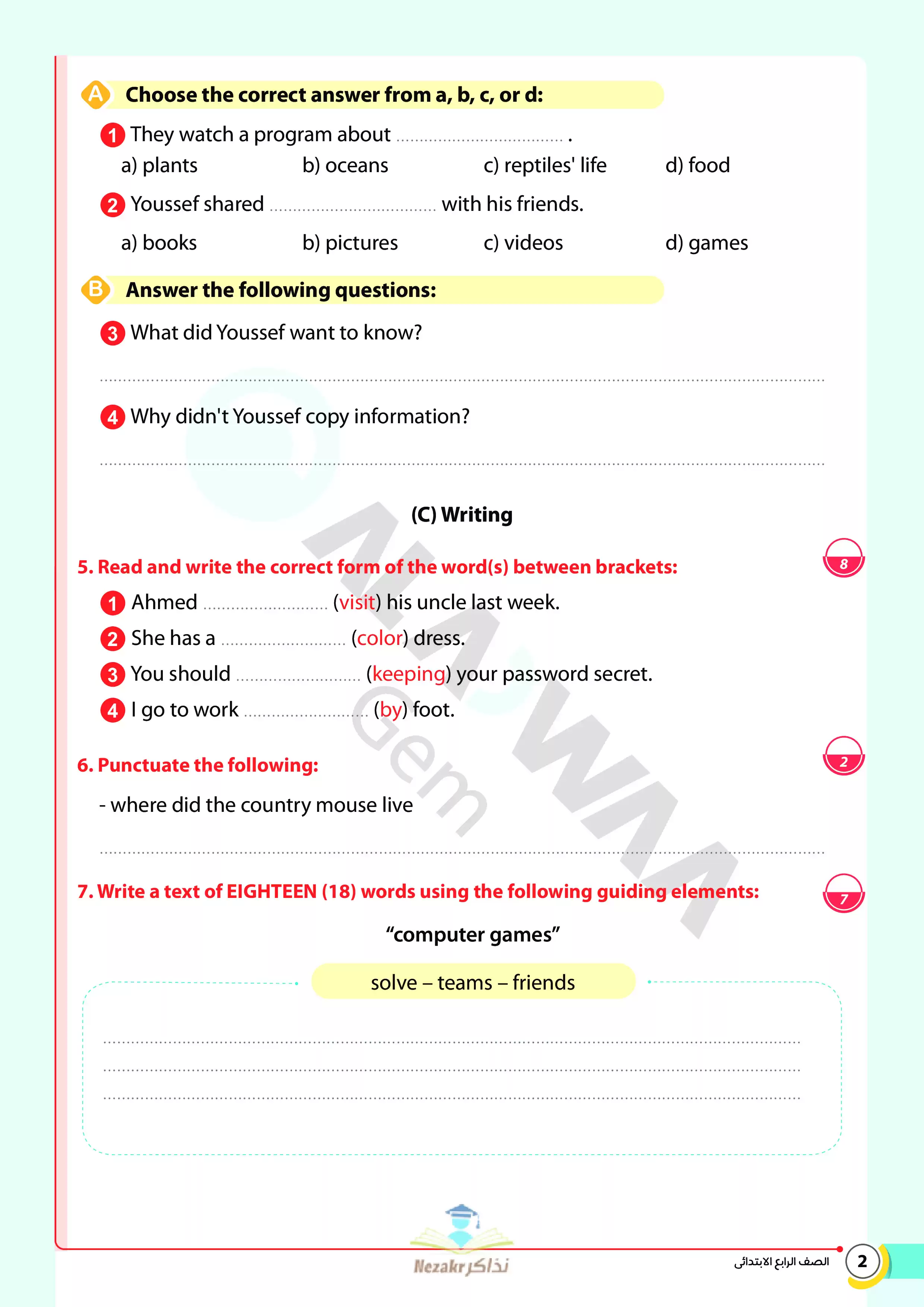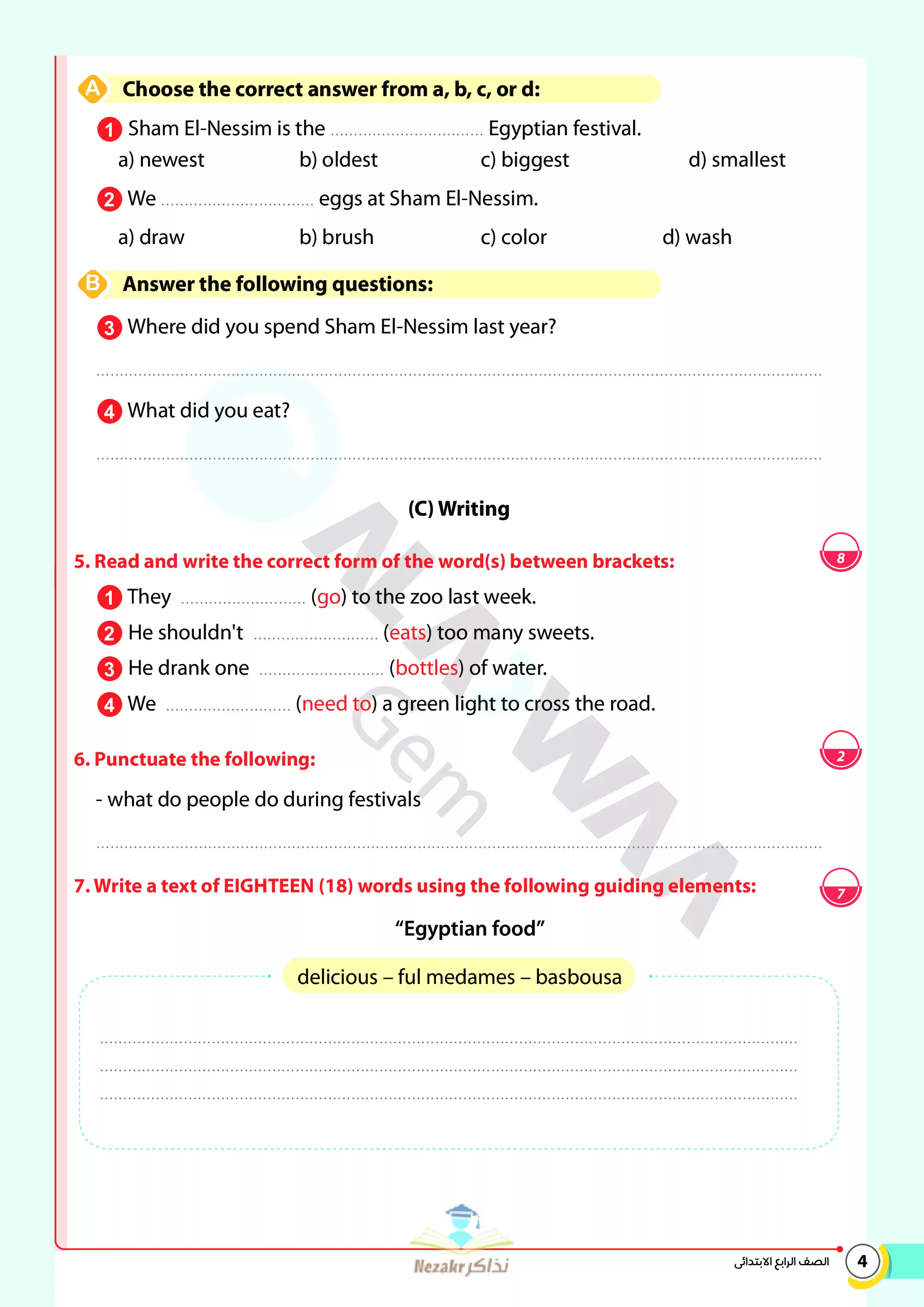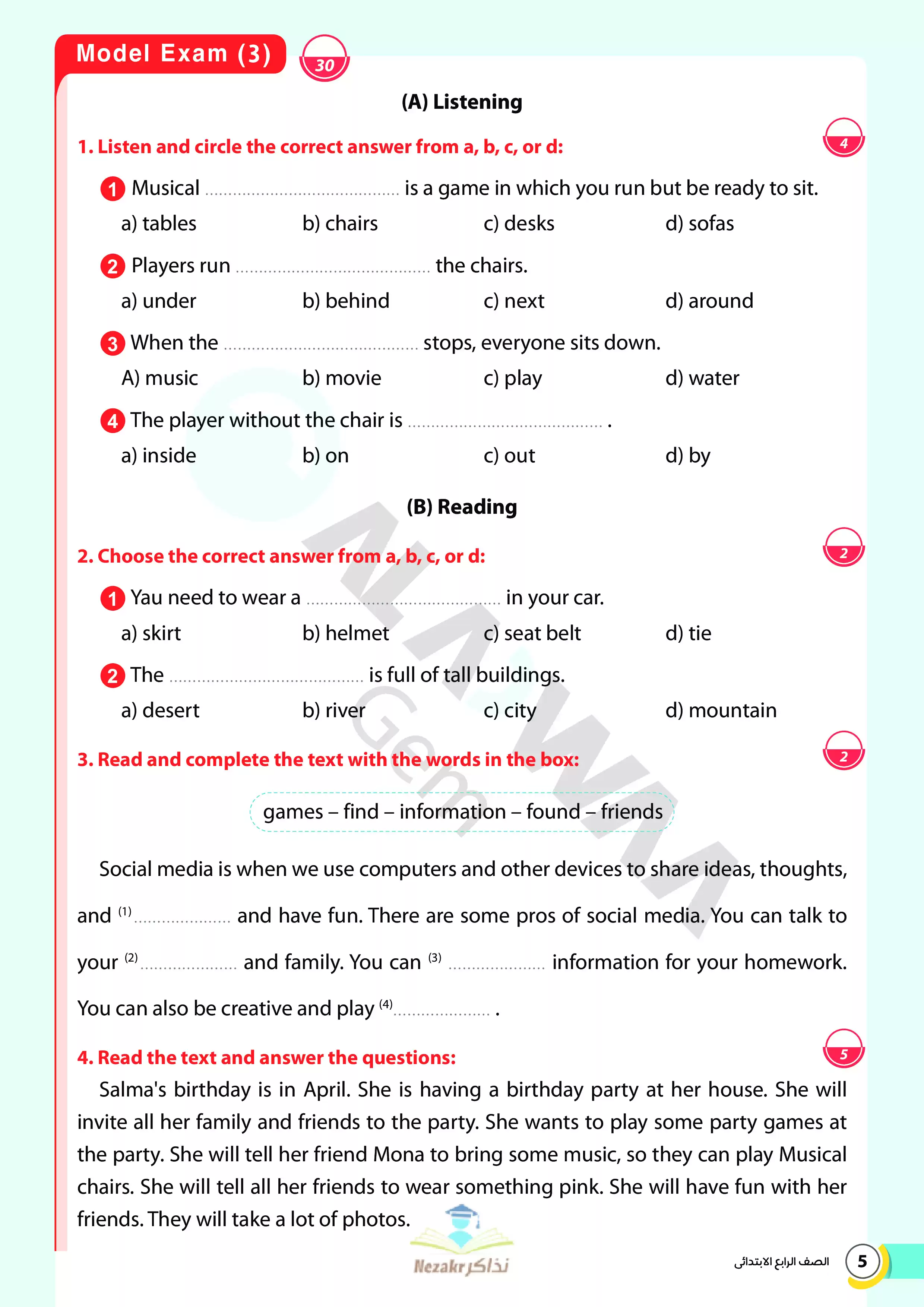 | بيانات الملف: (نماذج اختبارات ومراجعة GEM النهائية في الإنجليزي Connect 4 للصف الرابع الابتدائي الترم الثاني 2025 - Nezakr) | |