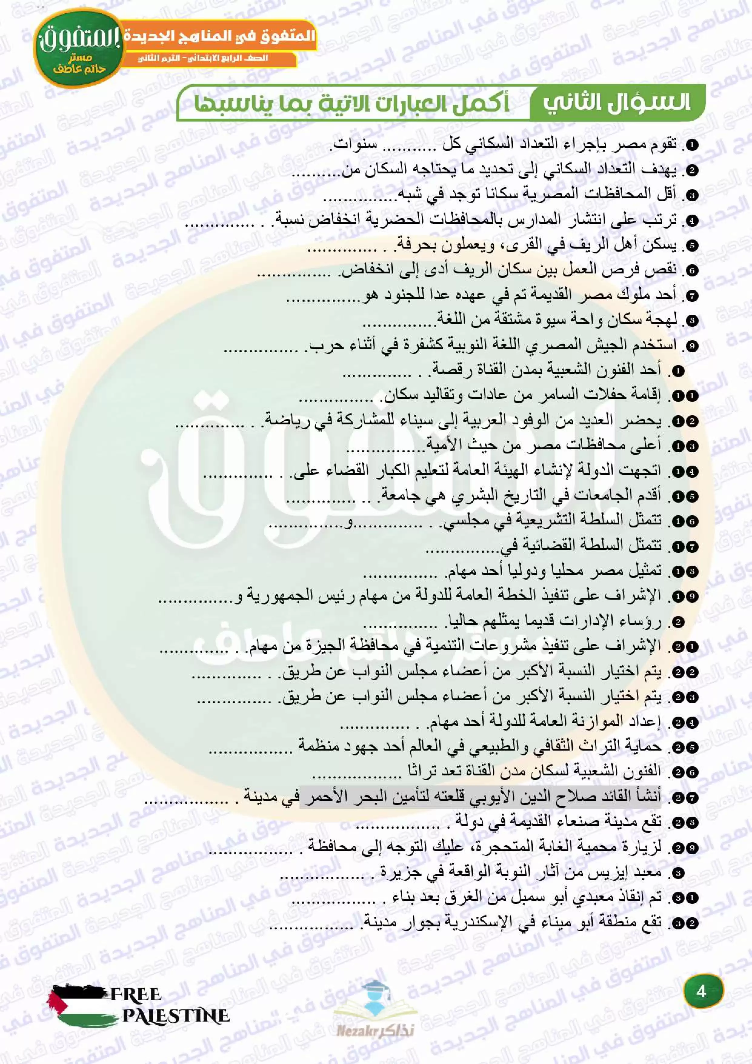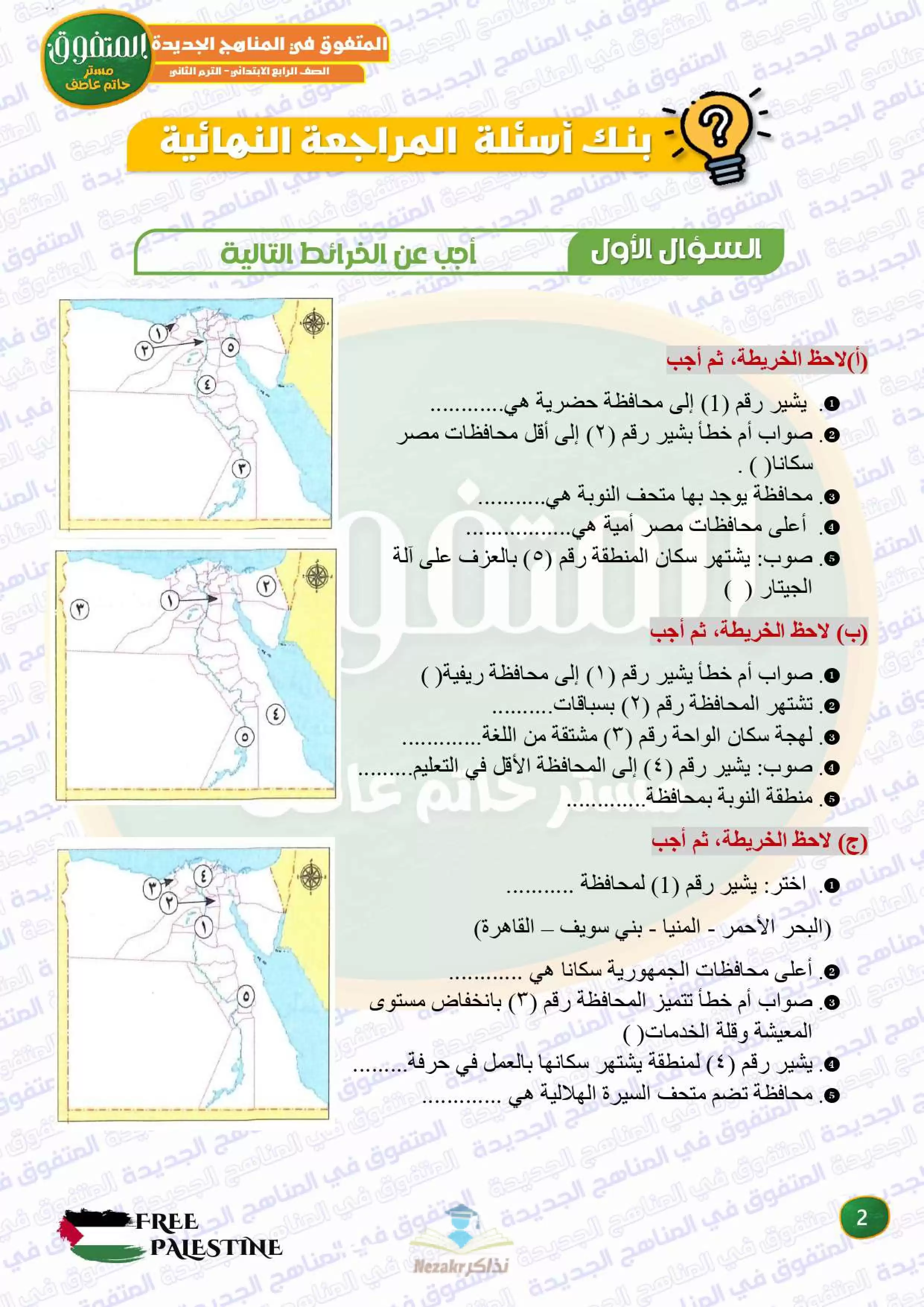 ملف المراجعة النهائية وبنك الأسئلة دراسات اجتماعية للصف الرابع الابتدائي ترم 2 من المتفوق من إعداد: أ. حاتم عاطف