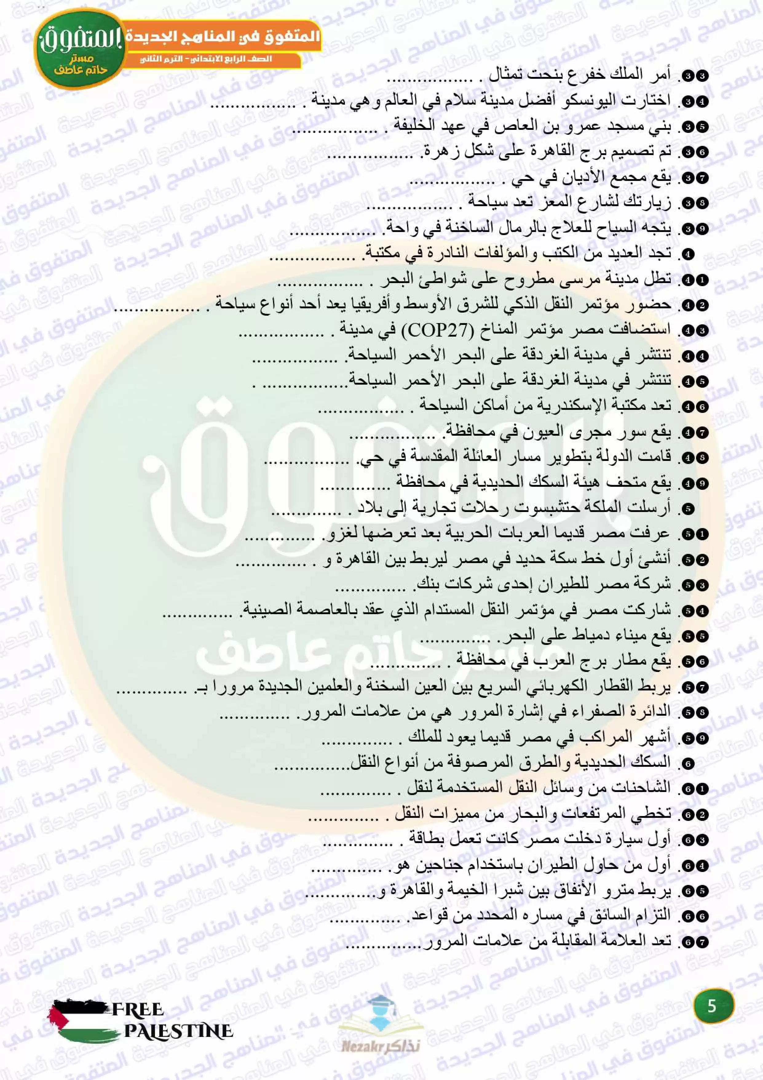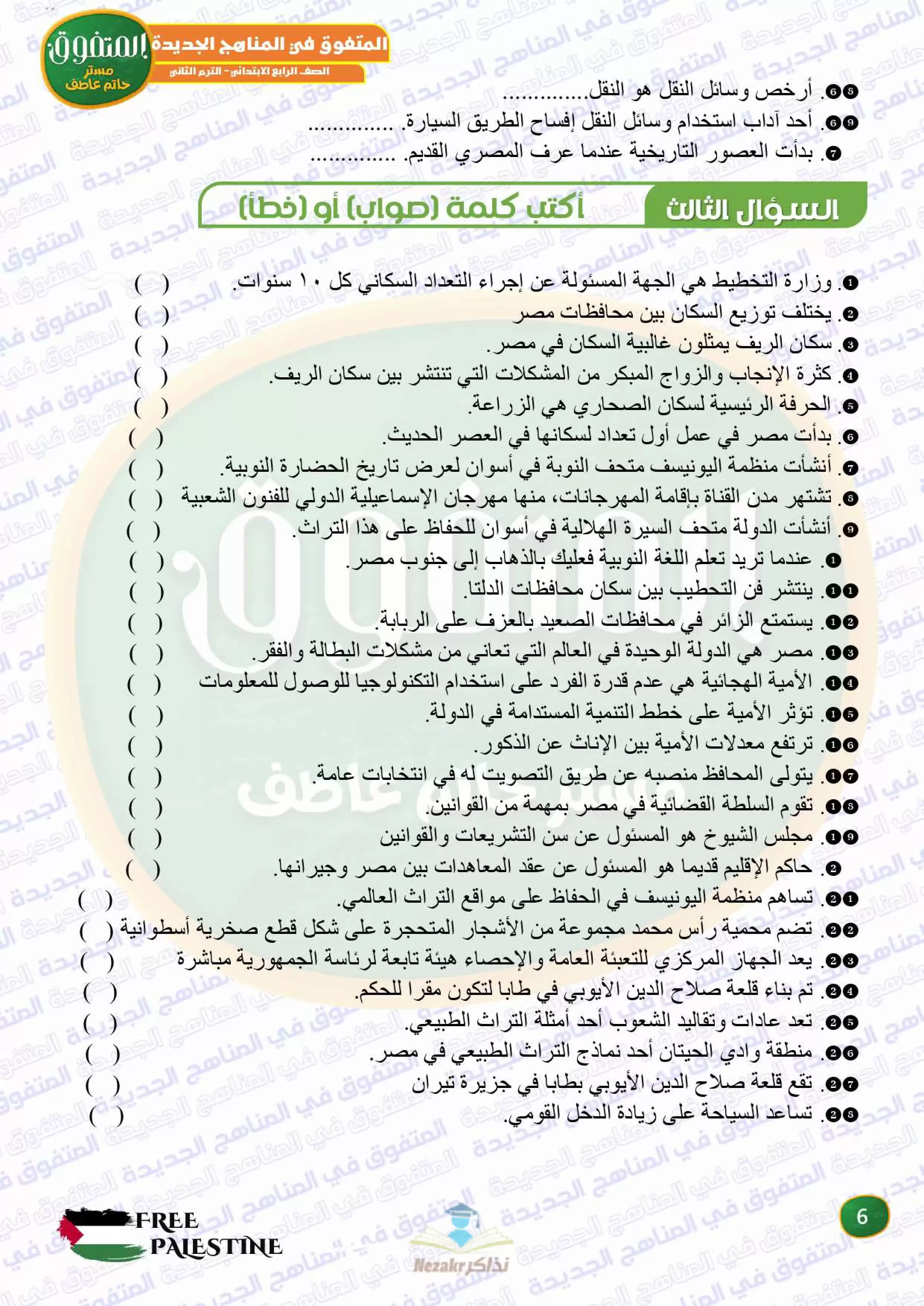 | بيانات الملف: (مراجعة المتفوق النهائية في الدراسات الاجتماعية للصف الرابع الابتدائي الترم الثاني - Nezakr) | |