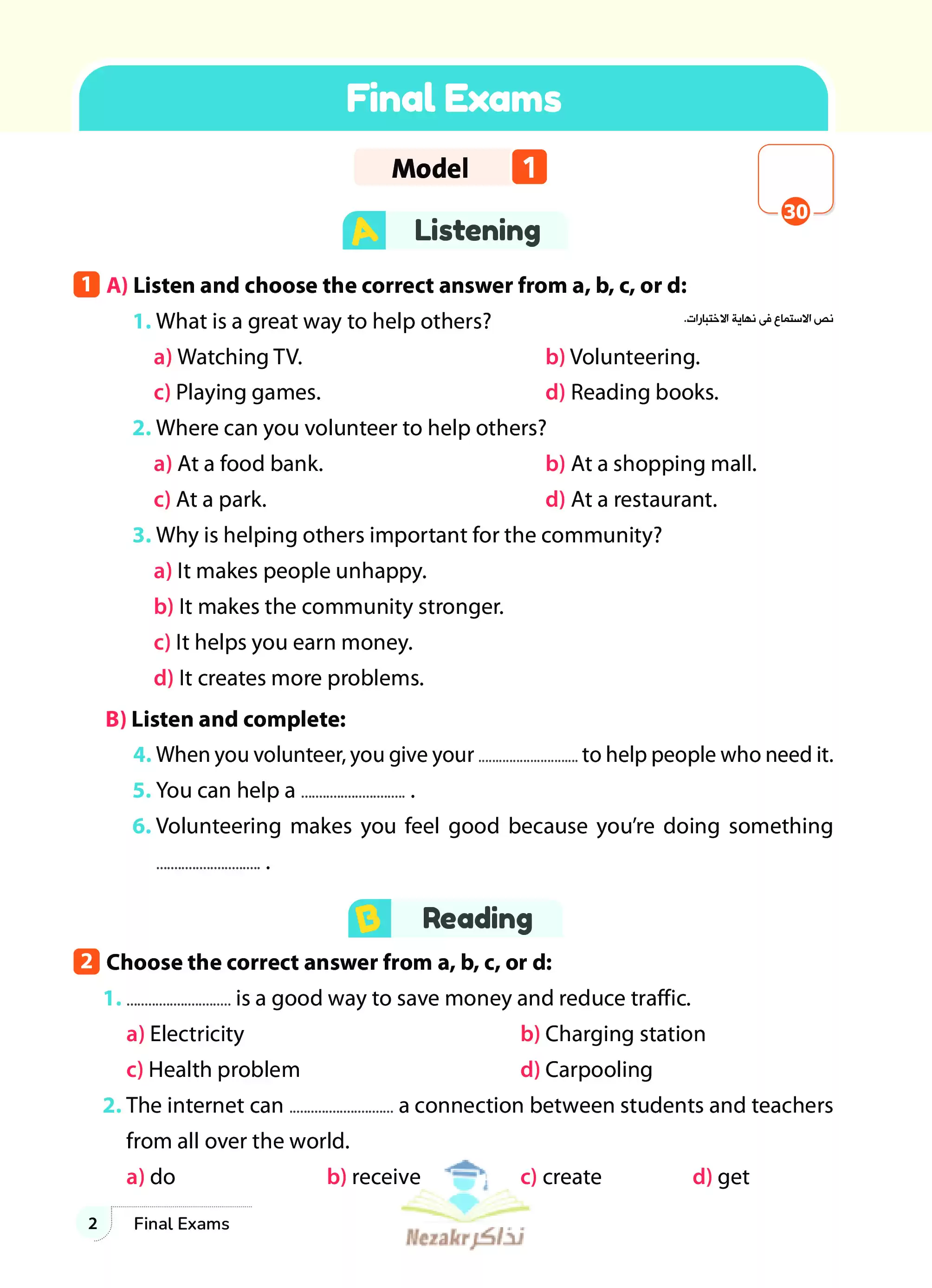 | بيانات الملف: (نماذج اختبارات ومراجعة GEM النهائية في الإنجليزي للصف الأول الإعدادي الترم الثاني 2025 - Nezakr) | |