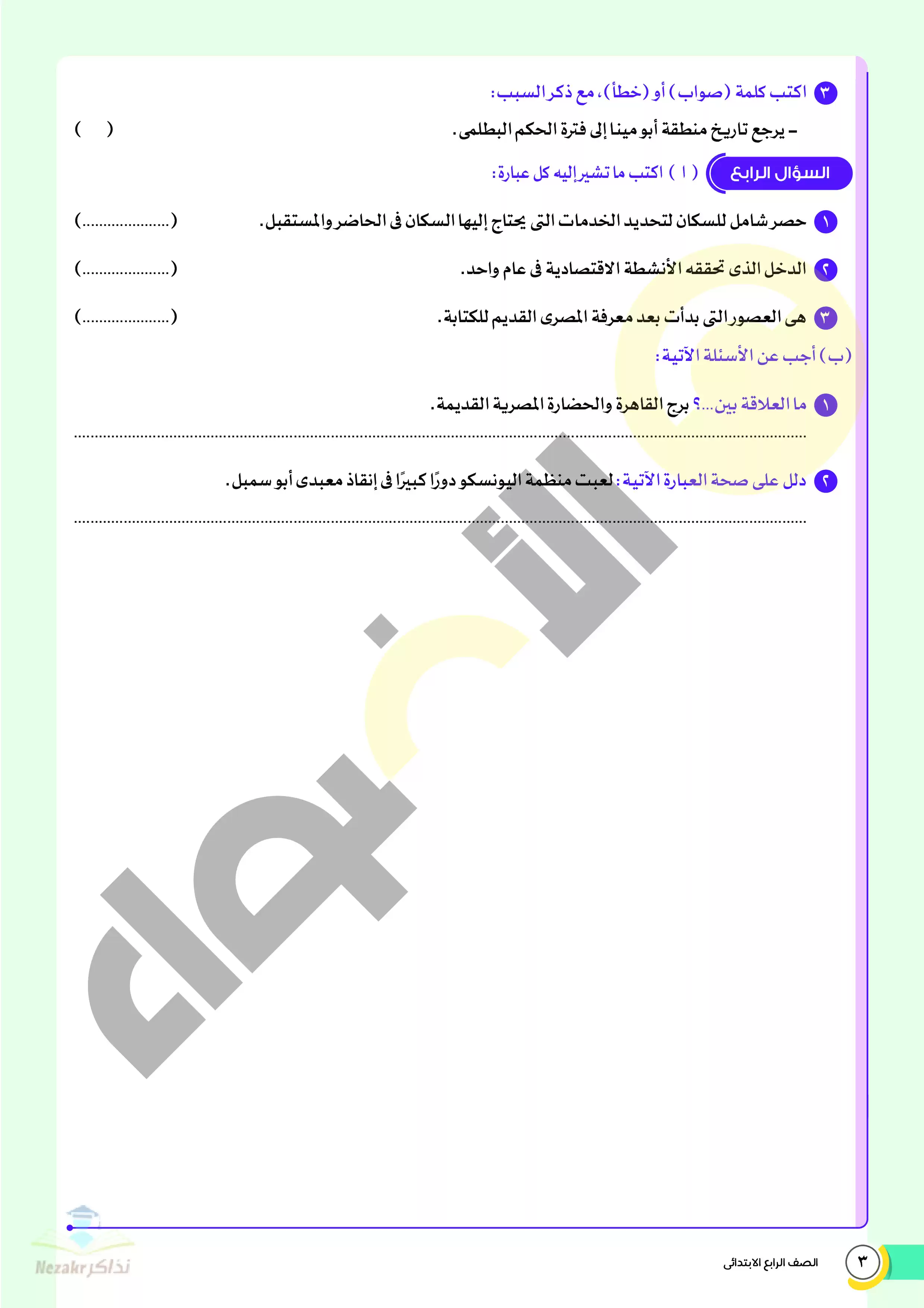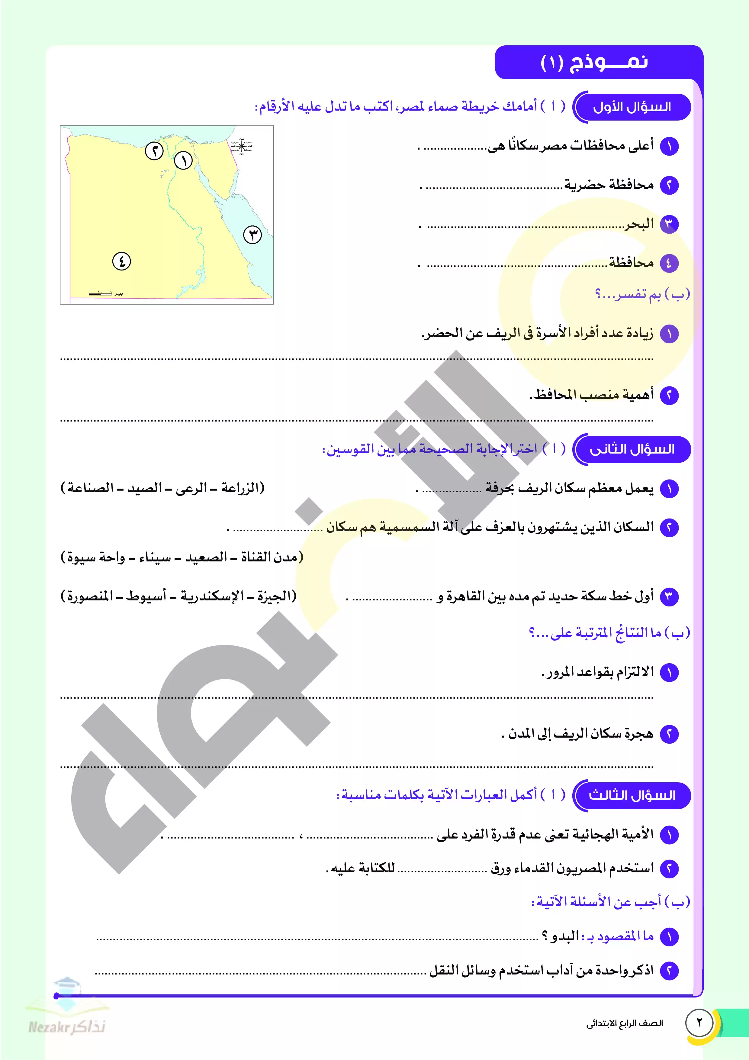 صفحة 3 من 22 صفحة من ملف: نماذج اختبارات ومراجعة الأضواء النهائية في الدراسات للصف الرابع الإبتدائي الترم الثاني 2025 - Nezakr