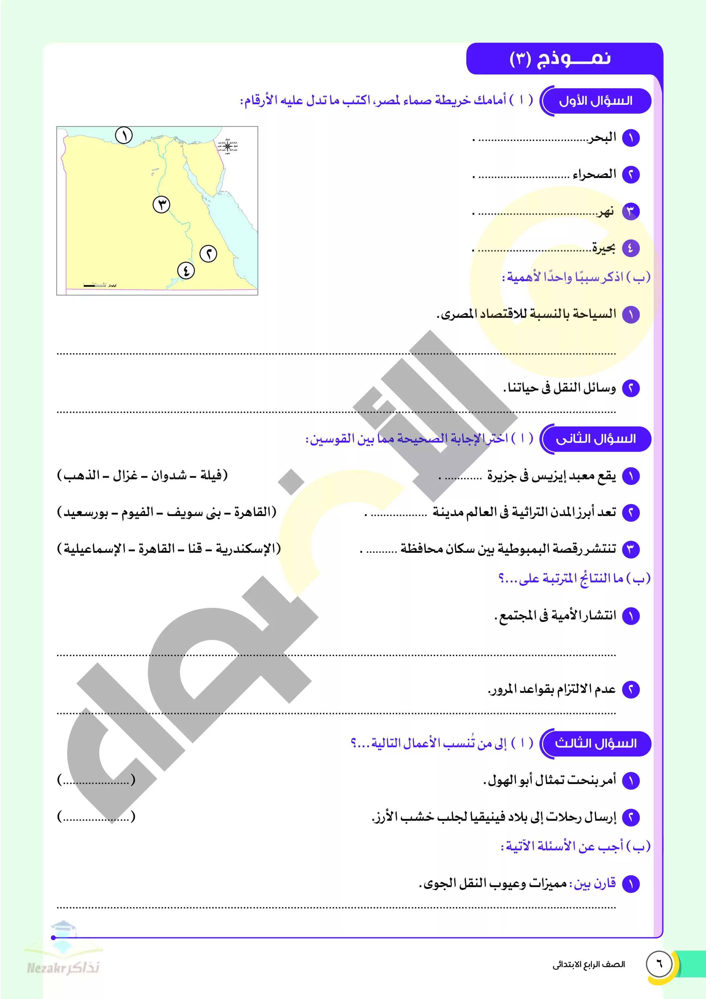 صفحة 6 من 22 صفحة من ملف: نماذج اختبارات ومراجعة الأضواء النهائية في الدراسات للصف الرابع الإبتدائي الترم الثاني 2025 - Nezakr