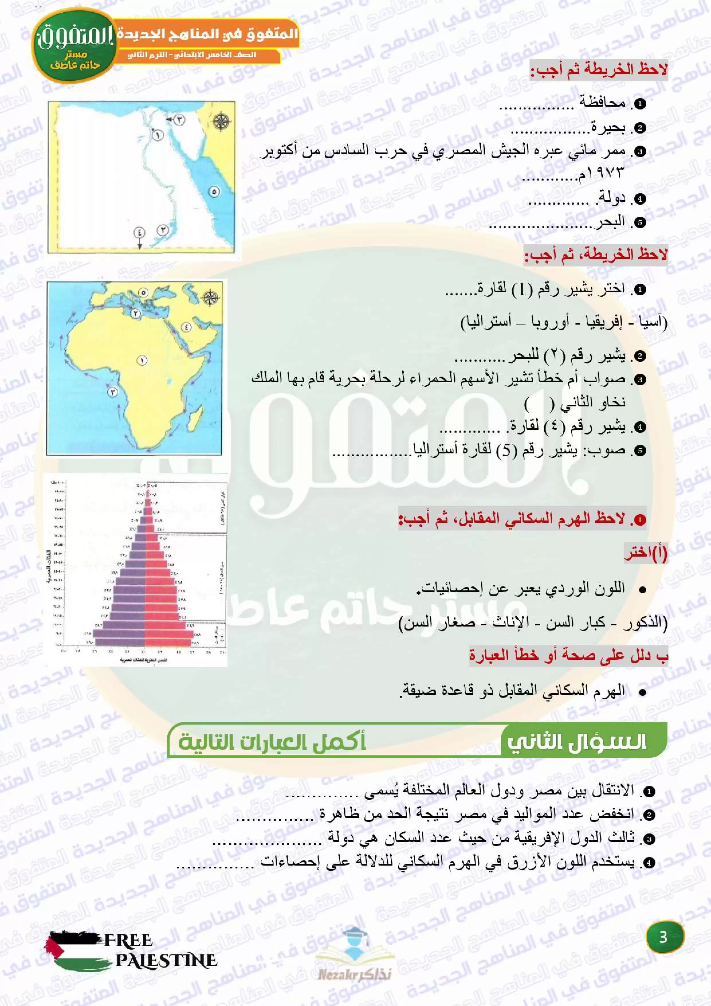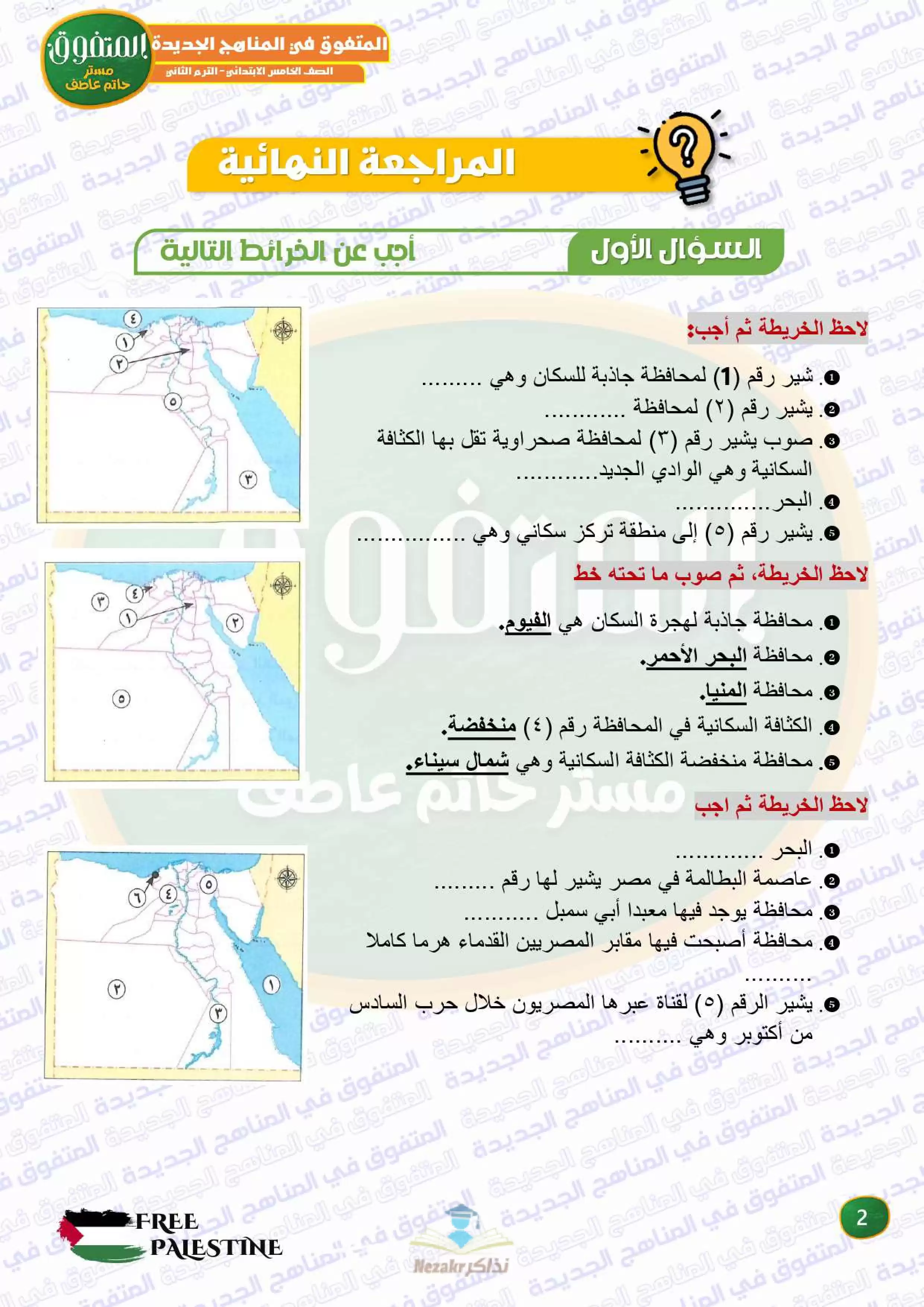صفحة 3 من 42 صفحة من ملف: مراجعة المتفوق النهائية في الدراسات الاجتماعية للصف الخامس الابتدائي الترم الثاني - Nezakr
