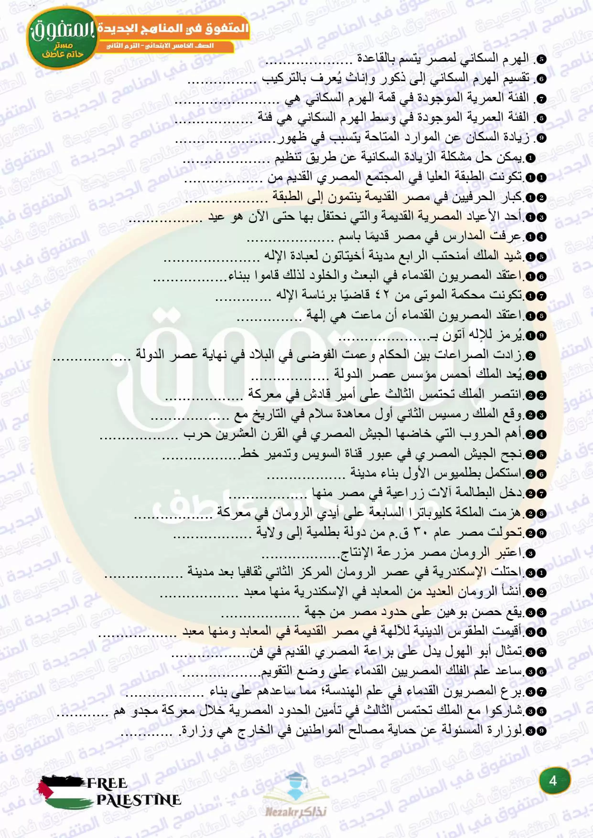 صفحة 4 من 42 صفحة من ملف: مراجعة المتفوق النهائية في الدراسات الاجتماعية للصف الخامس الابتدائي الترم الثاني - Nezakr