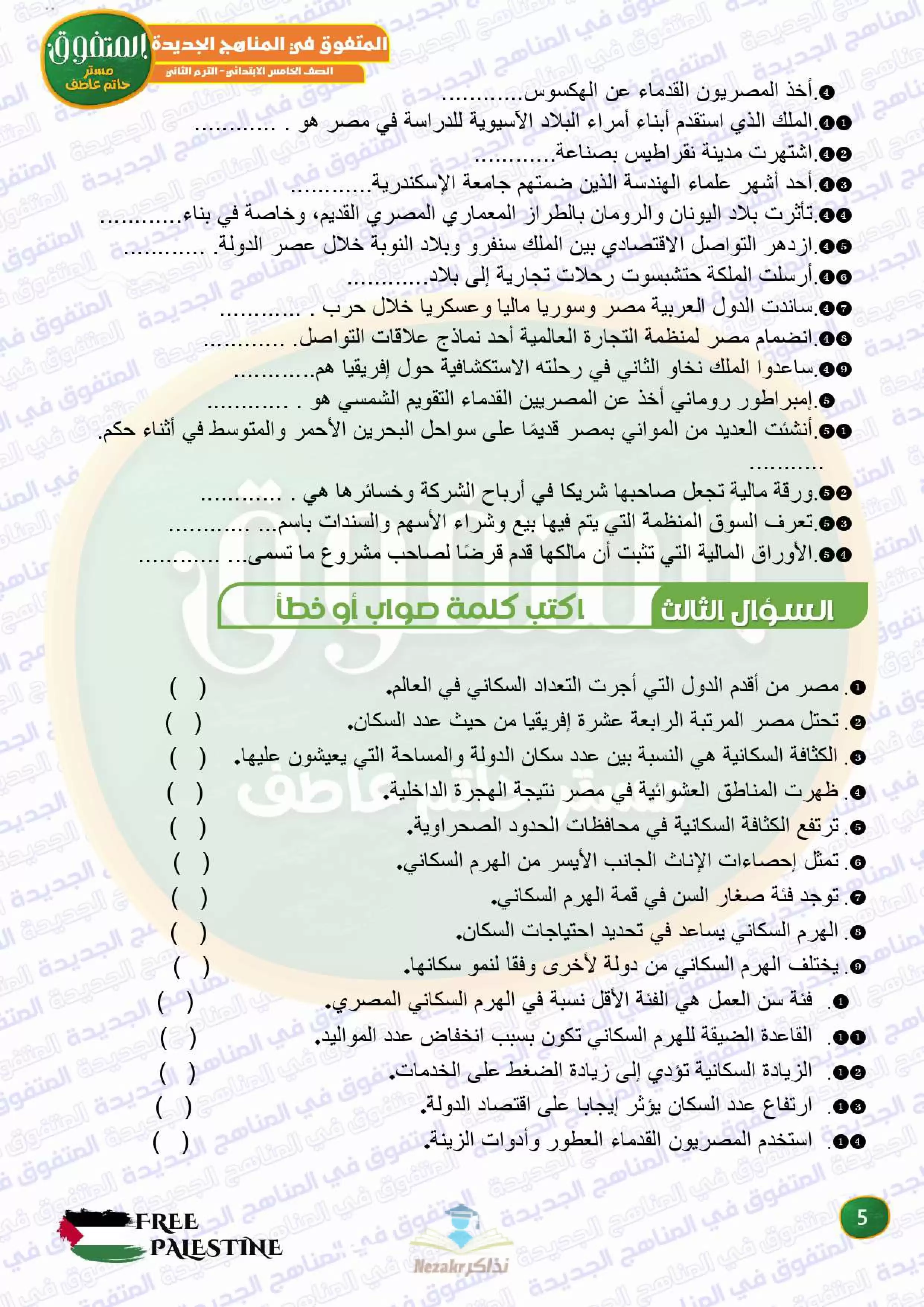 صفحة 5 من 42 صفحة من ملف: مراجعة المتفوق النهائية في الدراسات الاجتماعية للصف الخامس الابتدائي الترم الثاني - Nezakr
