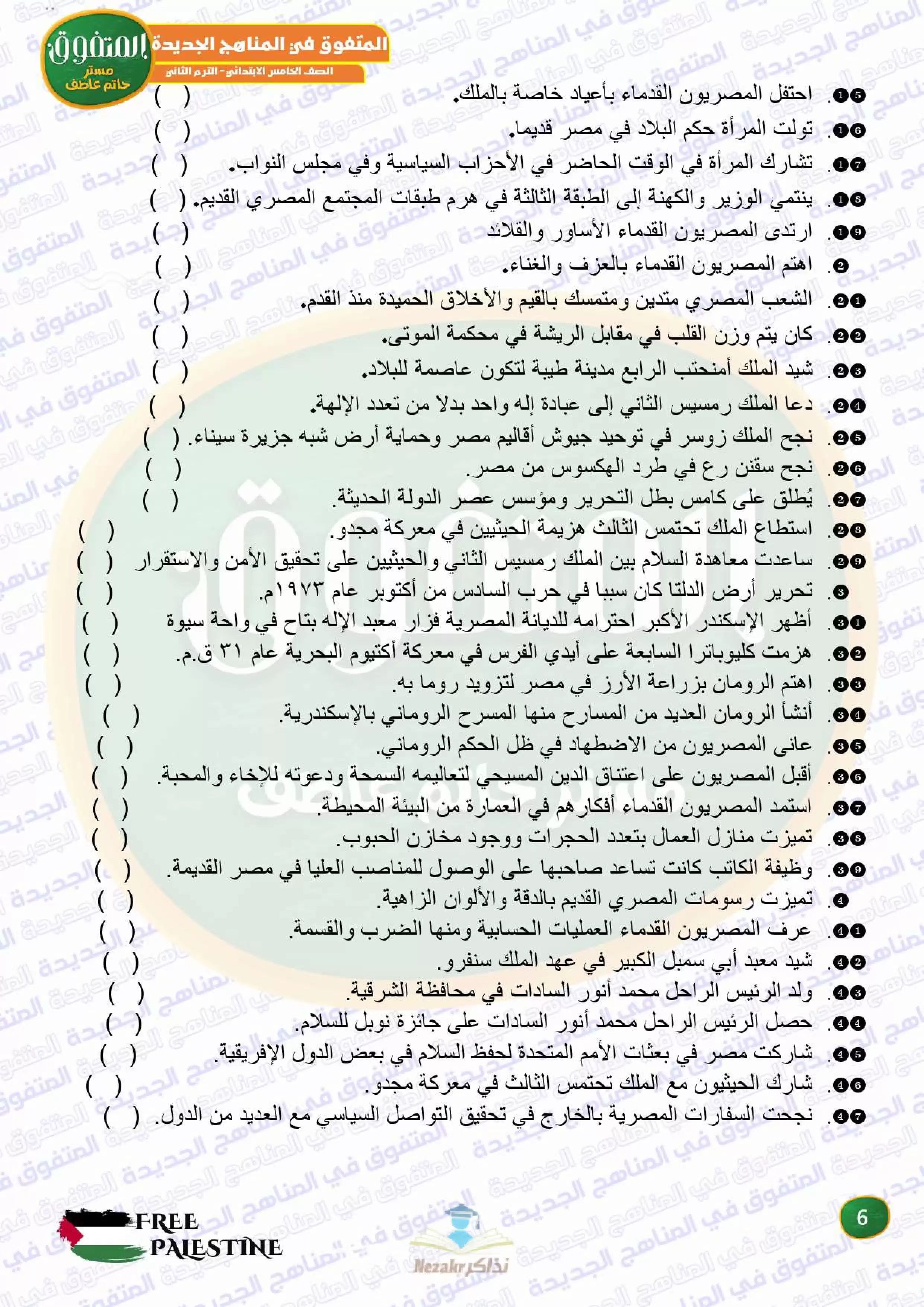 صفحة 6 من 42 صفحة من ملف: مراجعة المتفوق النهائية في الدراسات الاجتماعية للصف الخامس الابتدائي الترم الثاني - Nezakr