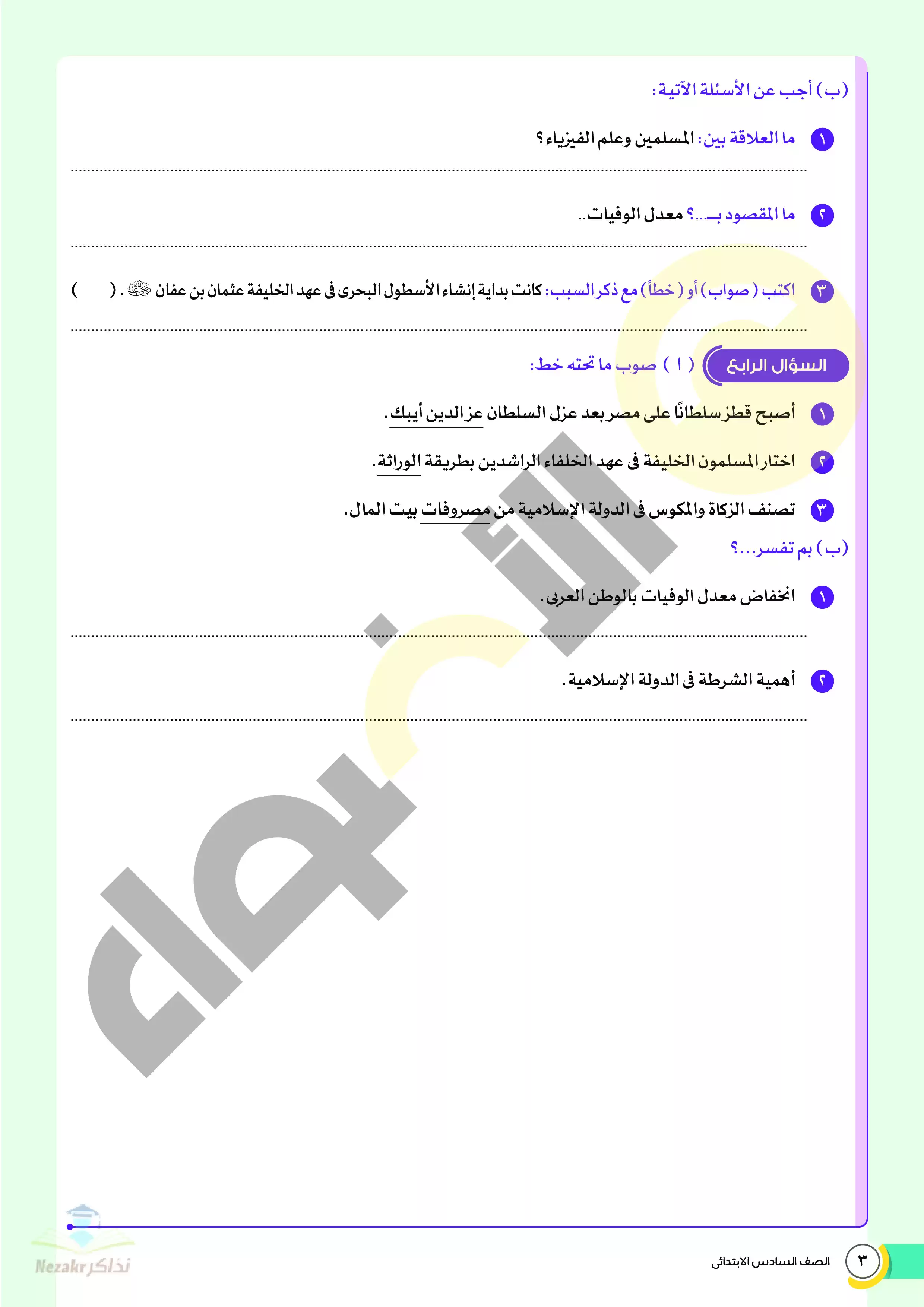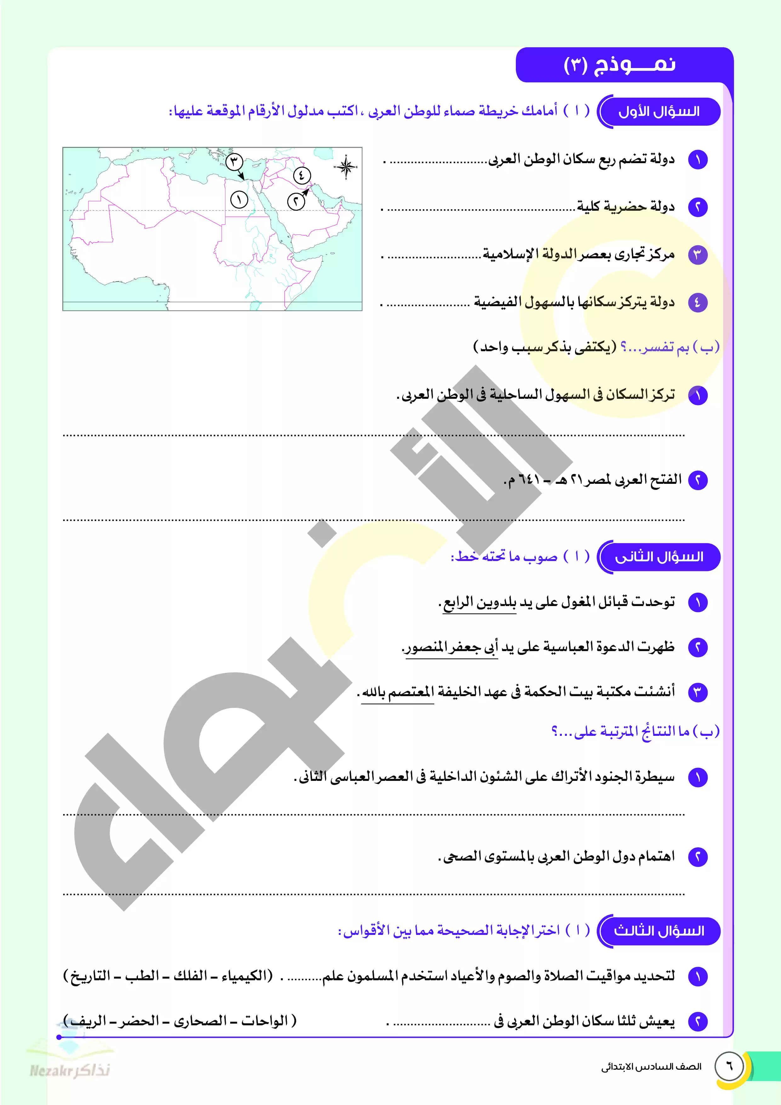 صفحة 3 من 22 صفحة من ملف: نماذج اختبارات ومراجعة الأضواء النهائية في الدراسات للصف السادس الإبتدائي الترم الثاني 2025 - Nezakr