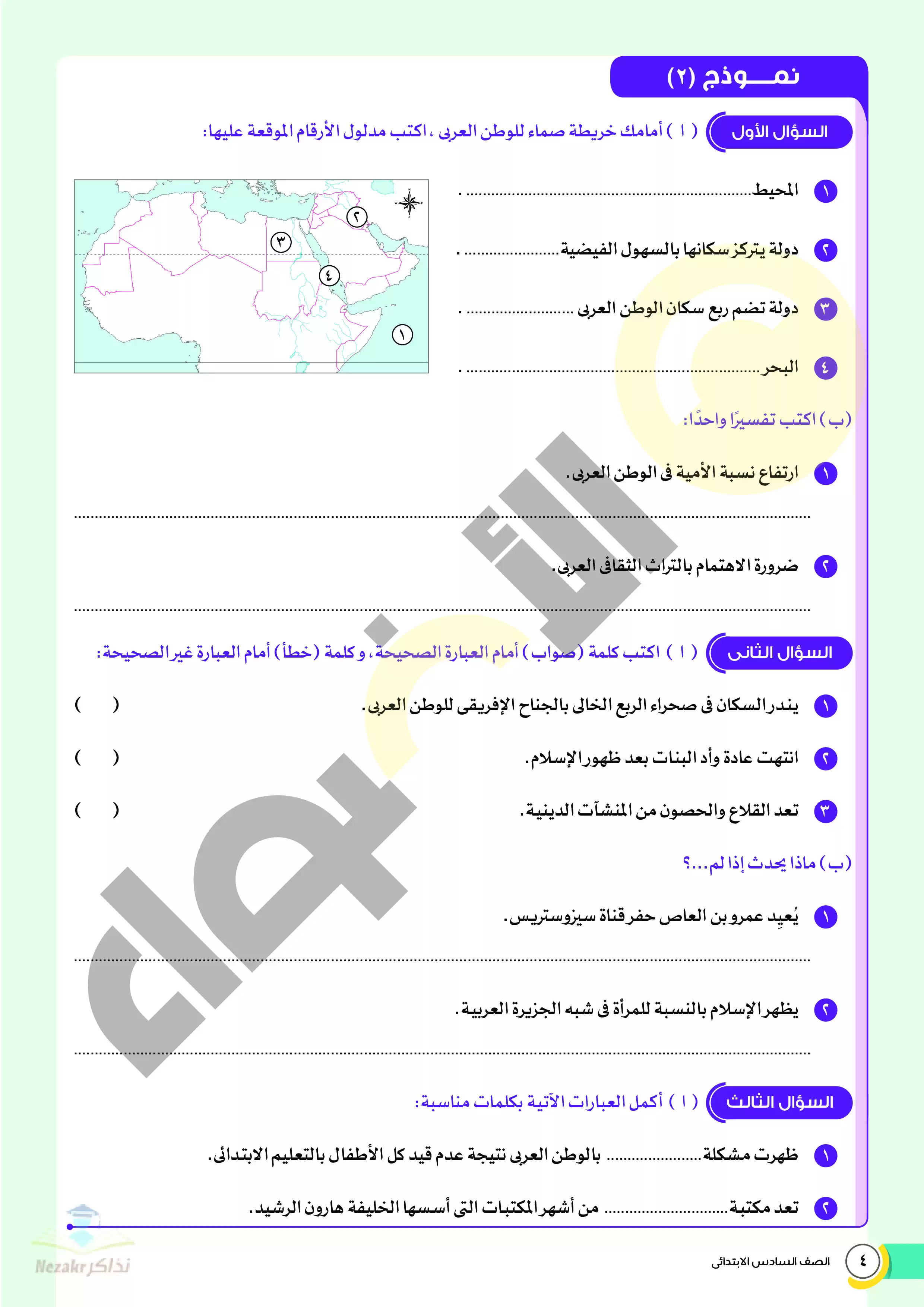 صفحة 4 من 22 صفحة من ملف: نماذج اختبارات ومراجعة الأضواء النهائية في الدراسات للصف السادس الإبتدائي الترم الثاني 2025 - Nezakr