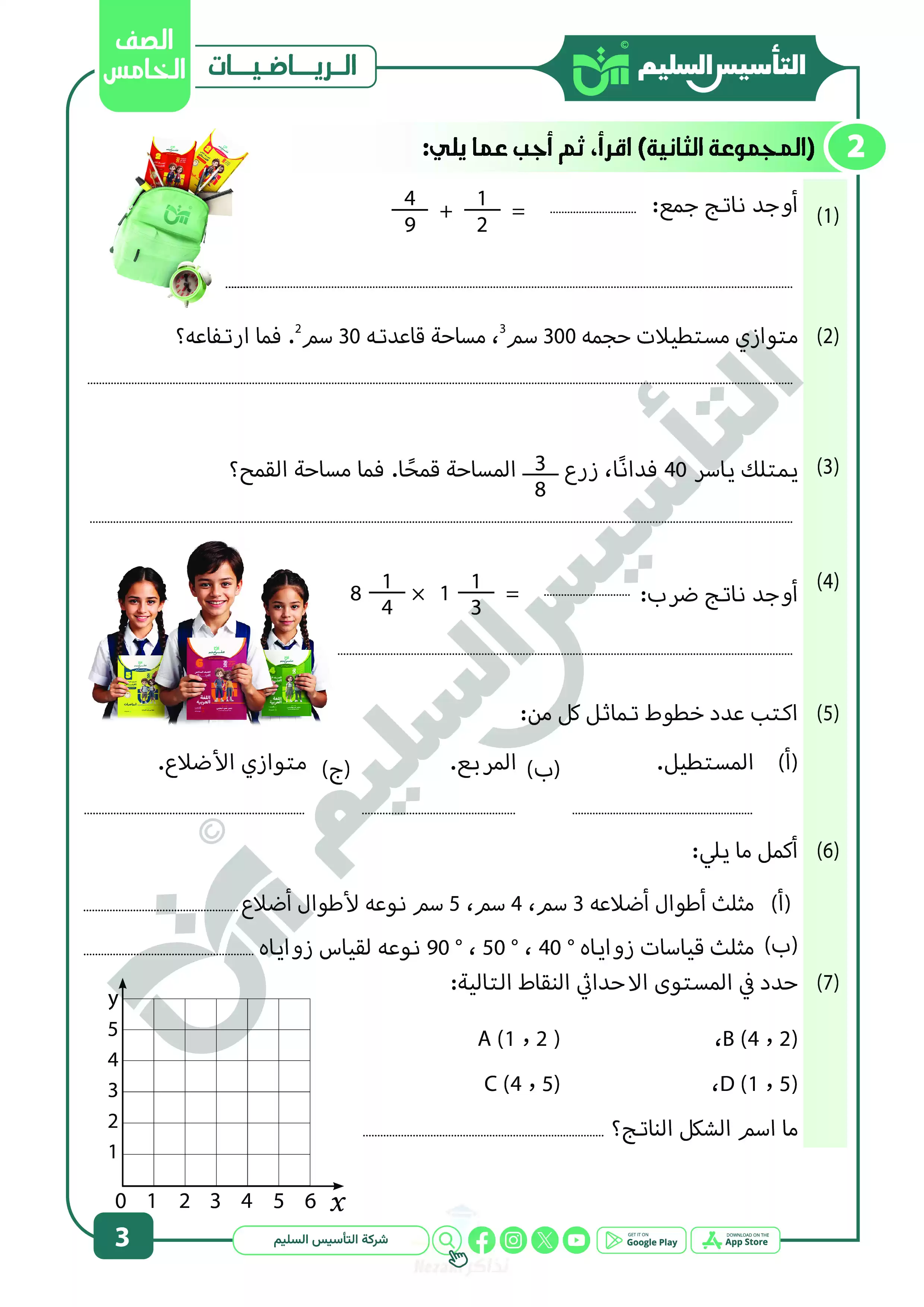 الصف الخامس الإبتدائي > الرياضيات > مراجعة التأسيس السليم في الرياضيات للصف الخامس الابتدائي الترم الثاني 2025 PDF بالاجابات