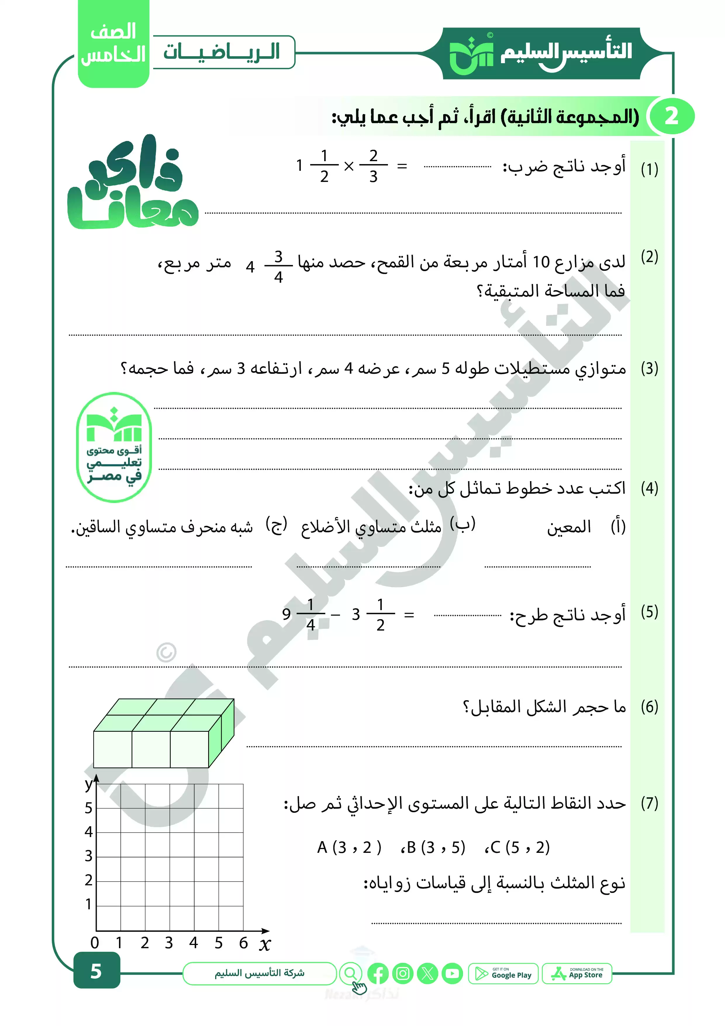 مراجعة التأسيس السليم في الرياضيات للصف الخامس الابتدائي الترم الثاني 2025 PDF بالاجابات