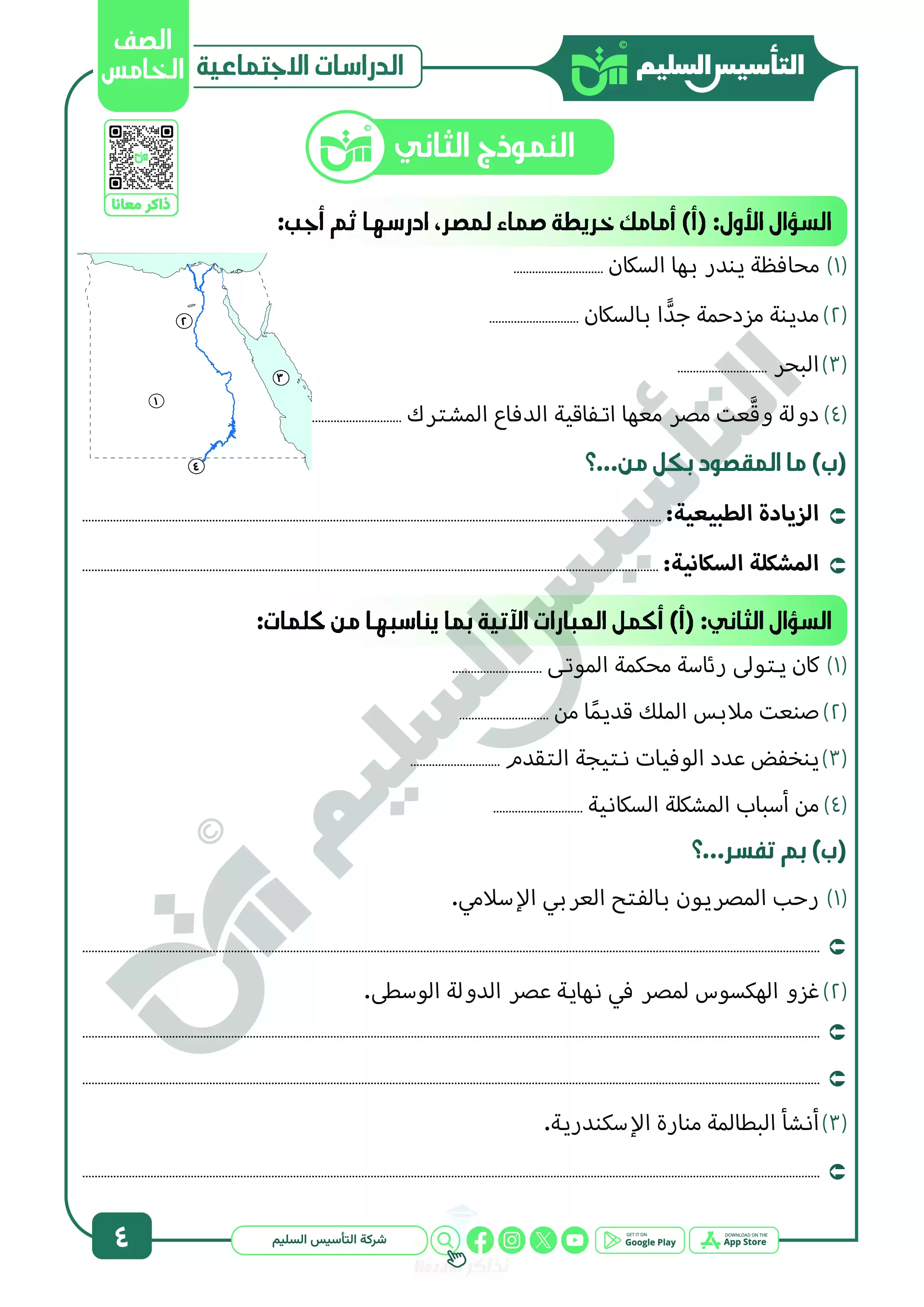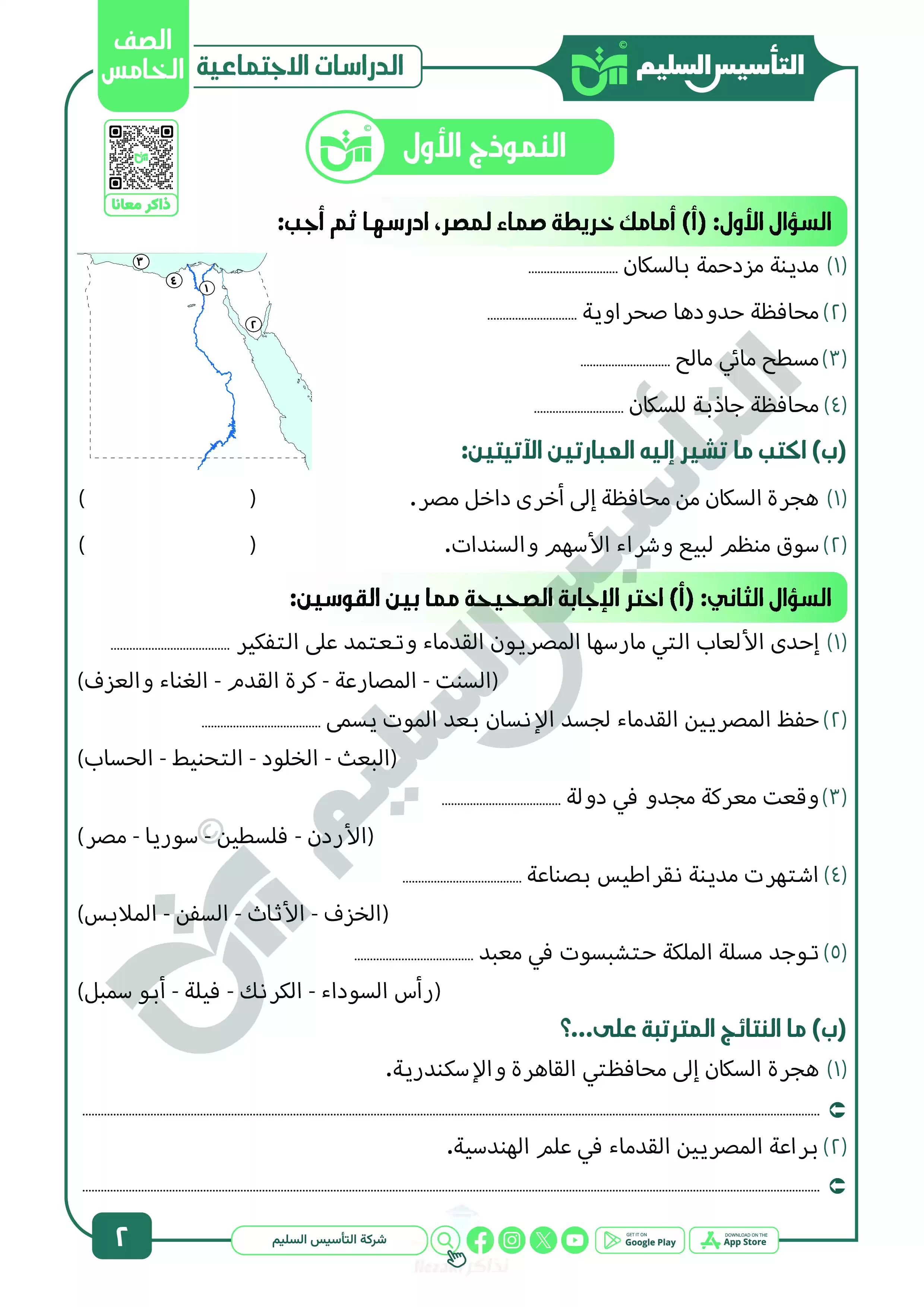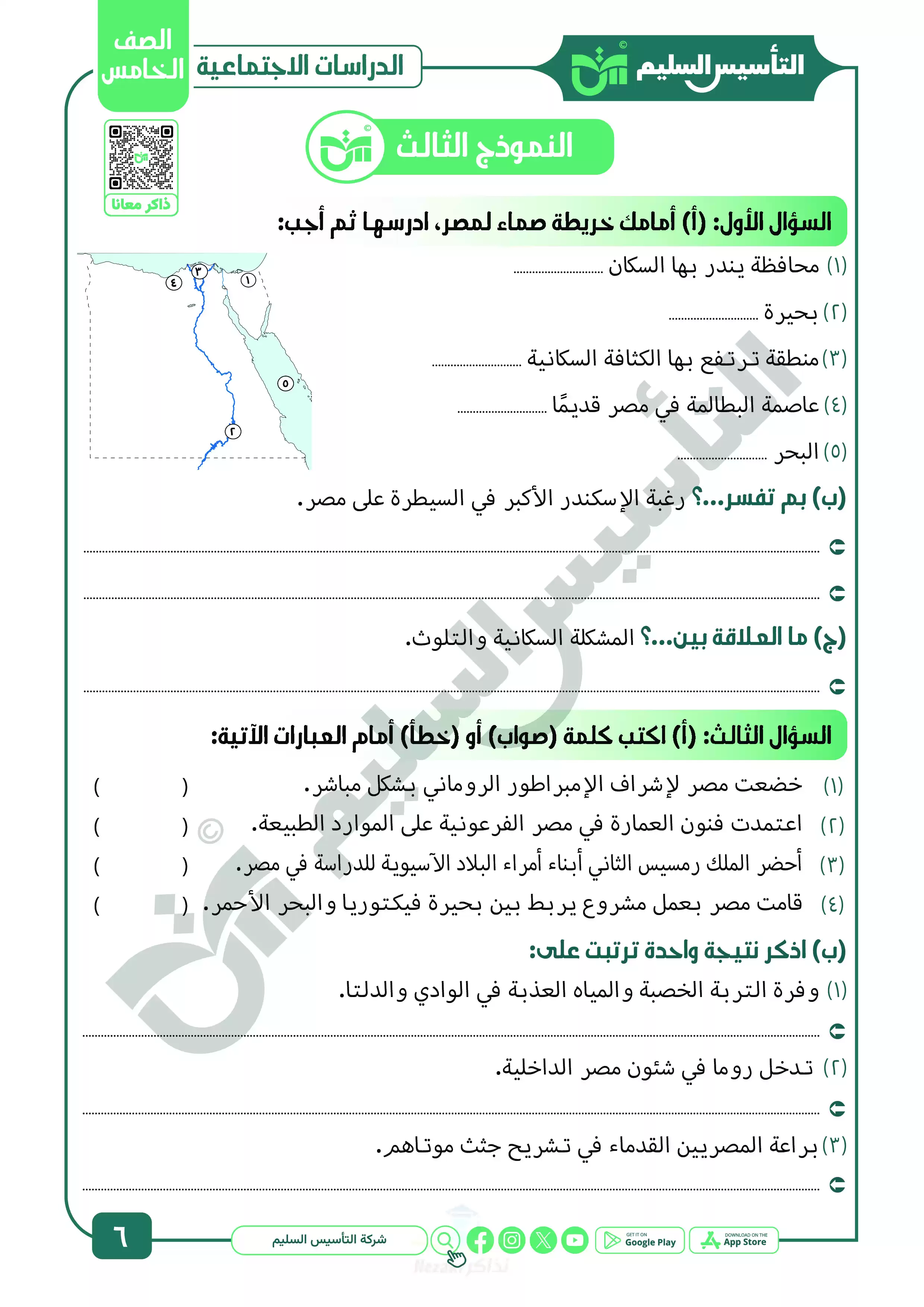 ننشر لكم ملف المراجعة النهائية ونماذج الاختبارات النهائية من كتاب التأسيس السليم في مادة الدراسات الاجتماعية للصف الخامس الابتدائي الفصل الدراسي الثاني 2025، ويحتوي الملف مراجعة وبنك أسئلة التأسيس السليم على منهج الفصل الدراسي الثاني خامسة ابتدائي كاملاً في الدراسات، وهو ملف مميز بجودة مرتفعة وبصيغة PDF وذلك لتتمكن من تشغيله على جهاز الموبايل أو من خلال جهاز الكمبيوتر أو عبر اللابتوب أو التابلت لضمان سهولة الوصول الى الكتاب والمذاكرة عليه.