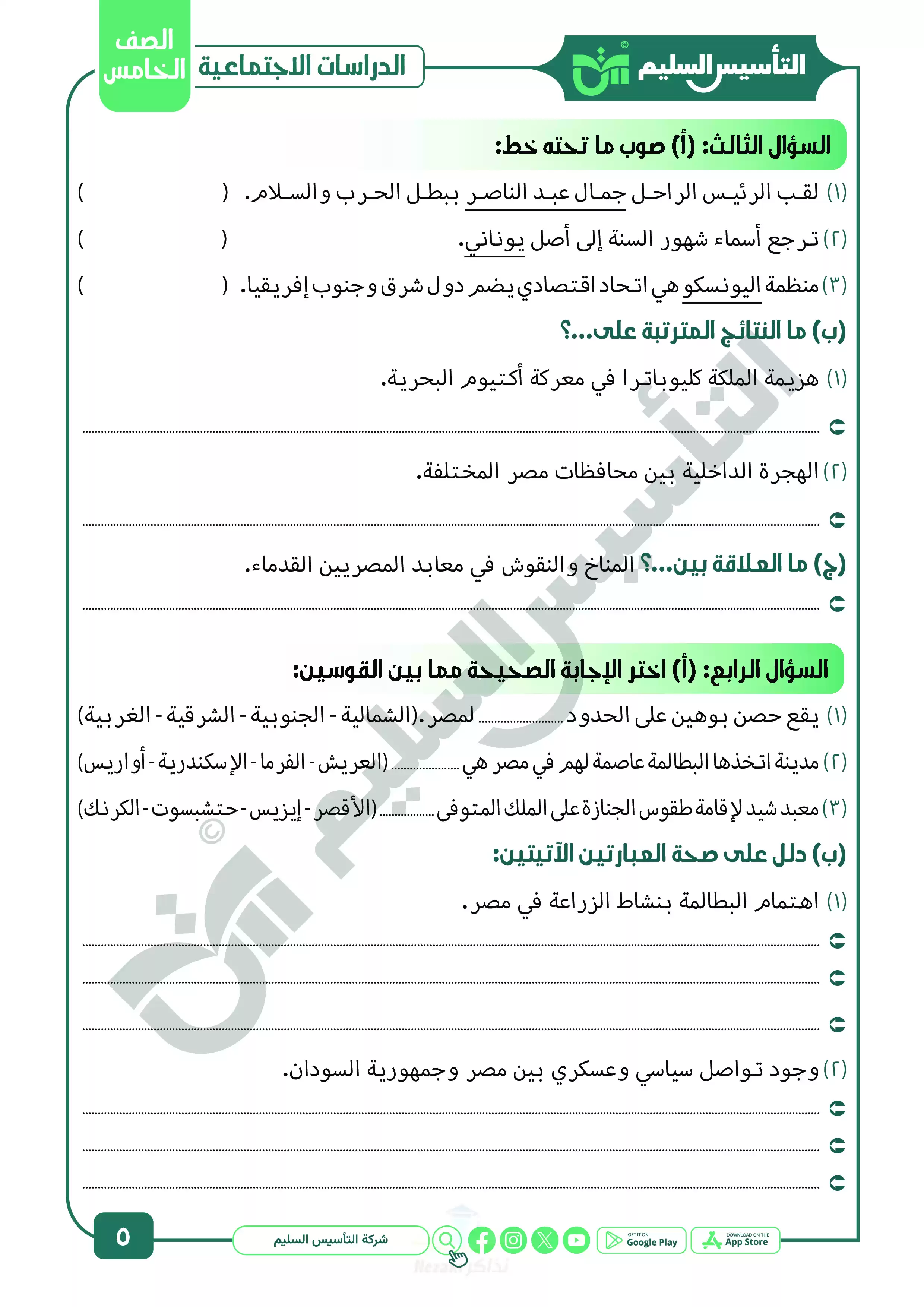 نقدم لكم المزيد من المحتوى من إعداد التأسيس السليم ومقدم إلى الصف الخامس الإبتدائي للإطلاع عليه أو تحميله.