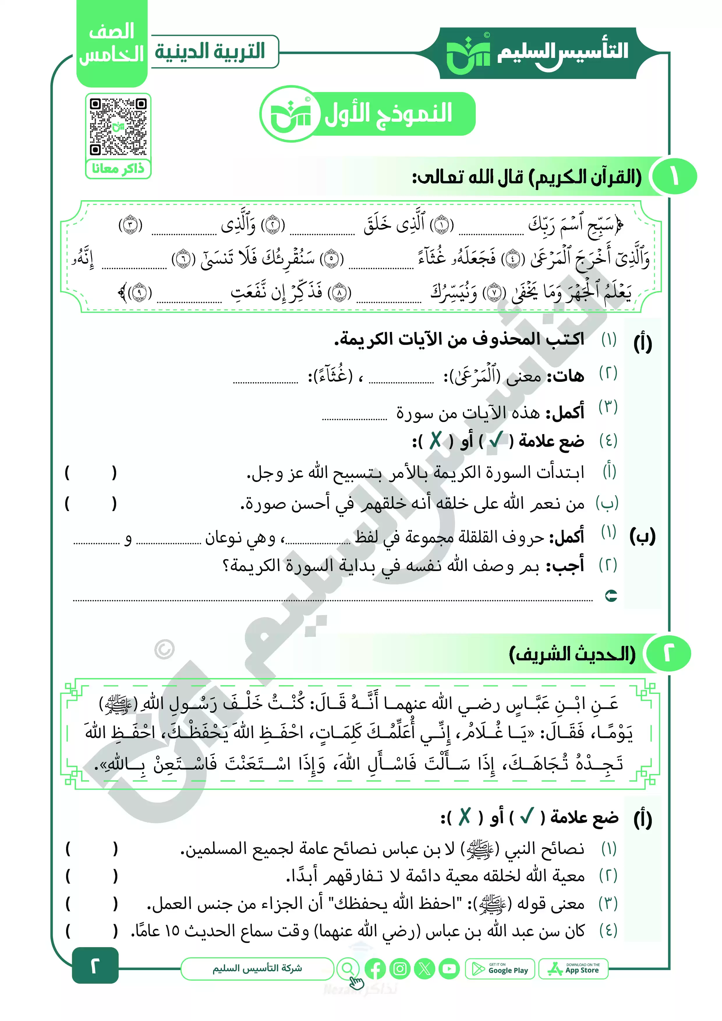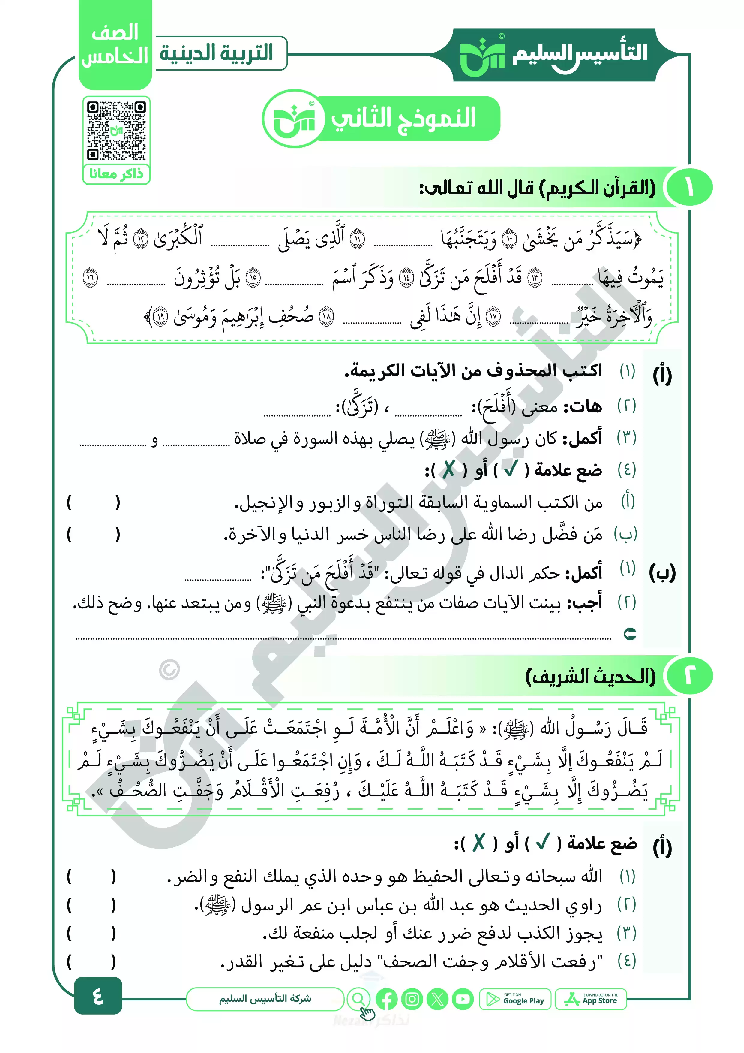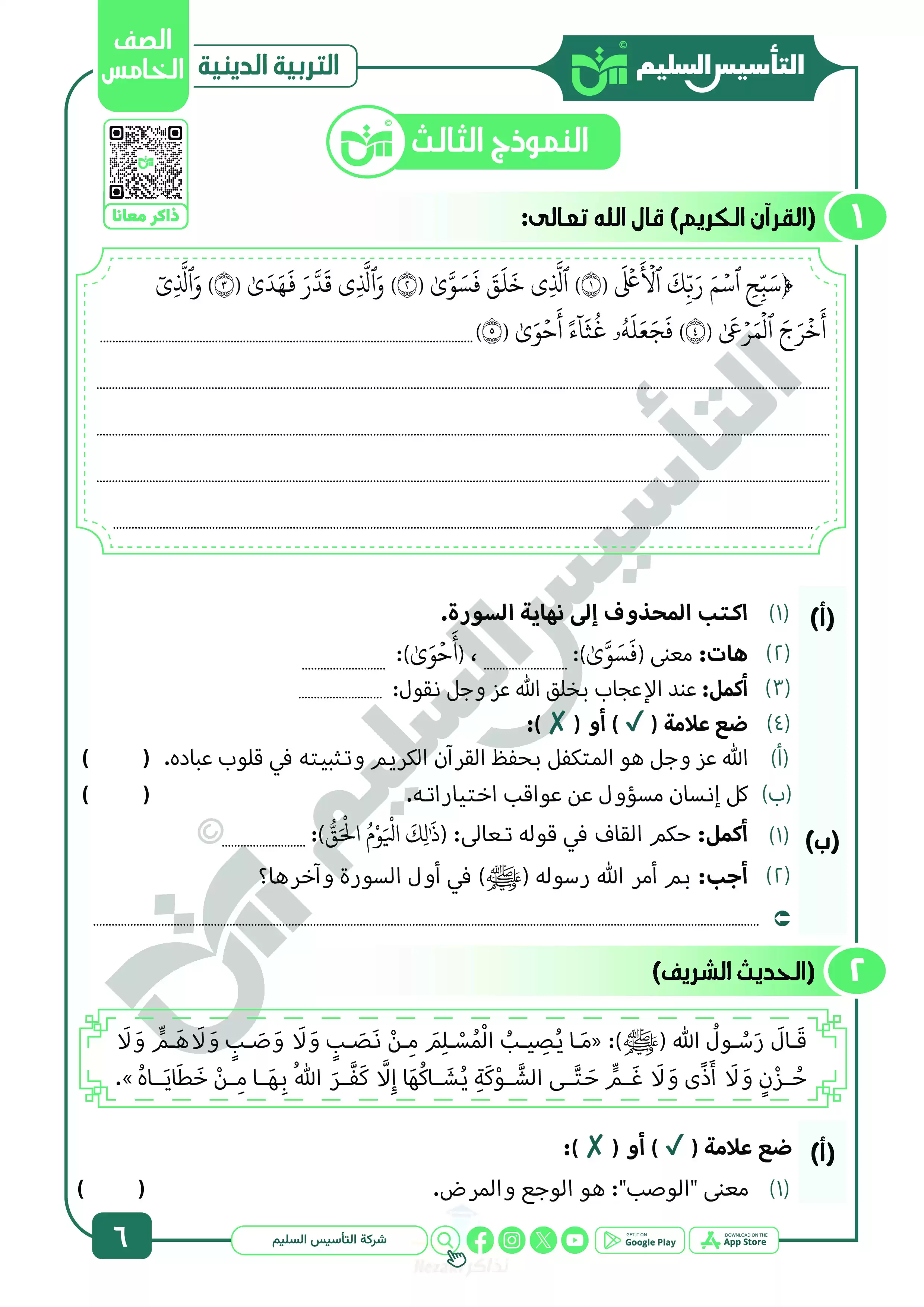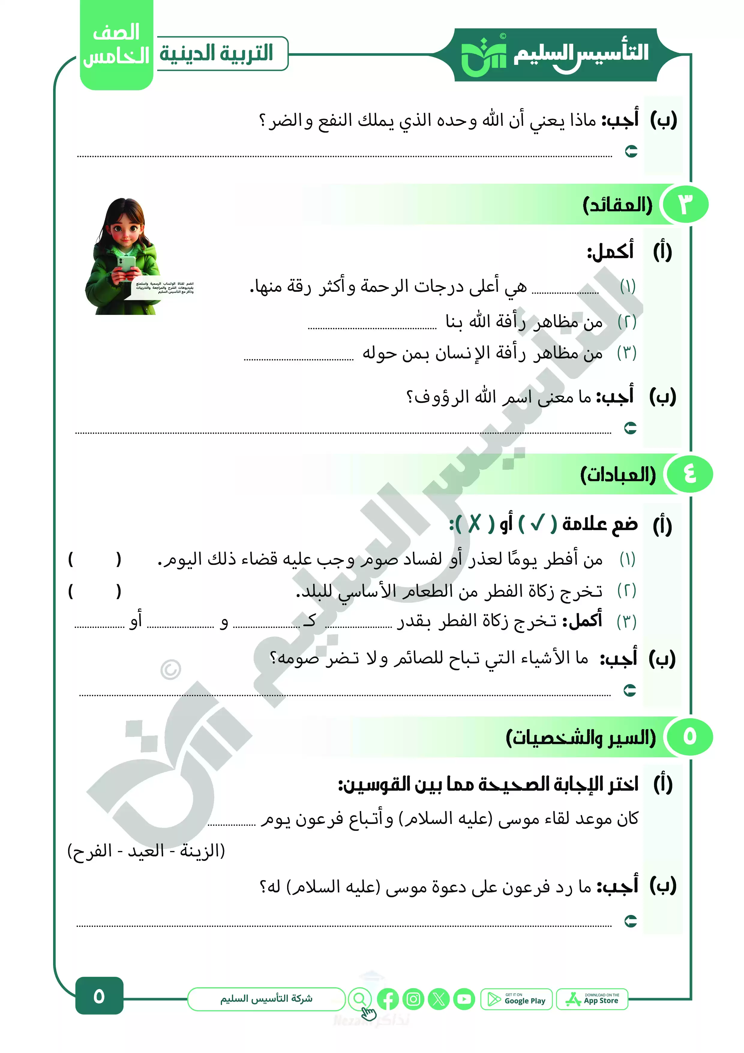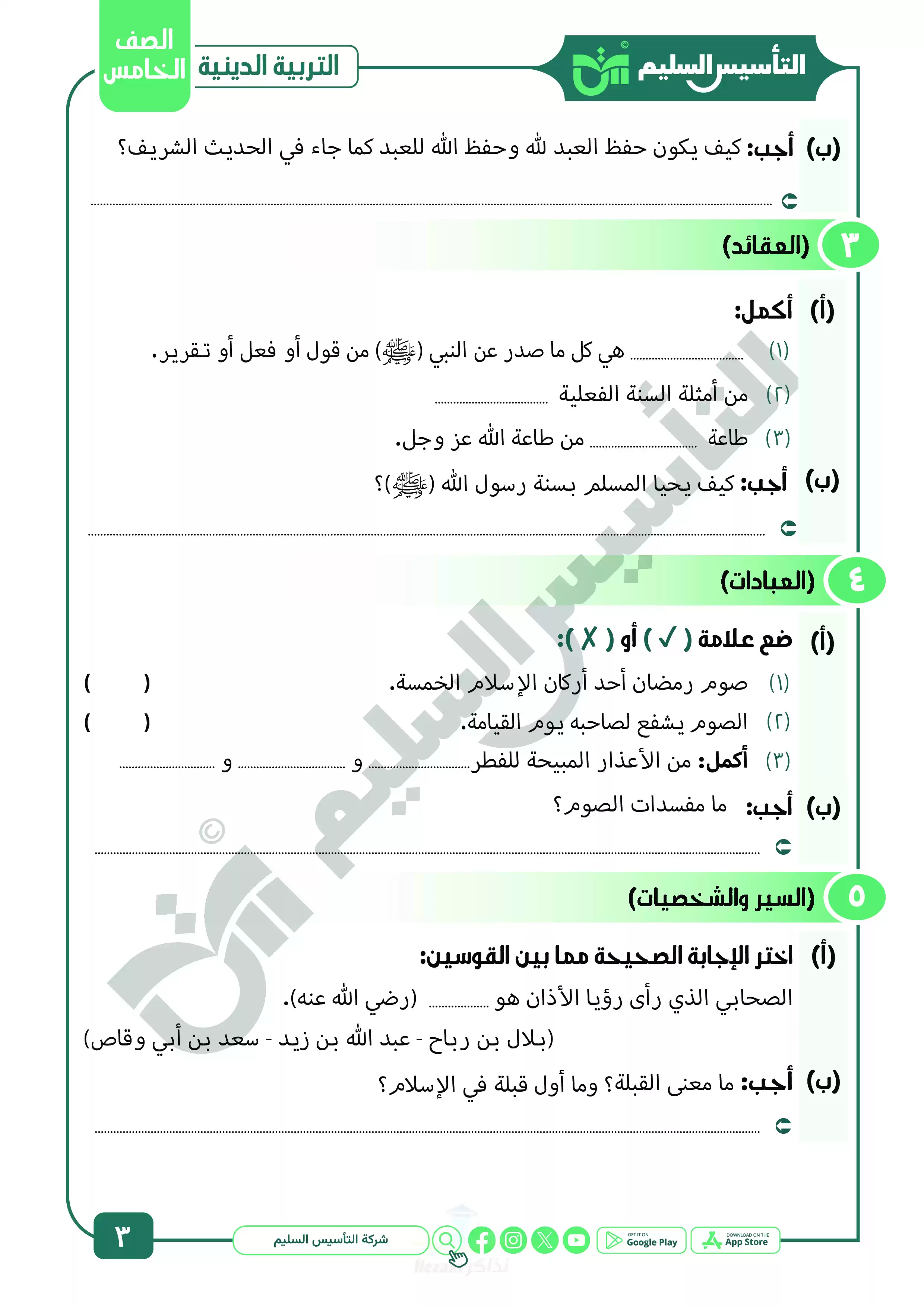 نقدم لكم المزيد من المحتوى من إعداد التأسيس السليم ومقدم إلى الصف الخامس الإبتدائي للإطلاع عليه أو تحميله.