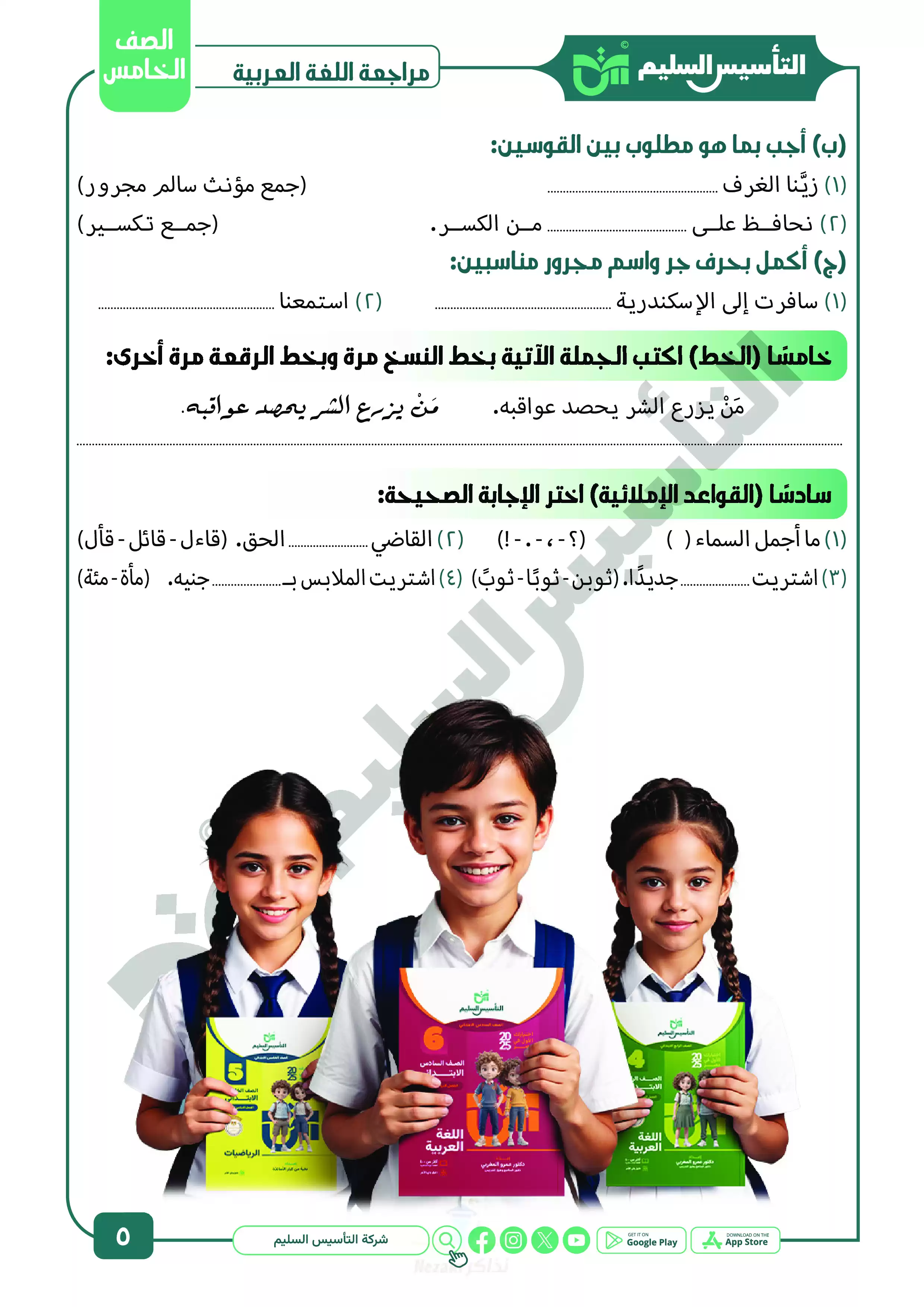 نقدم لكم المزيد من المحتوى من إعداد التأسيس السليم ومقدم إلى الصف الخامس الإبتدائي للإطلاع عليه أو تحميله.