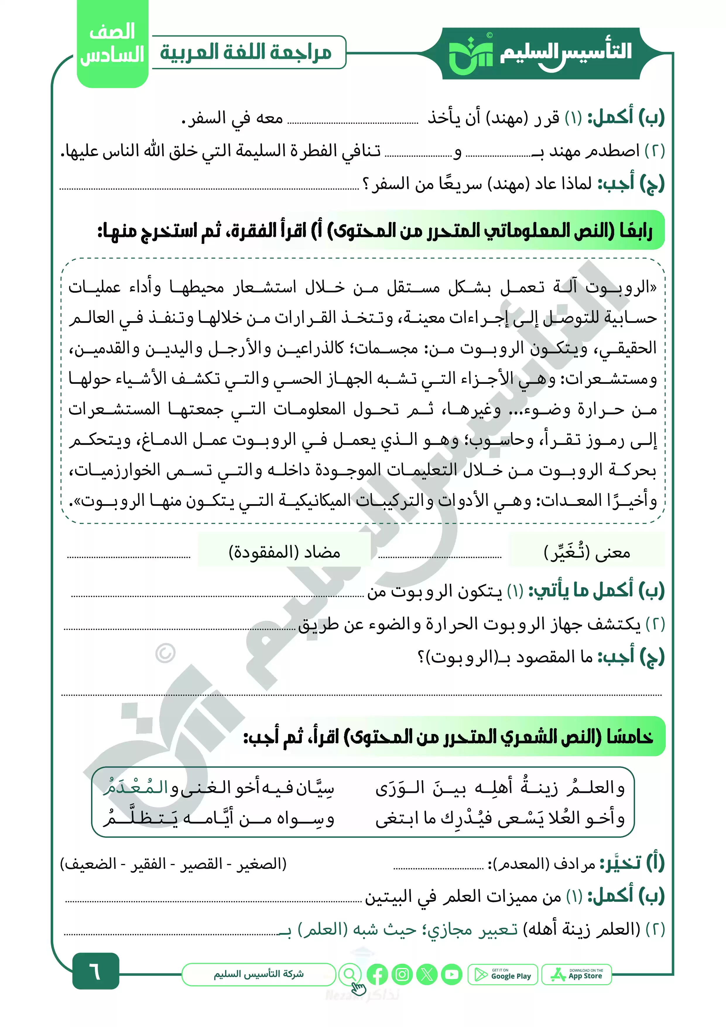 نقدم لكم المزيد من المحتوى من إعداد التأسيس السليم ومقدم إلى الصف السادس الإبتدائي للإطلاع عليه أو تحميله.