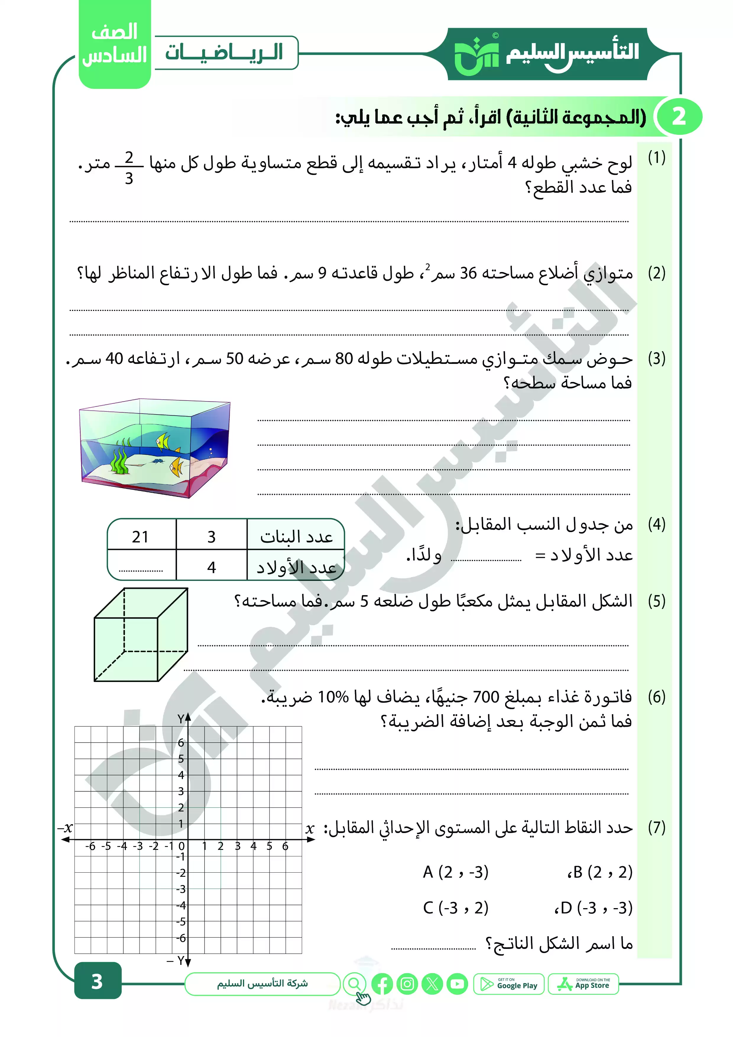 صفحة 3 من 22 صفحة من ملف: نماذج اختبارات ومراجعة الرياضيات النهائية من التأسيس السليم للصف السادس الابتدائي الترم الثاني 2025 - Nezakr