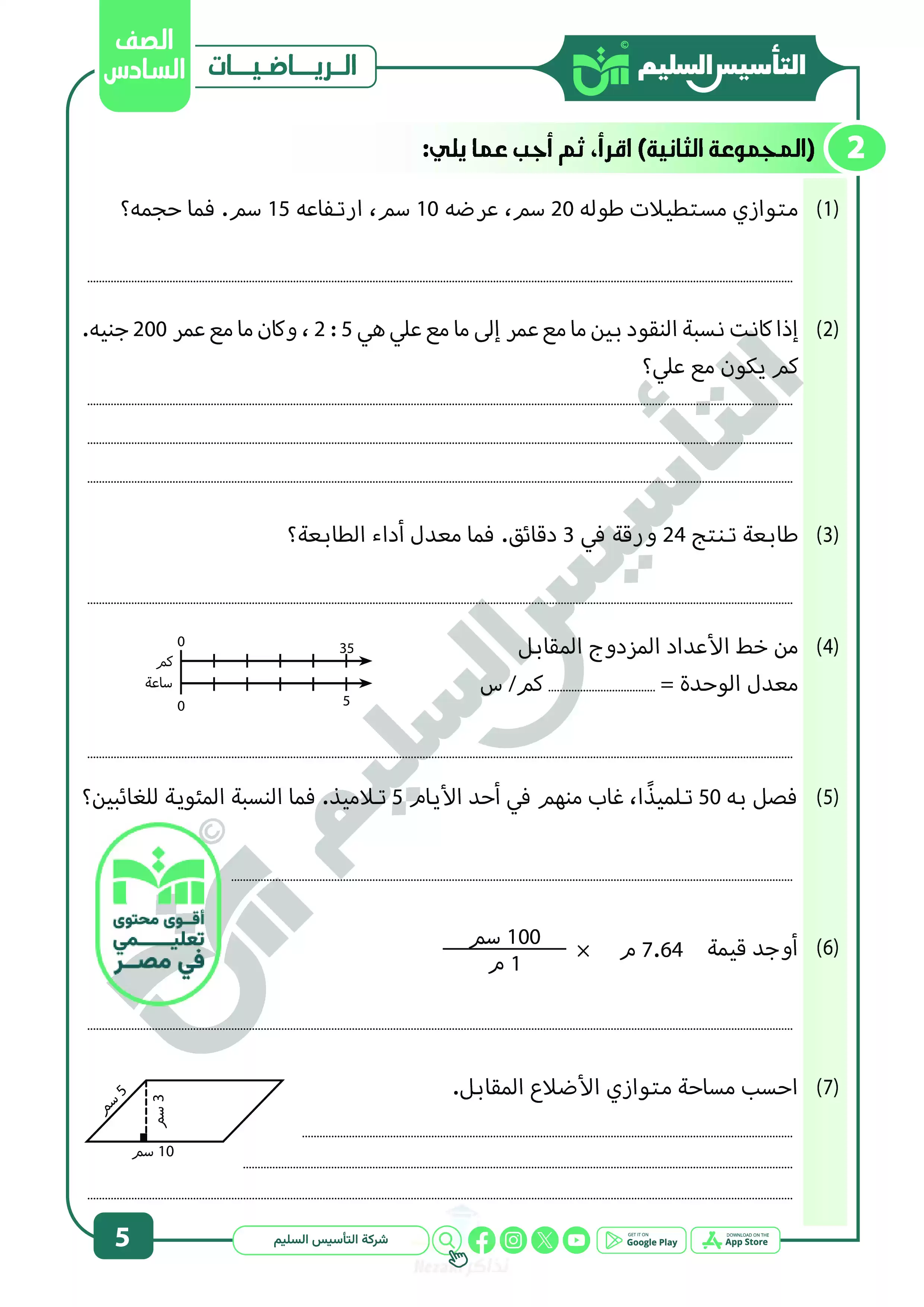 صفحة 5 من 22 صفحة من ملف: نماذج اختبارات ومراجعة الرياضيات النهائية من التأسيس السليم للصف السادس الابتدائي الترم الثاني 2025 - Nezakr