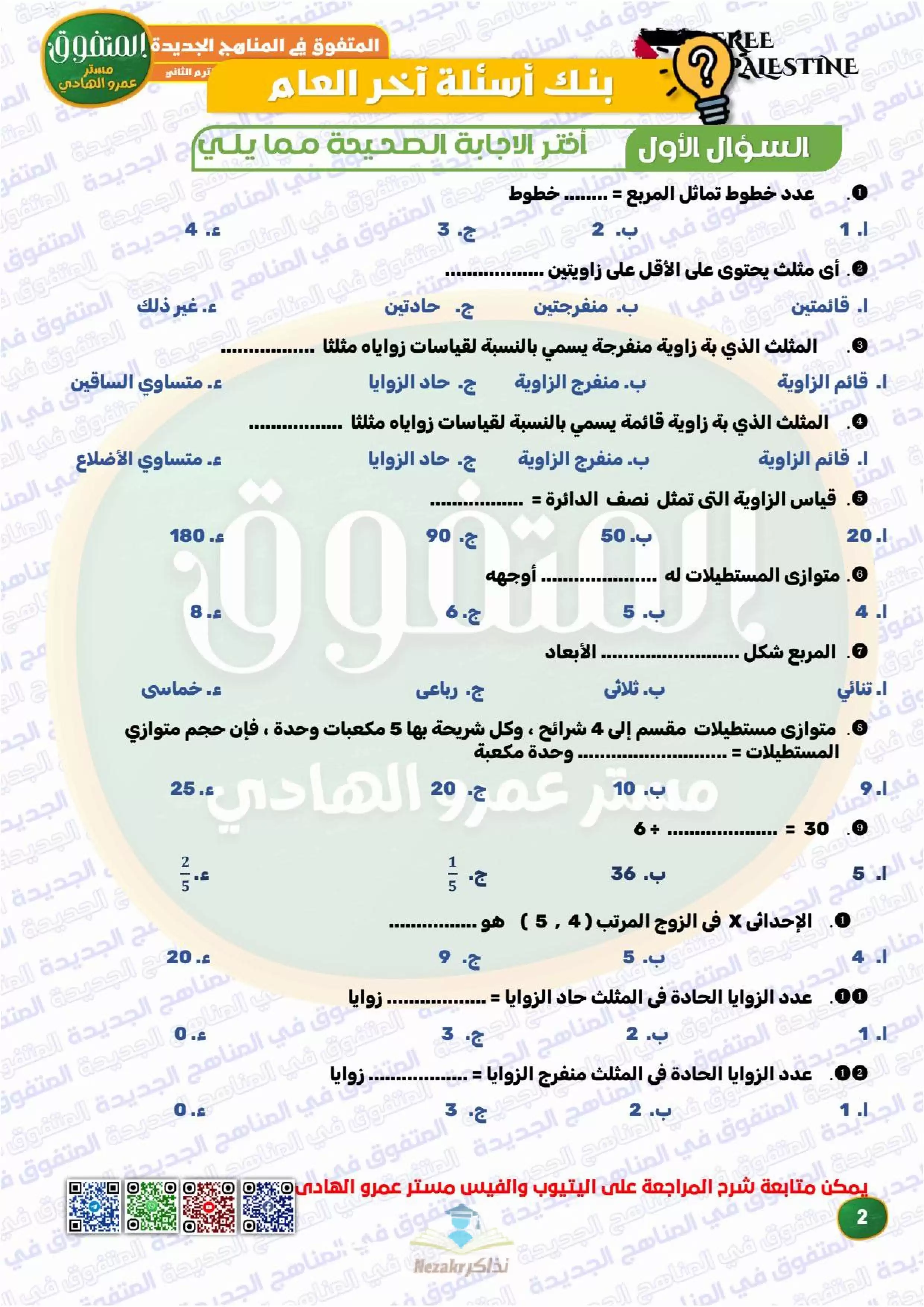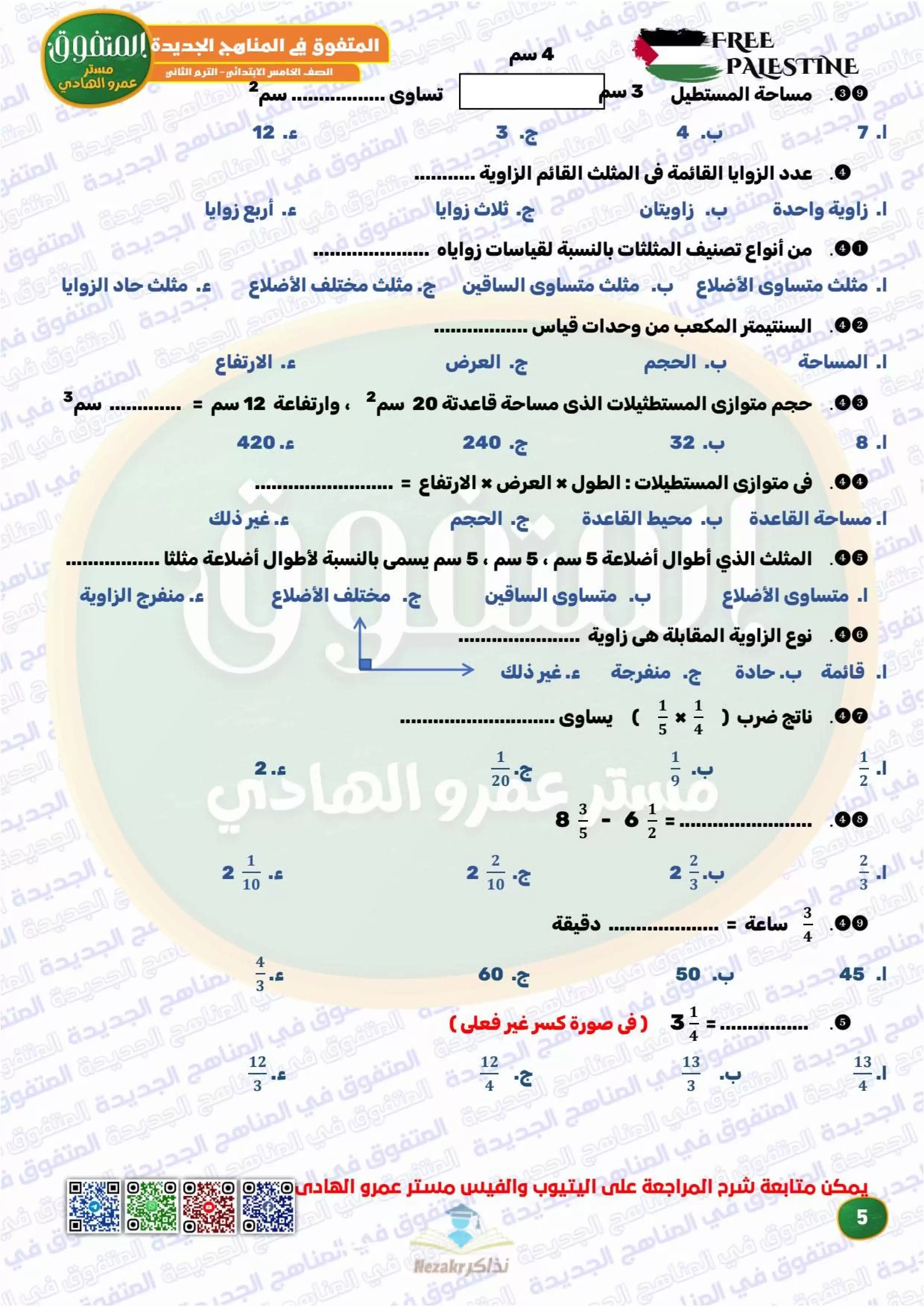 ملف المراجعة النهائية رياضيات للصف الخامس الابتدائي ترم 2 من المتفوق من إعداد: أ. عمرو الهادي