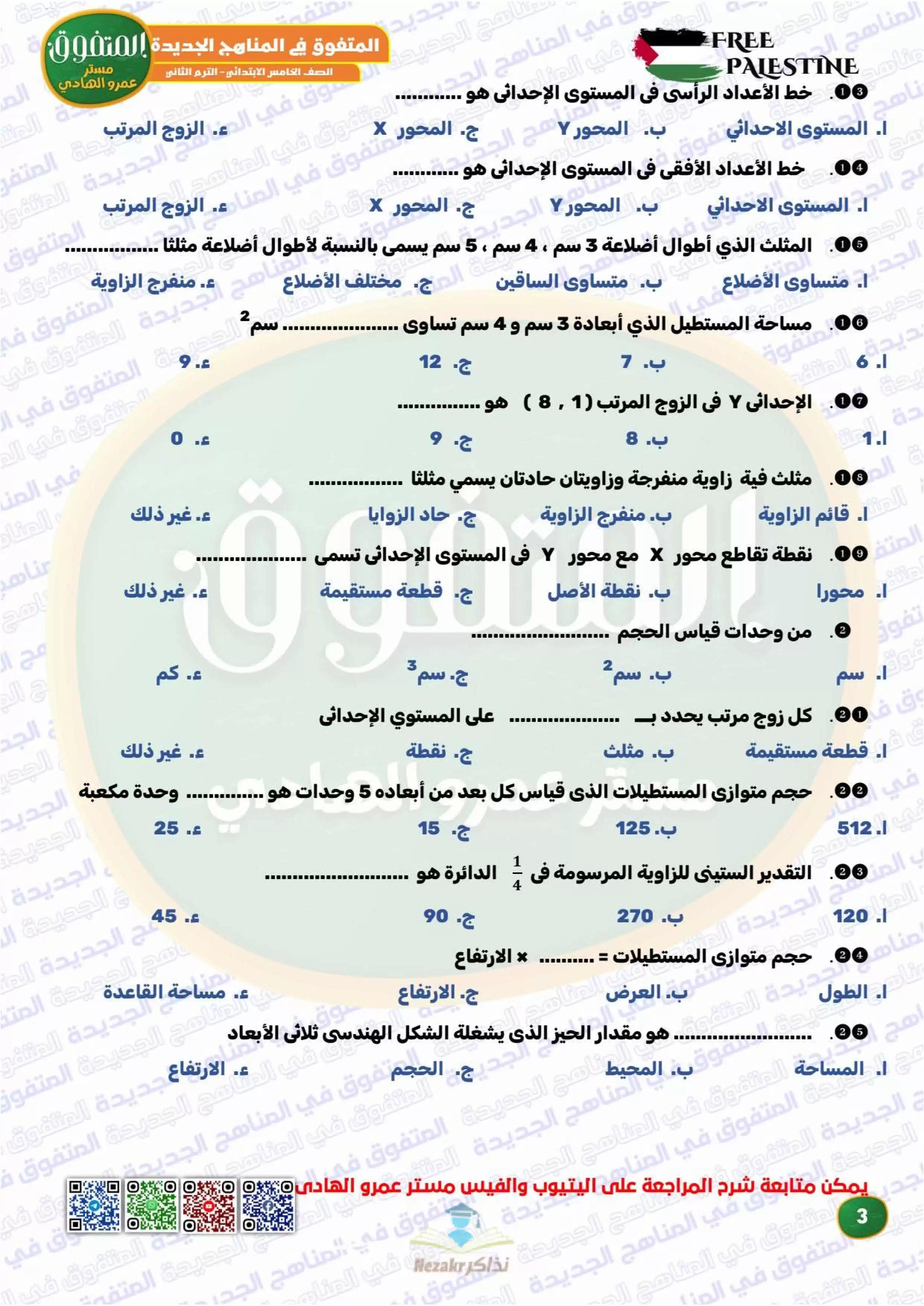 | بيانات الملف: (مراجعة المتفوق النهائية في الرياضيات للصف الخامس الابتدائي الترم الثاني - Nezakr) | |