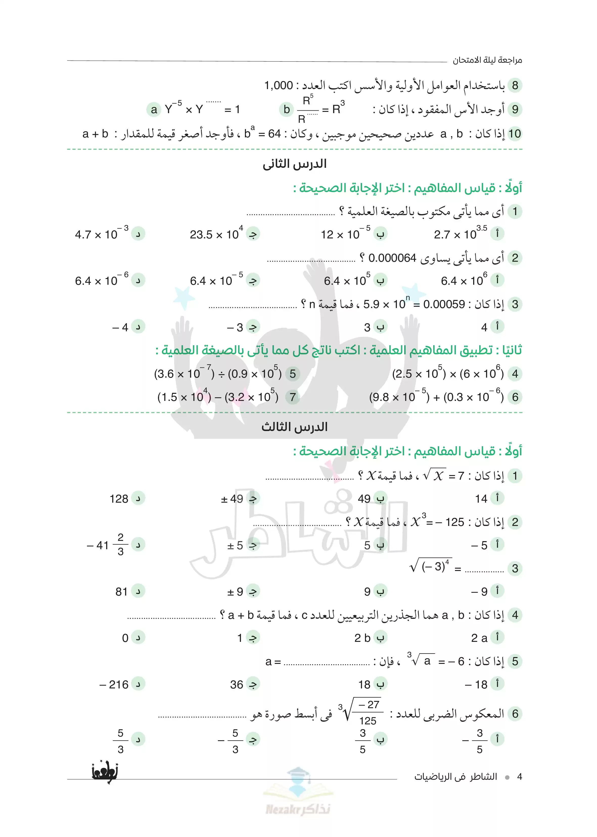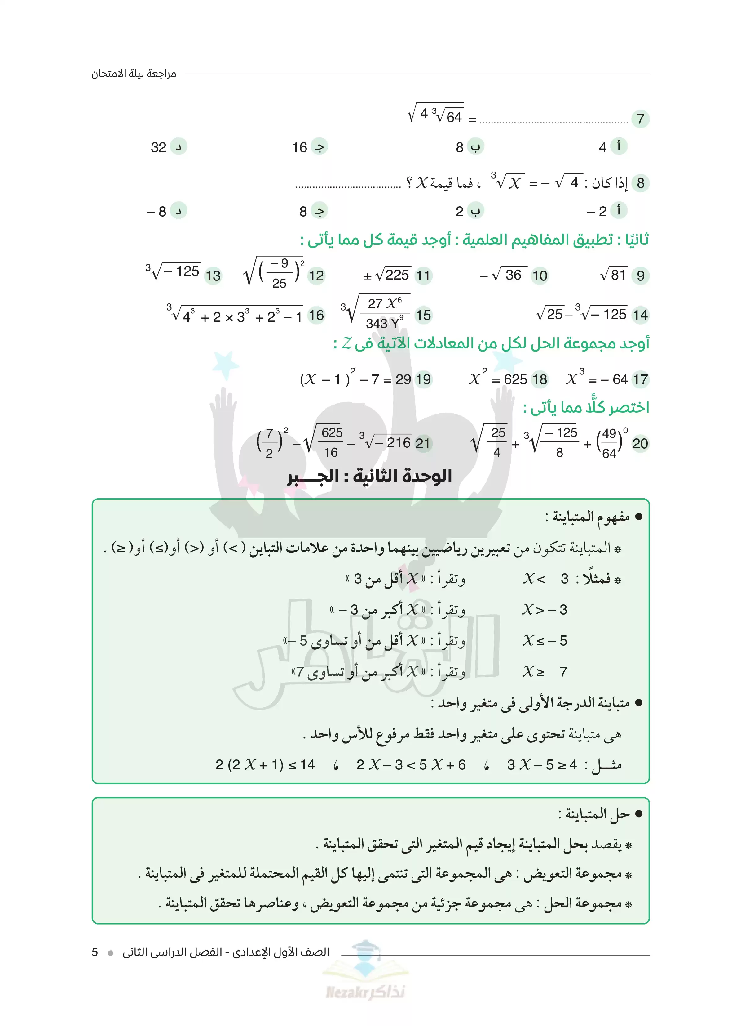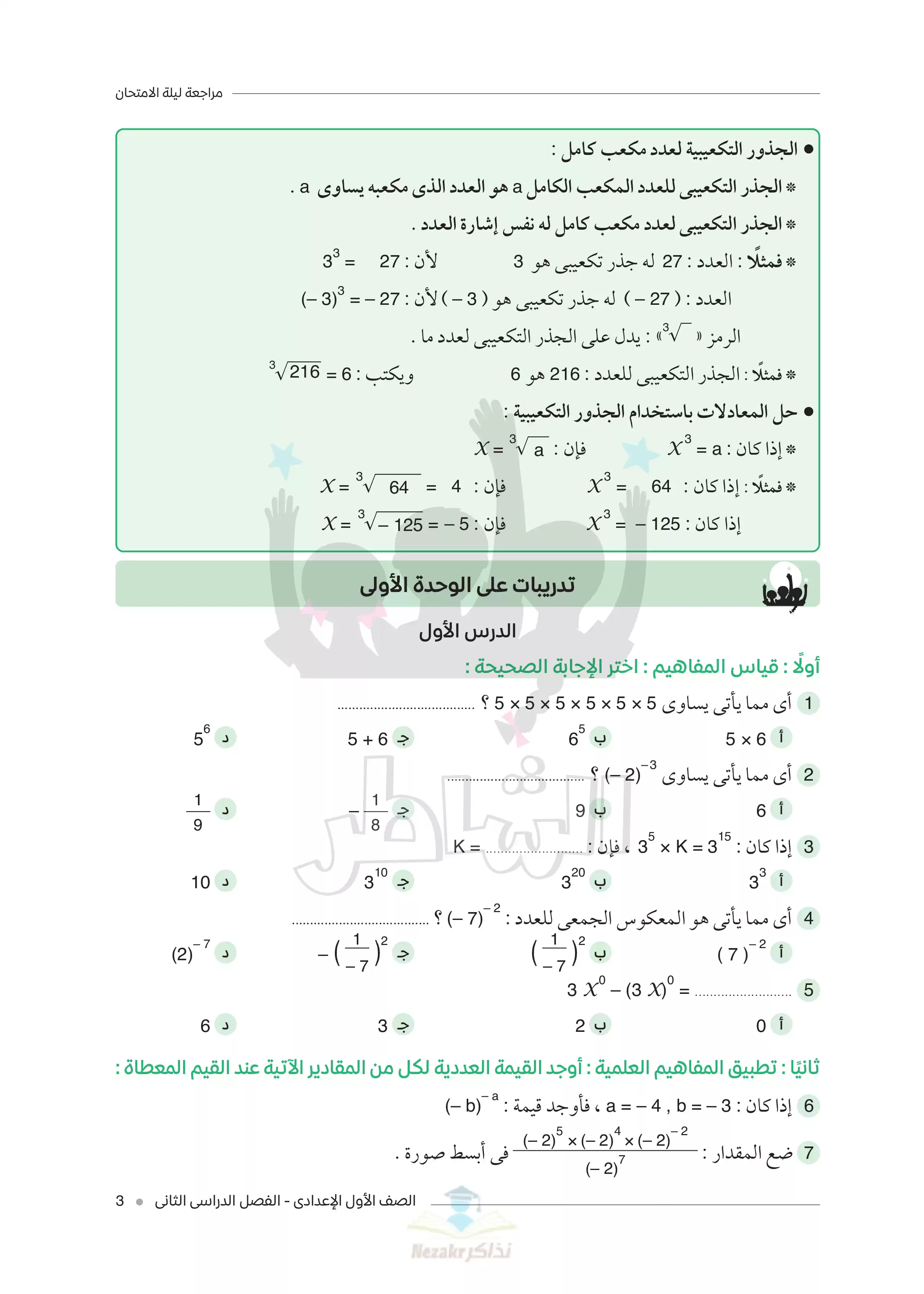 | بيانات الملف: (مراجعة ليلة الامتحان في الرياضيات للصف الأول الاعدادي الترم الثاني من كتاب الشاطر - Nezakr) | |