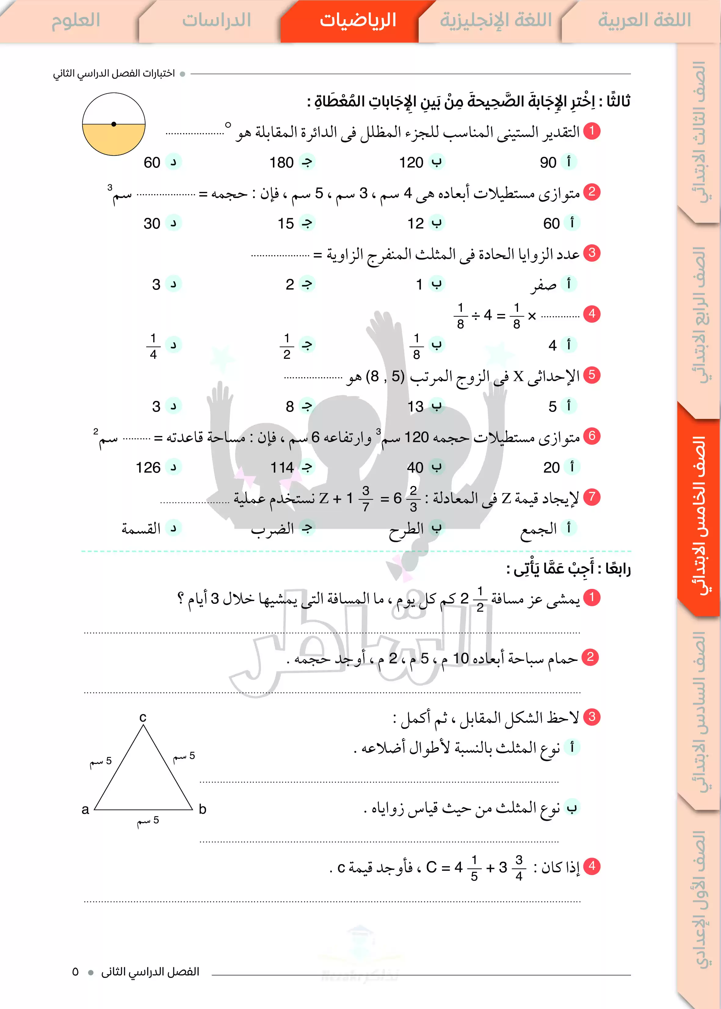 • المراجعة النهائية في الرياضيات للصف الخامس الابتدائي الفصل الدراسي الثاني من كتاب الشاطر