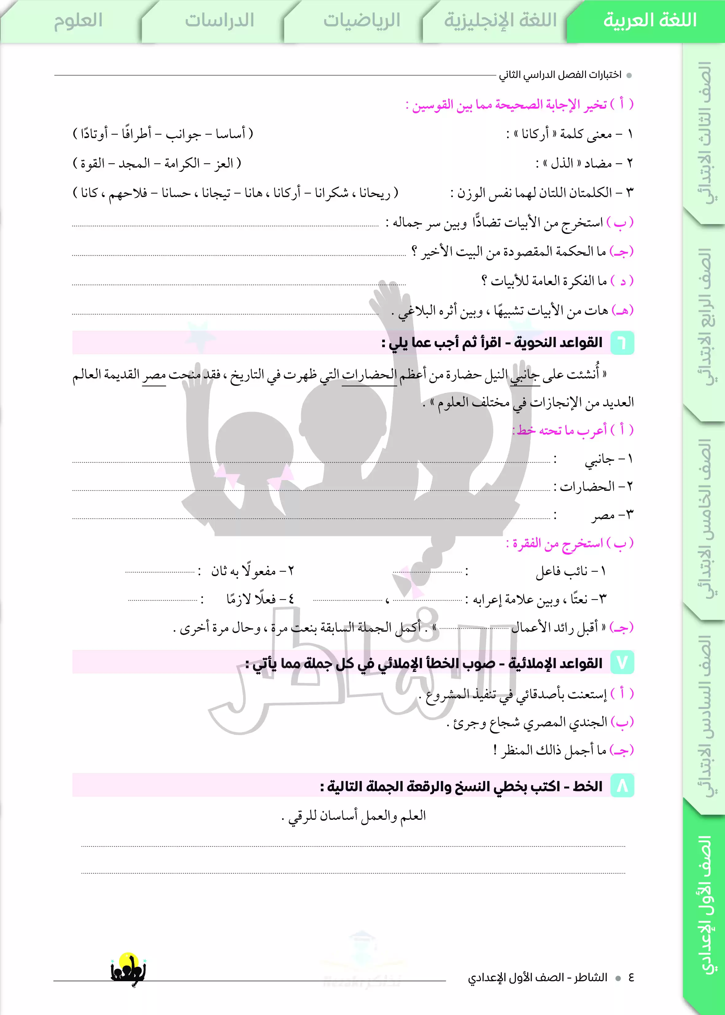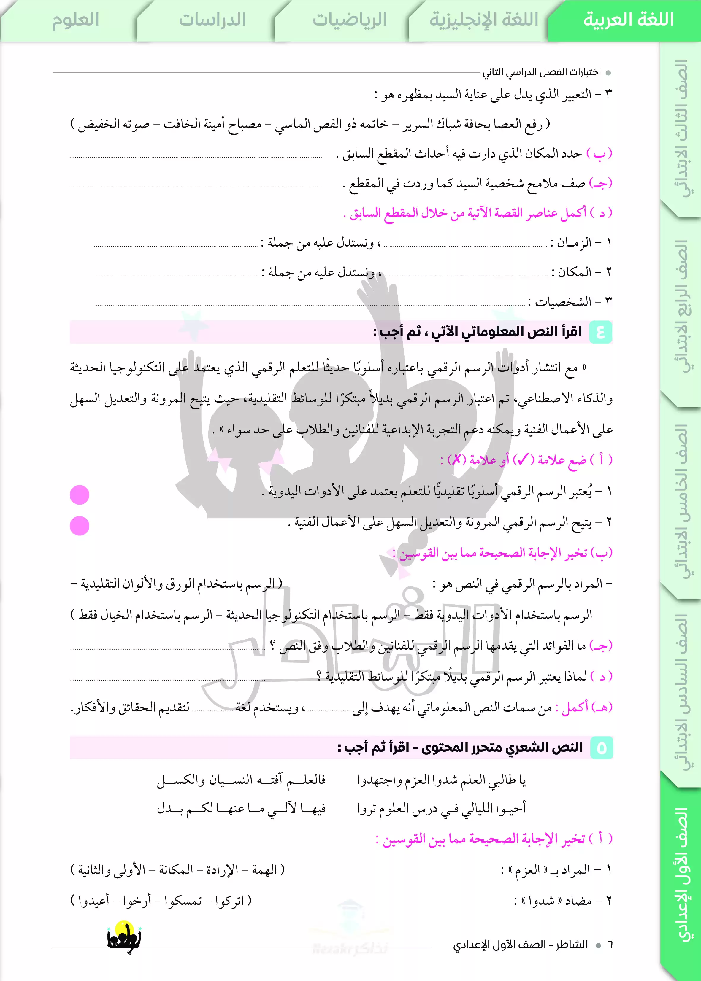 نقدم لكم المزيد من المحتوى من إعداد كتاب الشاطر ومقدم إلى الصف الأول الإعدادي للإطلاع عليه أو تحميله.