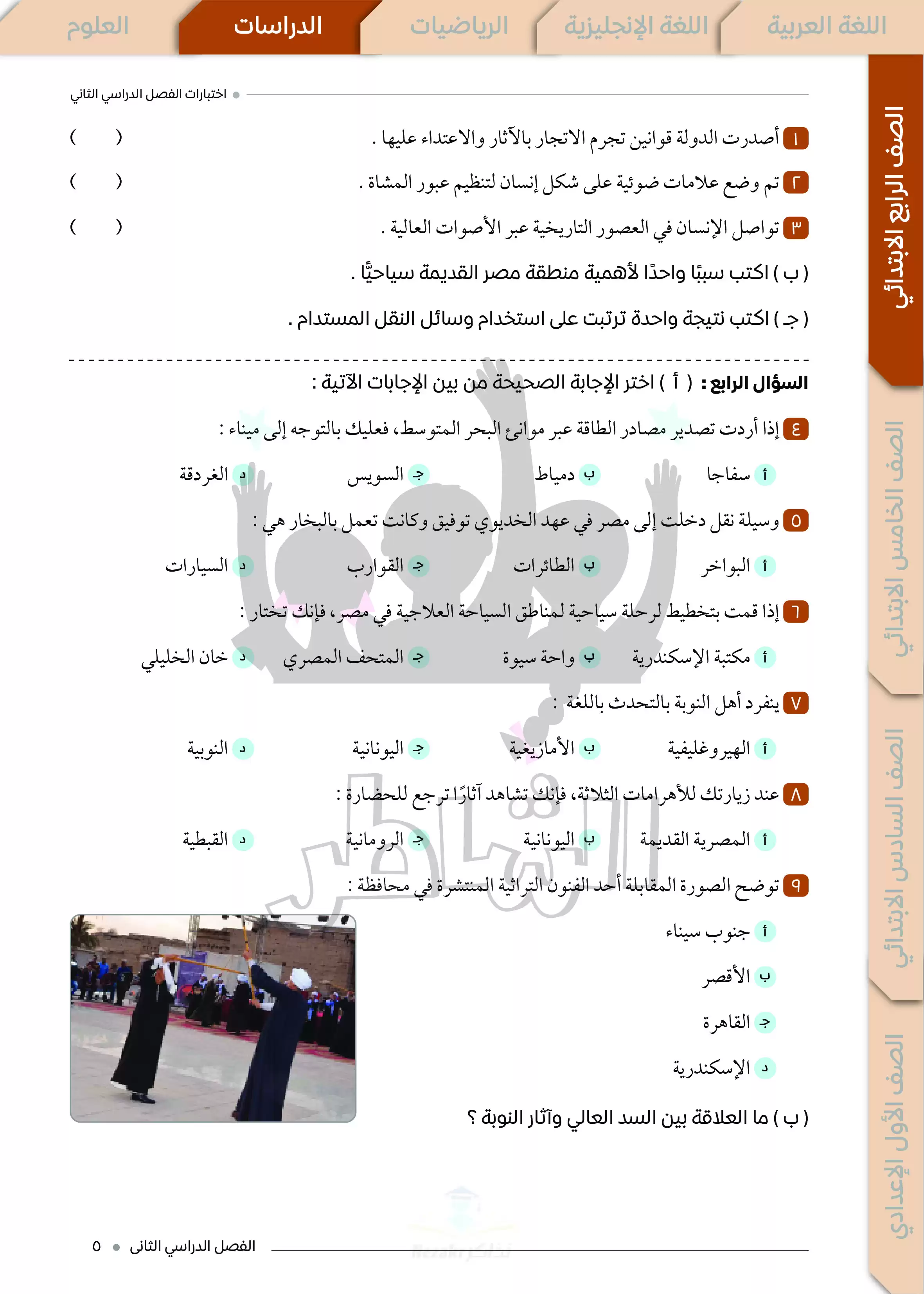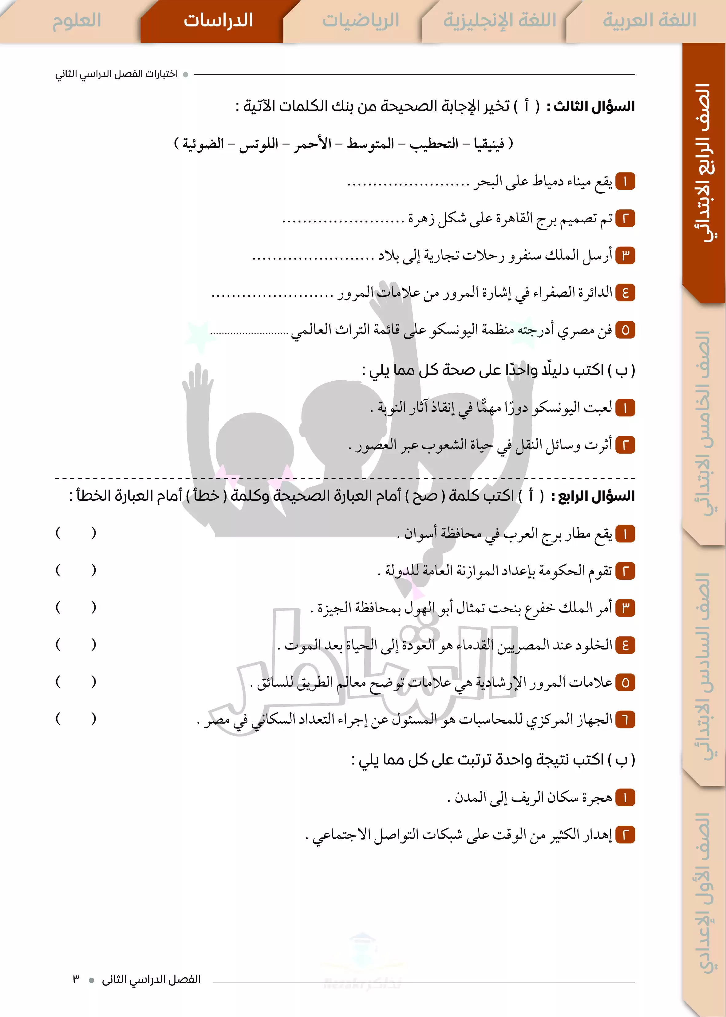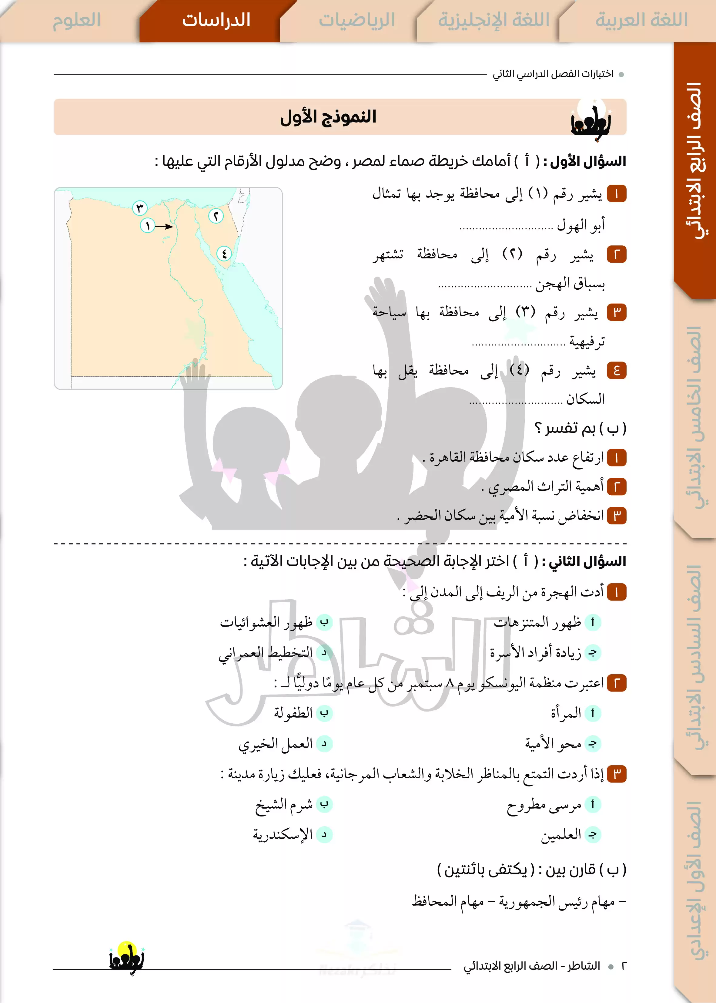 الملف بصيغة PDF وبجودة عالية ومميزة ومتاح للتحميل والتصفح أونلاين، كما يمكنك طباعته ورقيا والمذاكرة منه بسهولة أو عرضه على الهاتف أو التابلت، للتدرب على امتحان الدراسات في الترم الثاني رابعة ابتدائي.