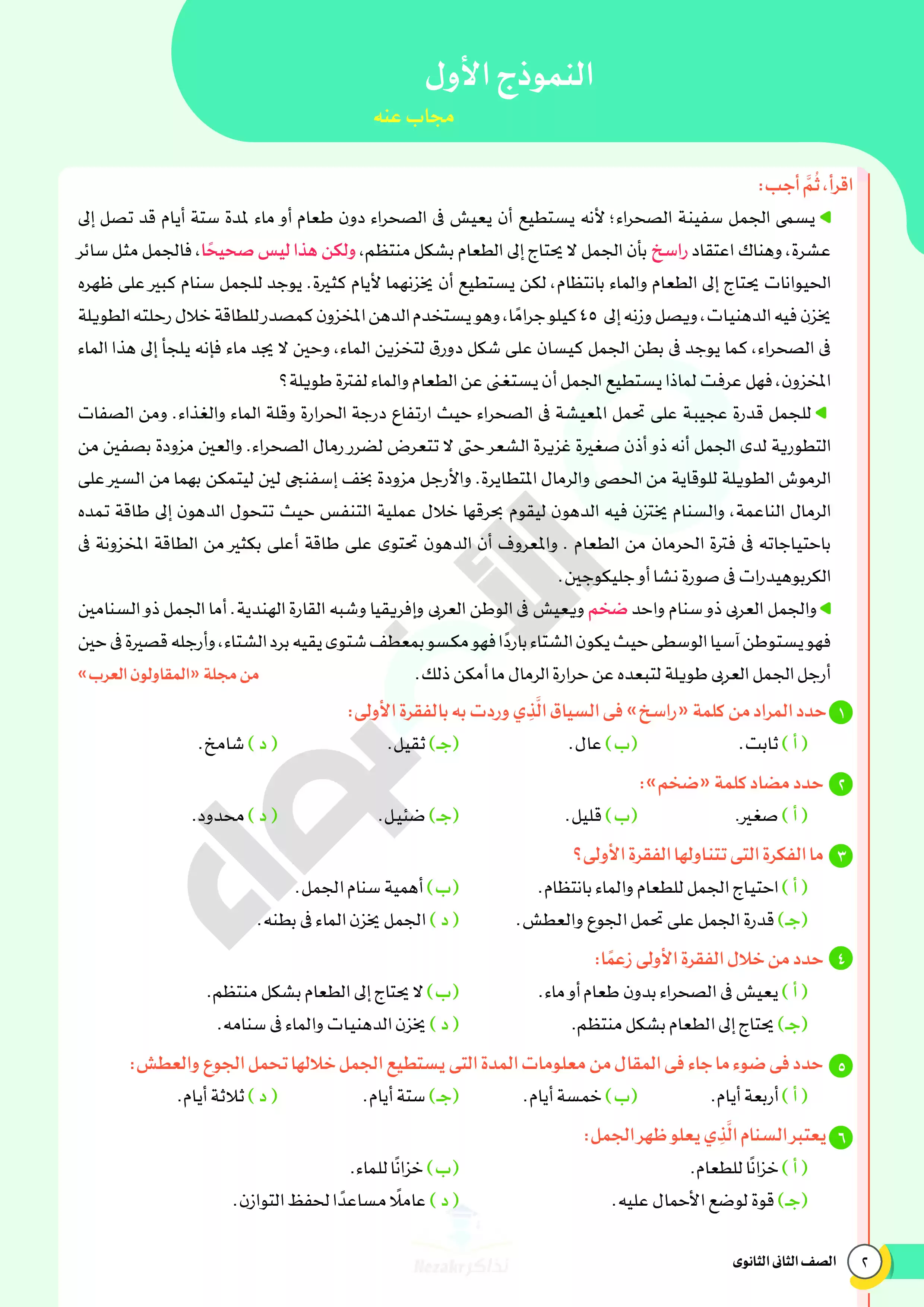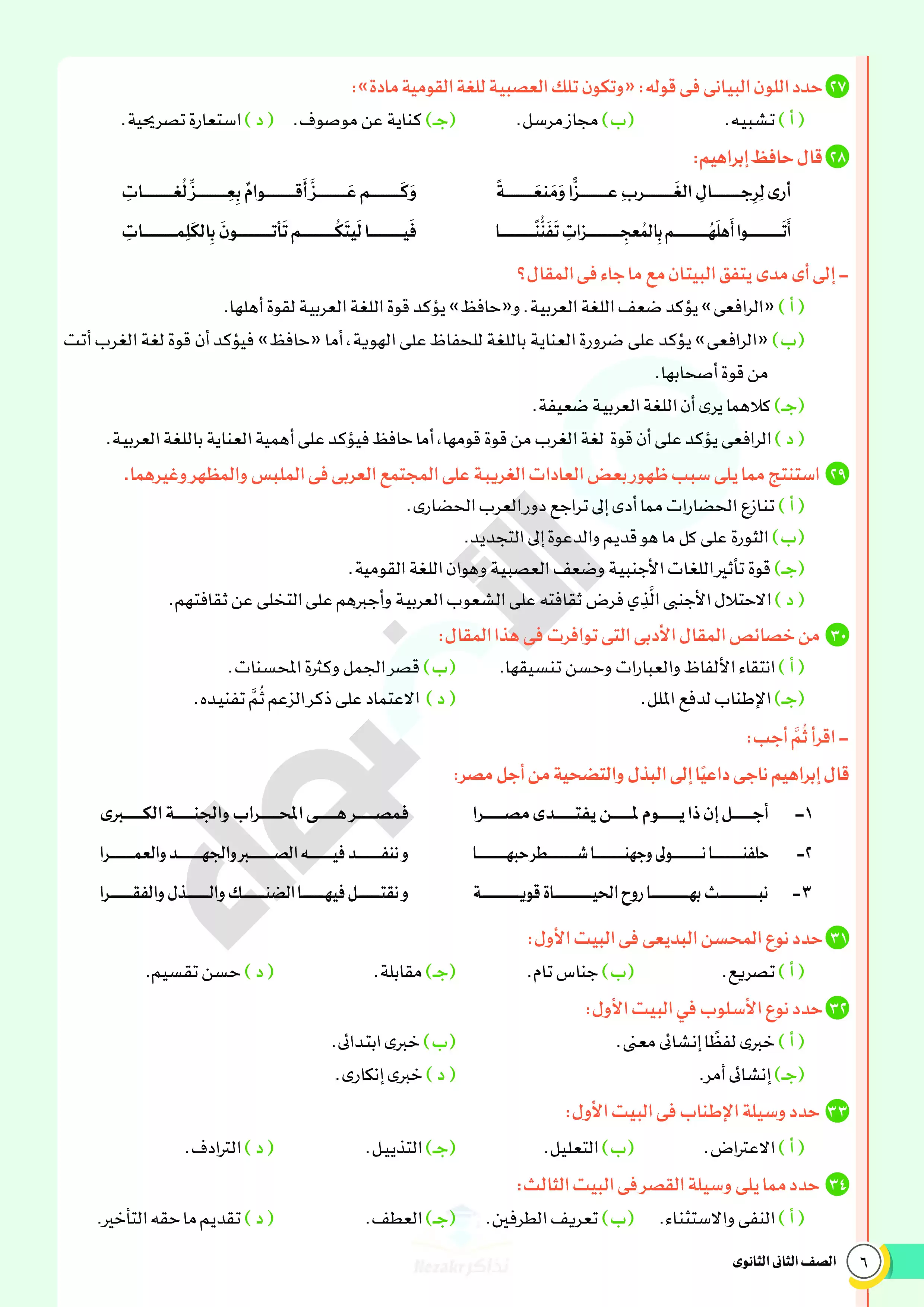 صفحة 6 من 46 صفحة من ملف: نماذج اختبارات ومراجعة الأضواء النهائية في مادة اللغة العربية للصف الثاني الثانوي الترم الثاني 2025 - Nezakr