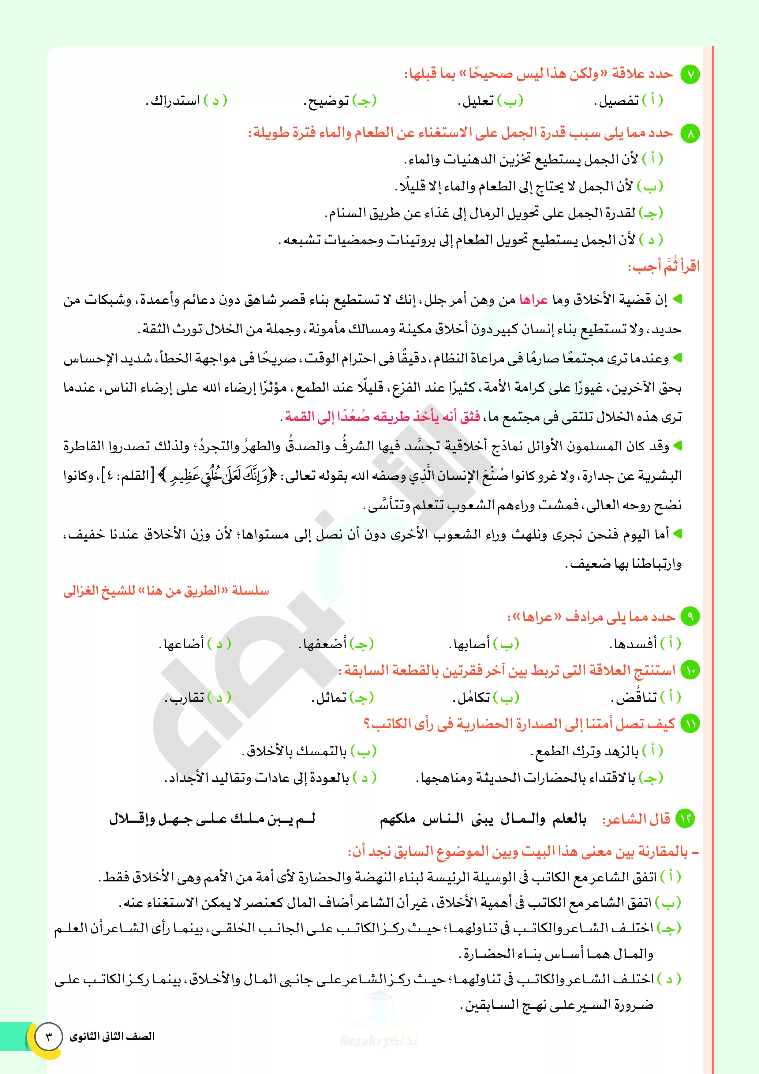 صفحة 3 من 46 صفحة من ملف: نماذج اختبارات ومراجعة الأضواء النهائية في مادة اللغة العربية للصف الثاني الثانوي الترم الثاني 2025 - Nezakr