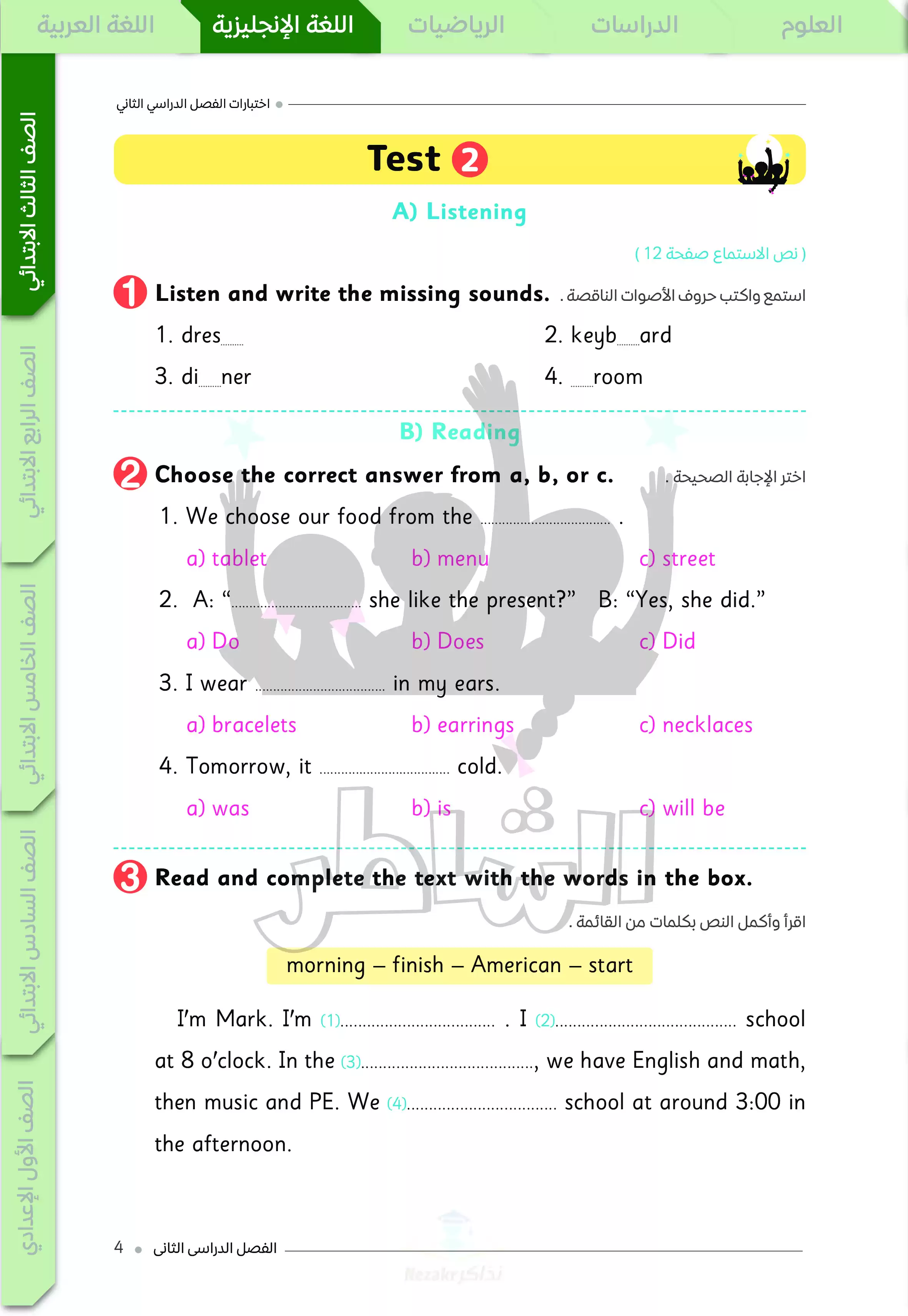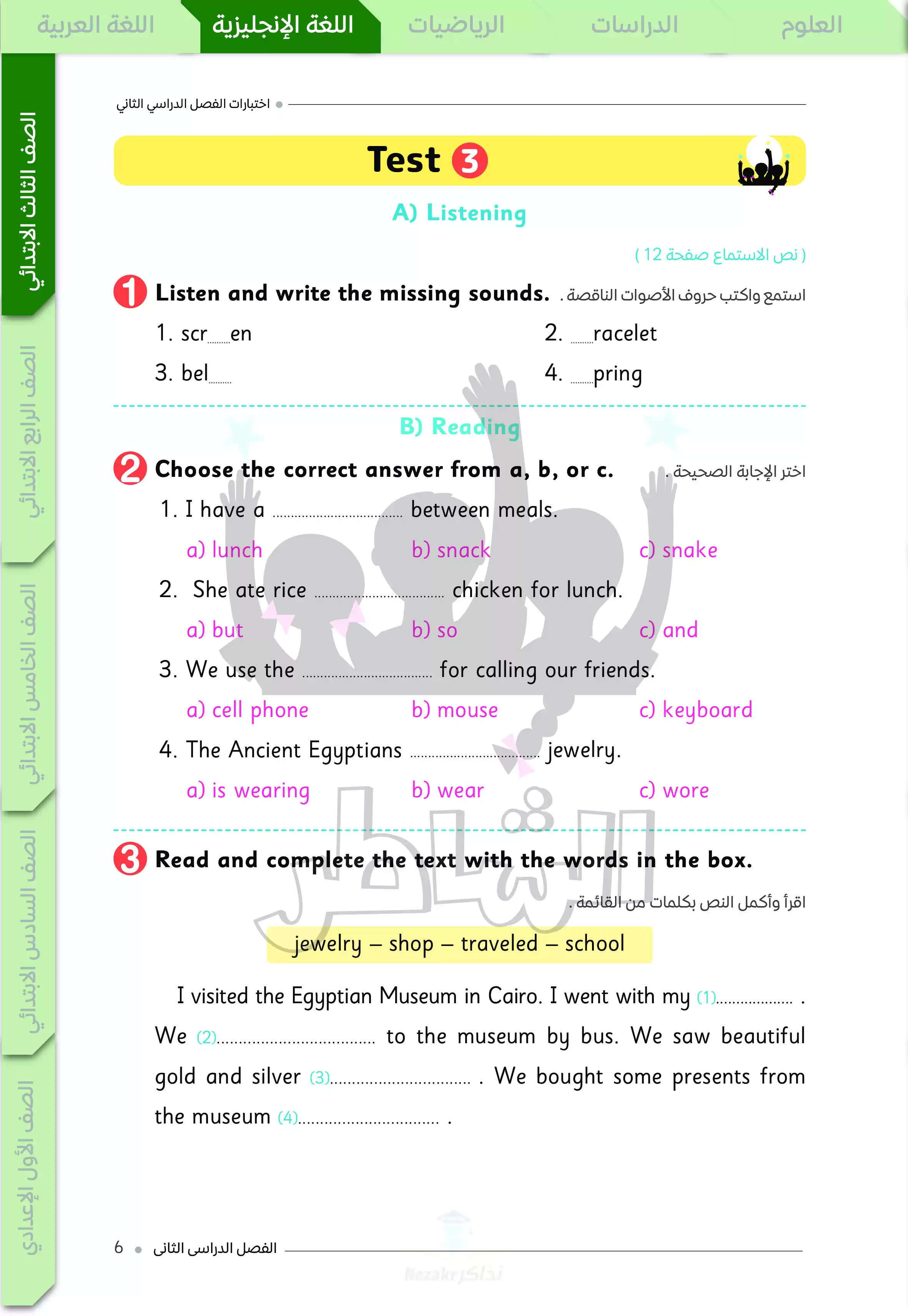 مرحباً بكم تلاميذ الصف الثالث الابتدائي، نقدم لكم نماذج اختبارات استرشادية في مادة اللغة الإنجليزية Connect 3لثالثة ابتدائي ترم ثاني 2025 من إعداد سلسلة كتب الشاطر، ويتكون الملف من نماذج امتحانات مميزة تغطية كافة أجزاء منهج الانجليزي للصف الثالث الابتدائي الفصل الدراسي الثاني، ليتمكن الطالب من خلالها من التدريب على نظام امتحان آخر العام وطريقة وضع الأسئلة الامتحانية، كما يتعود على شكل الامتحان وطريقه الإجابة على الأسئلة المختلفة في الإطار الزمني للامتحان.