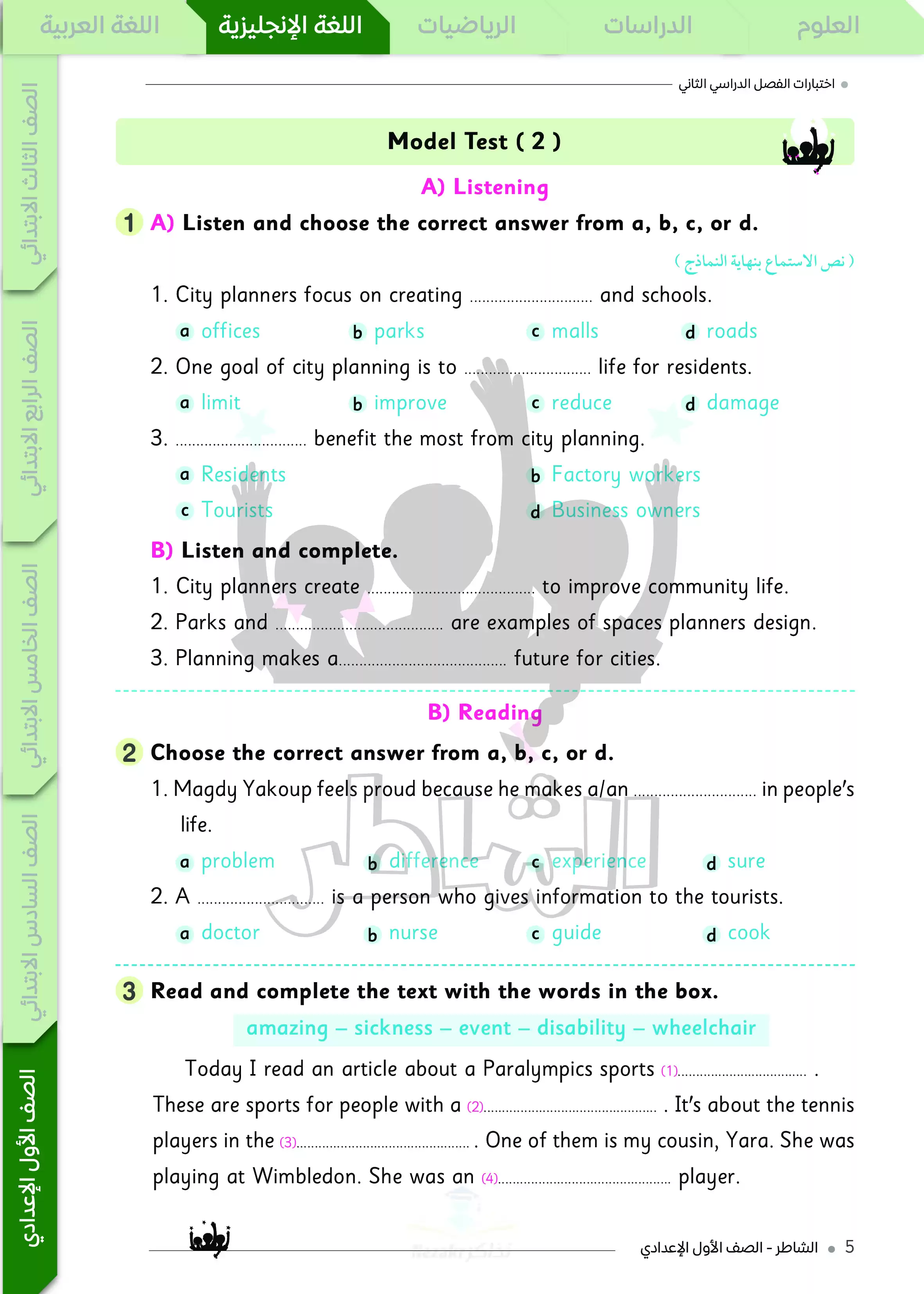مرحباً بكم تلاميذ الصف الأول الاعدادي، نقدم لكم نماذج اختبارات استرشادية في مادة اللغة الإنجليزية Hello 1p لأولى إعدادي ترم ثاني 2025 من إعداد سلسلة كتب الشاطر، ويتكون الملف من نماذج امتحانات مميزة تغطية كافة أجزاء منهج الانجليزي للصف الأول الاعدادي الفصل الدراسي الثاني، ليتمكن الطالب من خلالها من التدريب على نظام امتحان آخر العام وطريقة وضع الأسئلة الامتحانية، كما يتعود على شكل الامتحان وطريقه الإجابة على الأسئلة المختلفة في الإطار الزمني للامتحان.