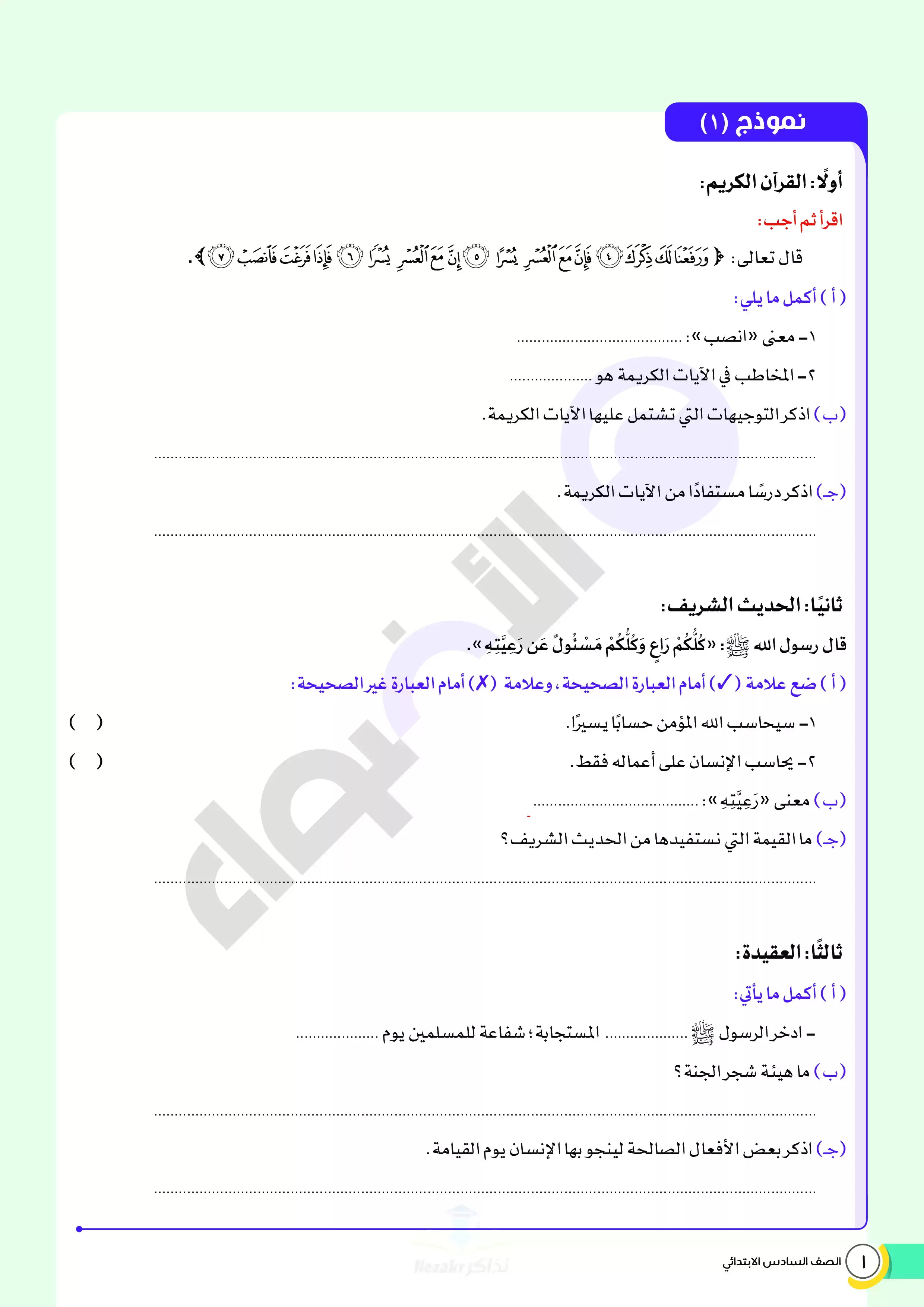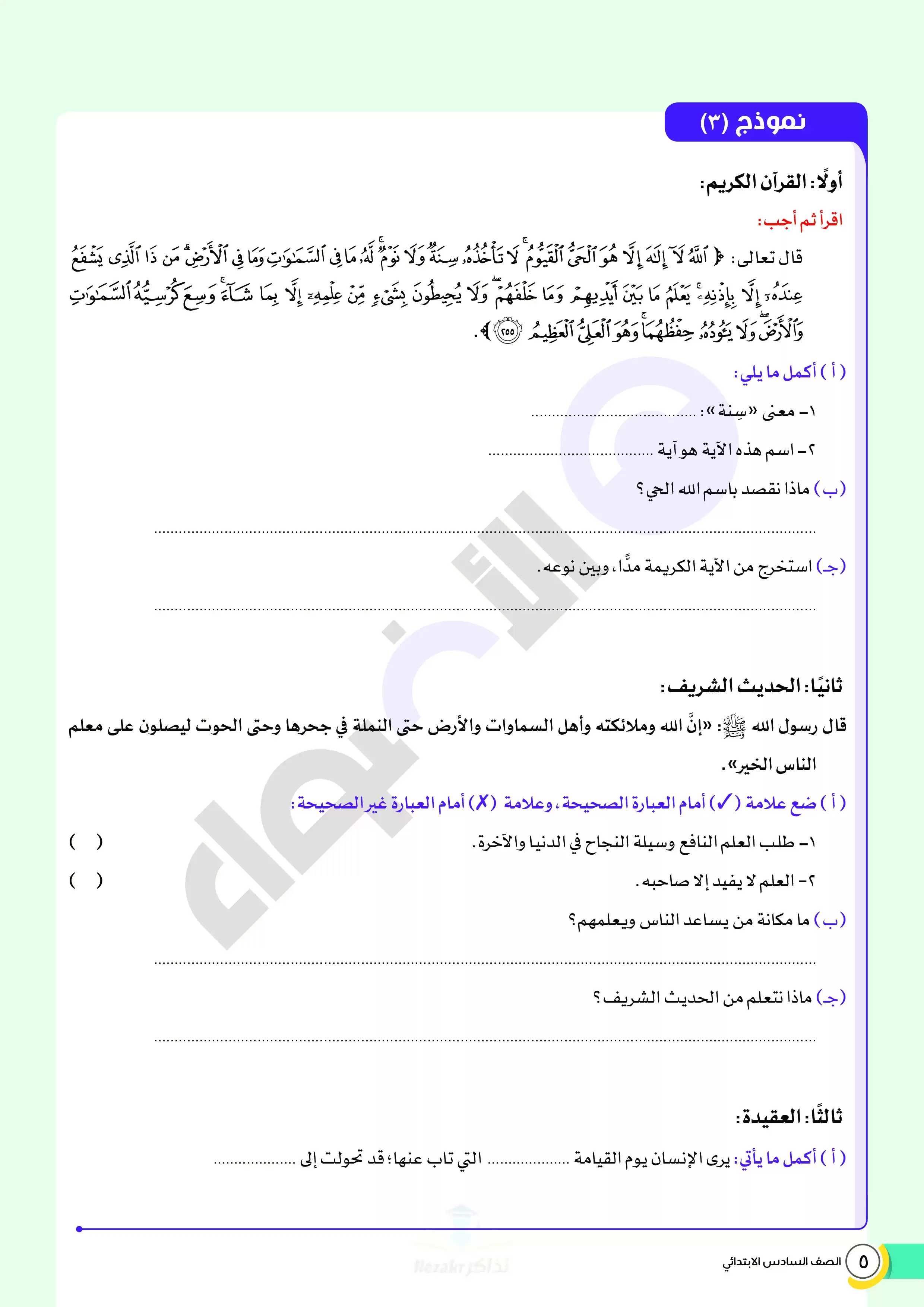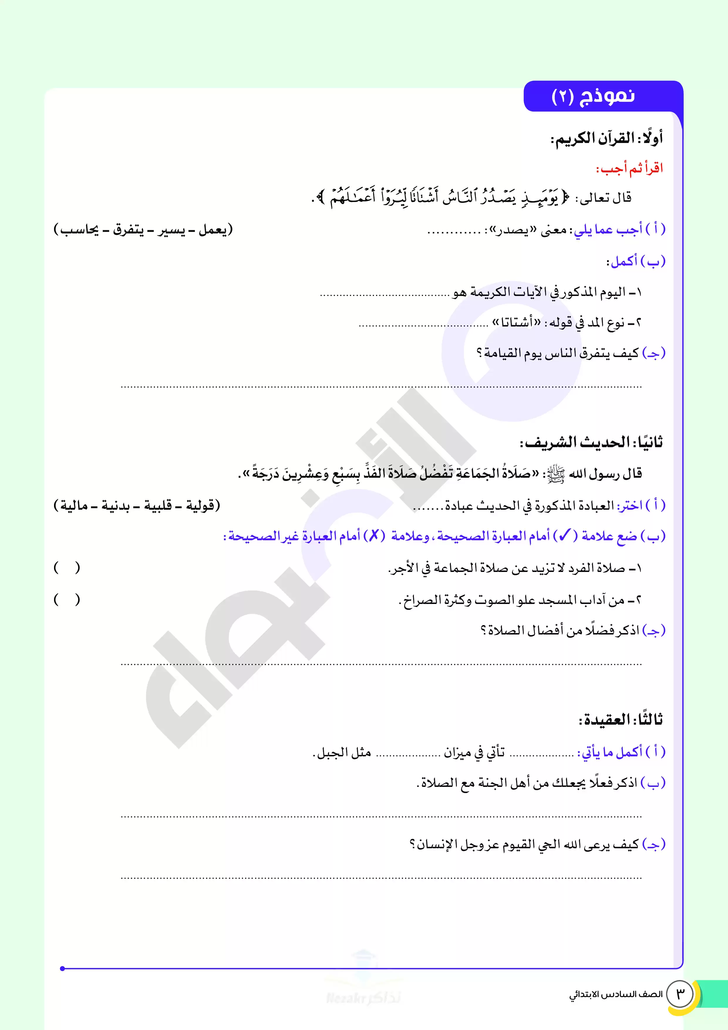 | بيانات الملف: (نماذج اختبارات ومراجعة الأضواء النهائية في مادة الدين للصف السادس الابتدائي الترم الثاني 2025 - Nezakr) | |