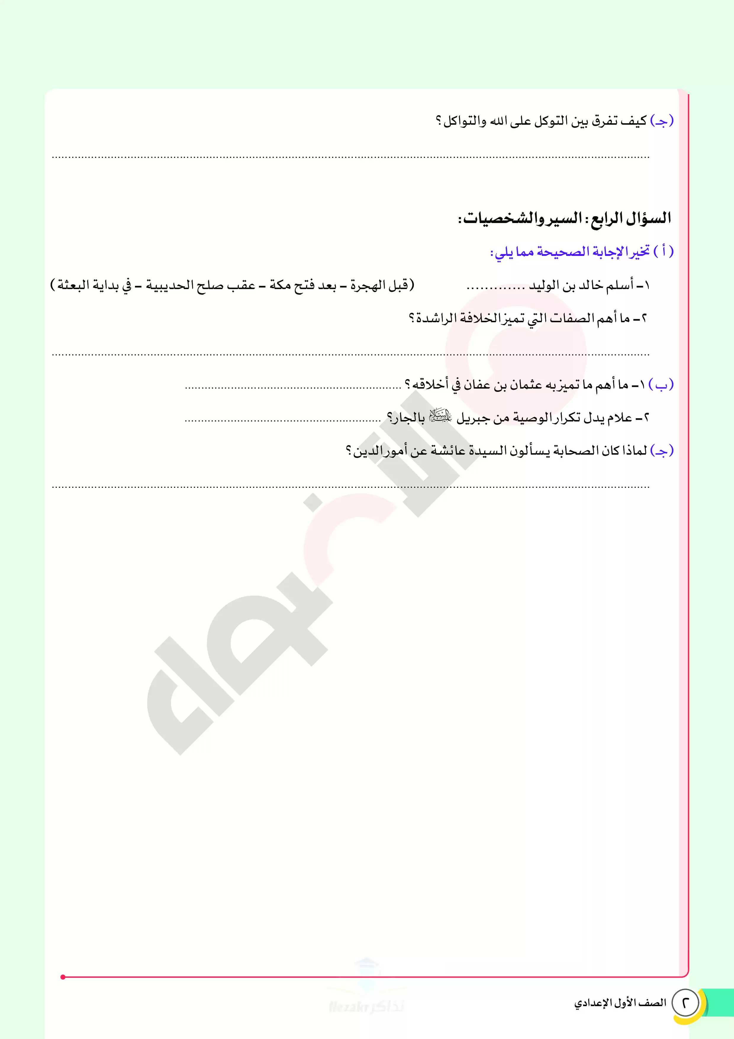 مرحباً بكم طلاب الصف الأول الإعدادي، ننشر لكم اليوم ملف المراجعة النهائية ونماذج الاختبارات النهائية من كتاب الأضواء في مادة التربية الدينية الإسلامية للصف الاول الإعدادي الفصل الدراسي الثاني 2025، ويحتوي الملف مراجعة وبنك أسئلة الأضواء على منهج الفصل الدراسي الثاني اولى اعدادي كاملاً في الدين الإسلامي، وهو ملف مميز بجودة مرتفعة وبصيغة PDF وذلك لتتمكن من تشغيله على جهاز الموبايل أو من خلال جهاز الكمبيوتر أو عبر اللابتوب أو التابلت لضمان سهولة الوصول الى الكتاب والمذاكرة عليه.
