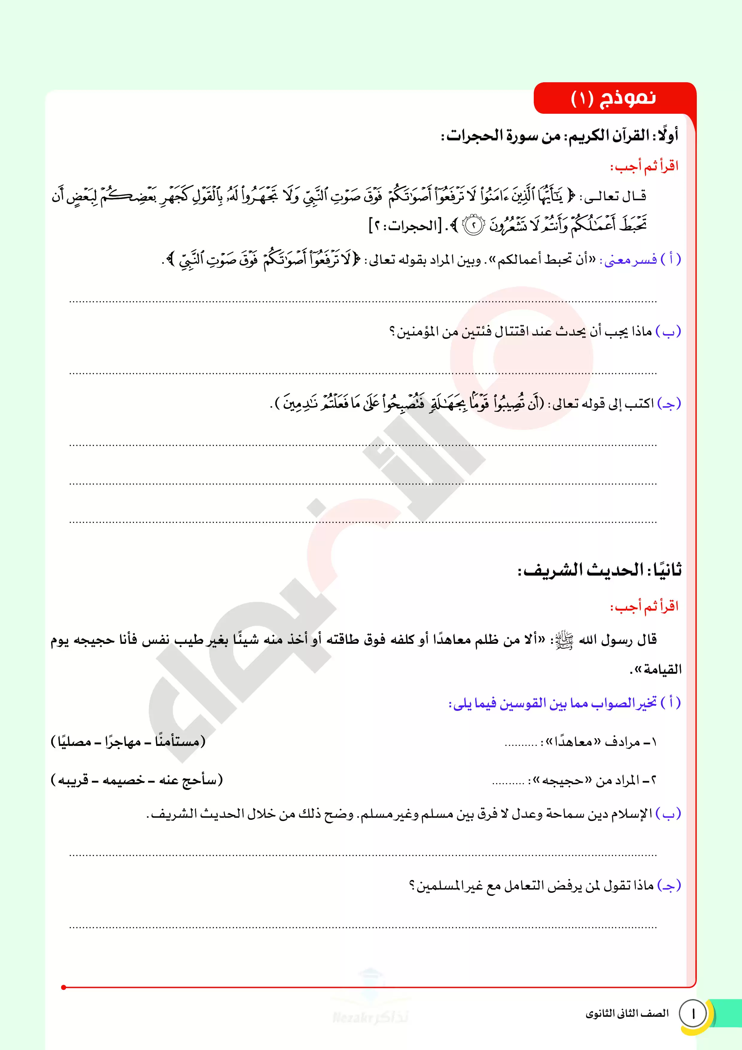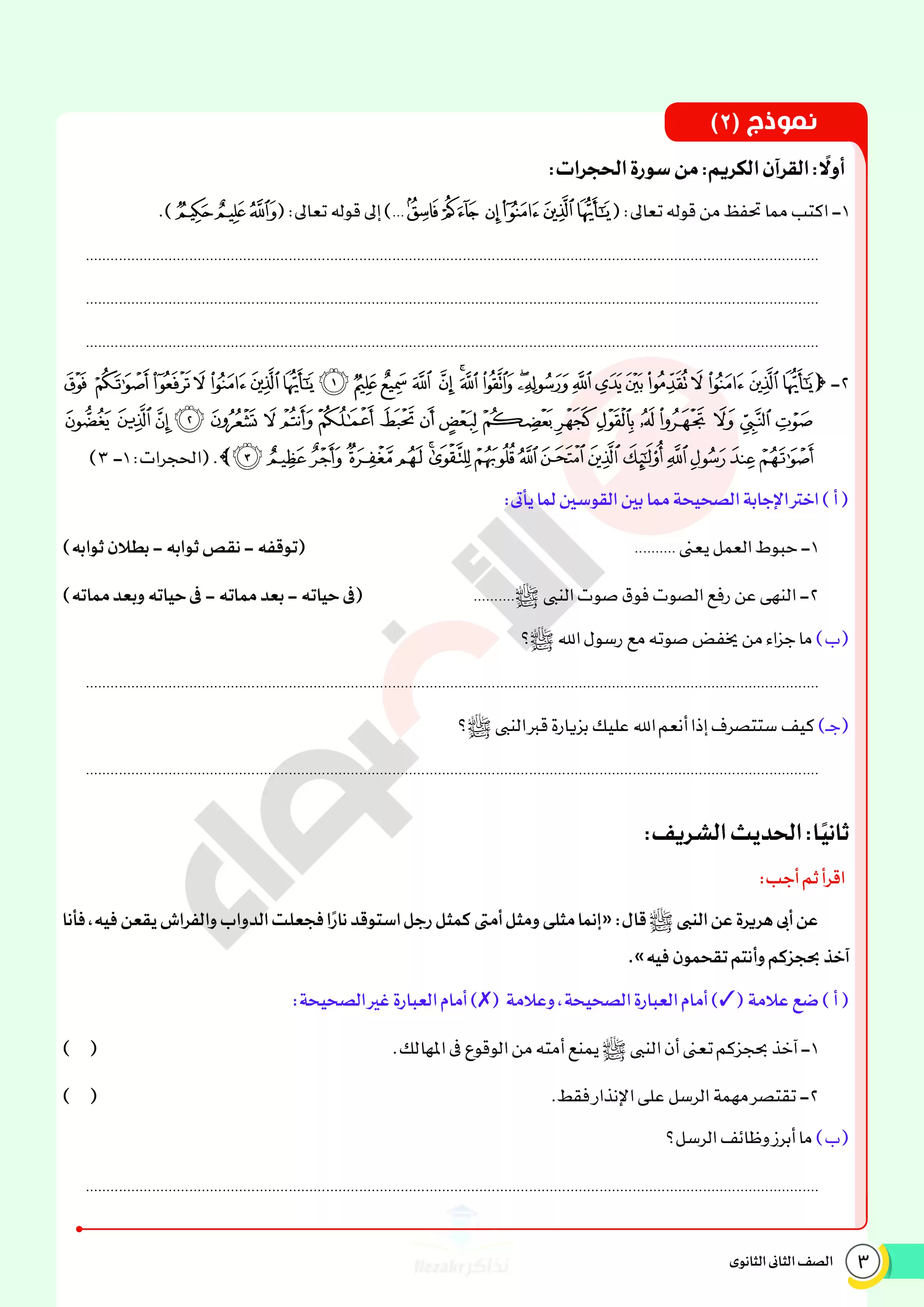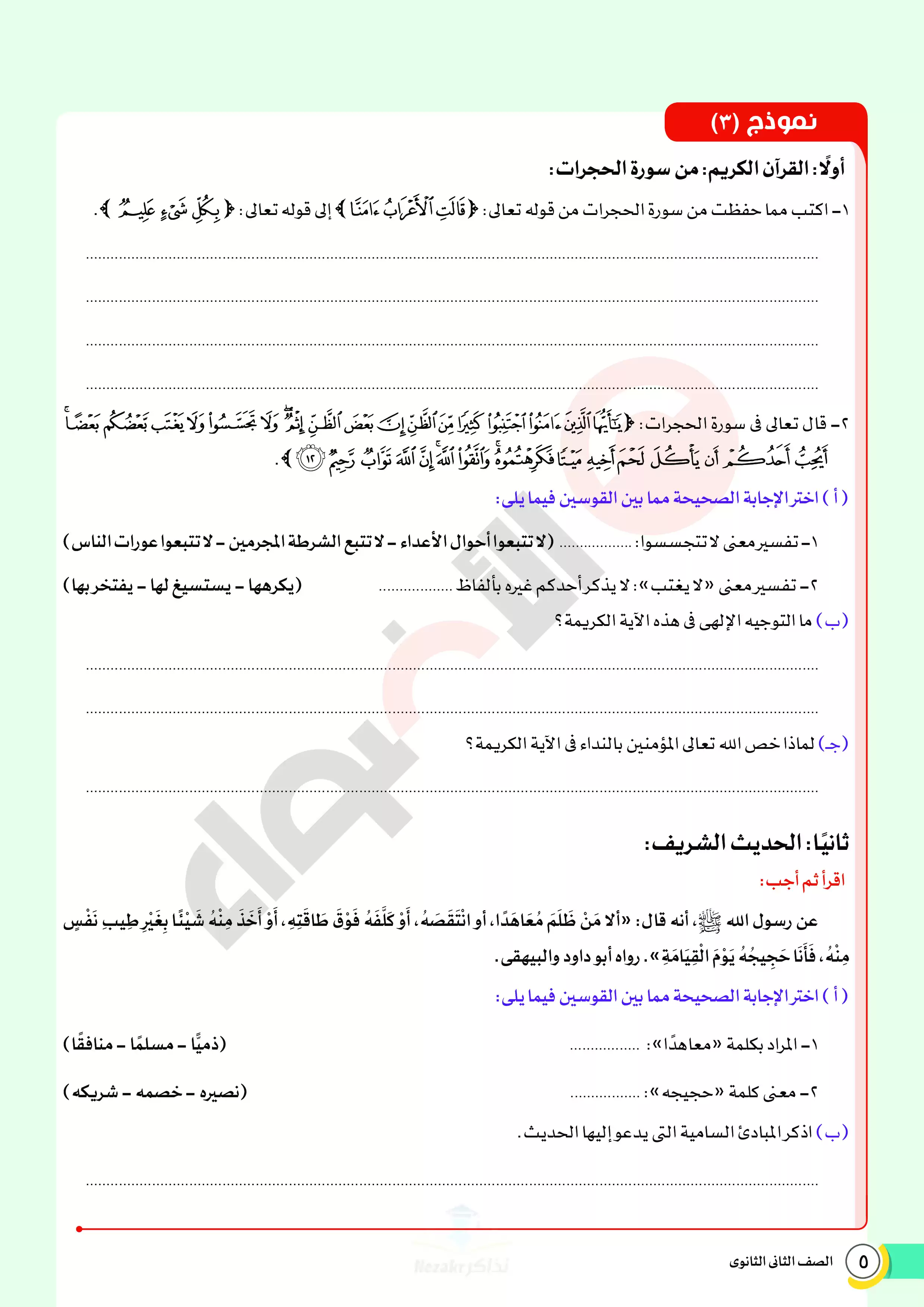 | بيانات الملف: (نماذج اختبارات ومراجعة الأضواء النهائية في مادة الدين للصف الثاني الثانوي الترم الثاني 2025 - Nezakr) | |