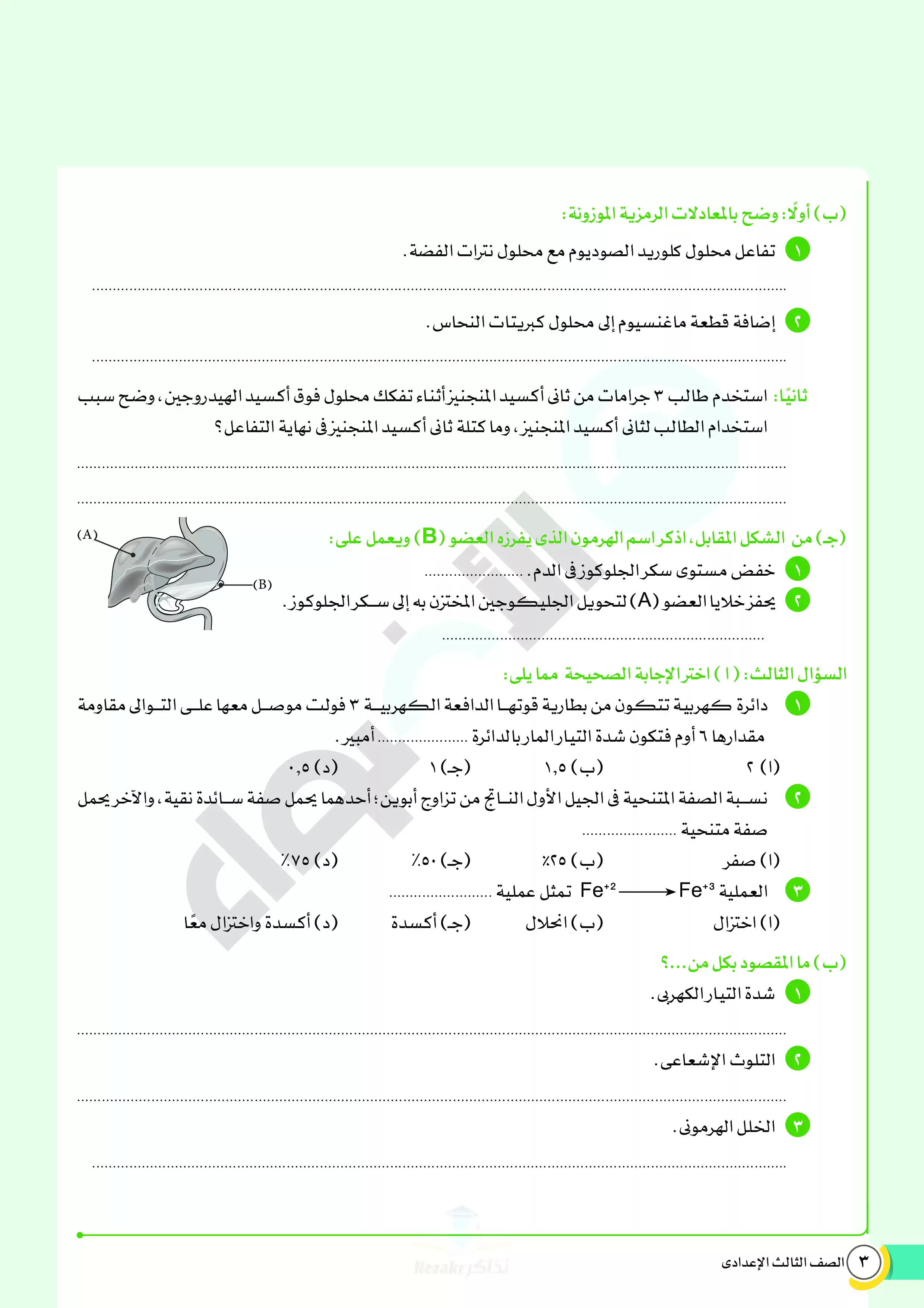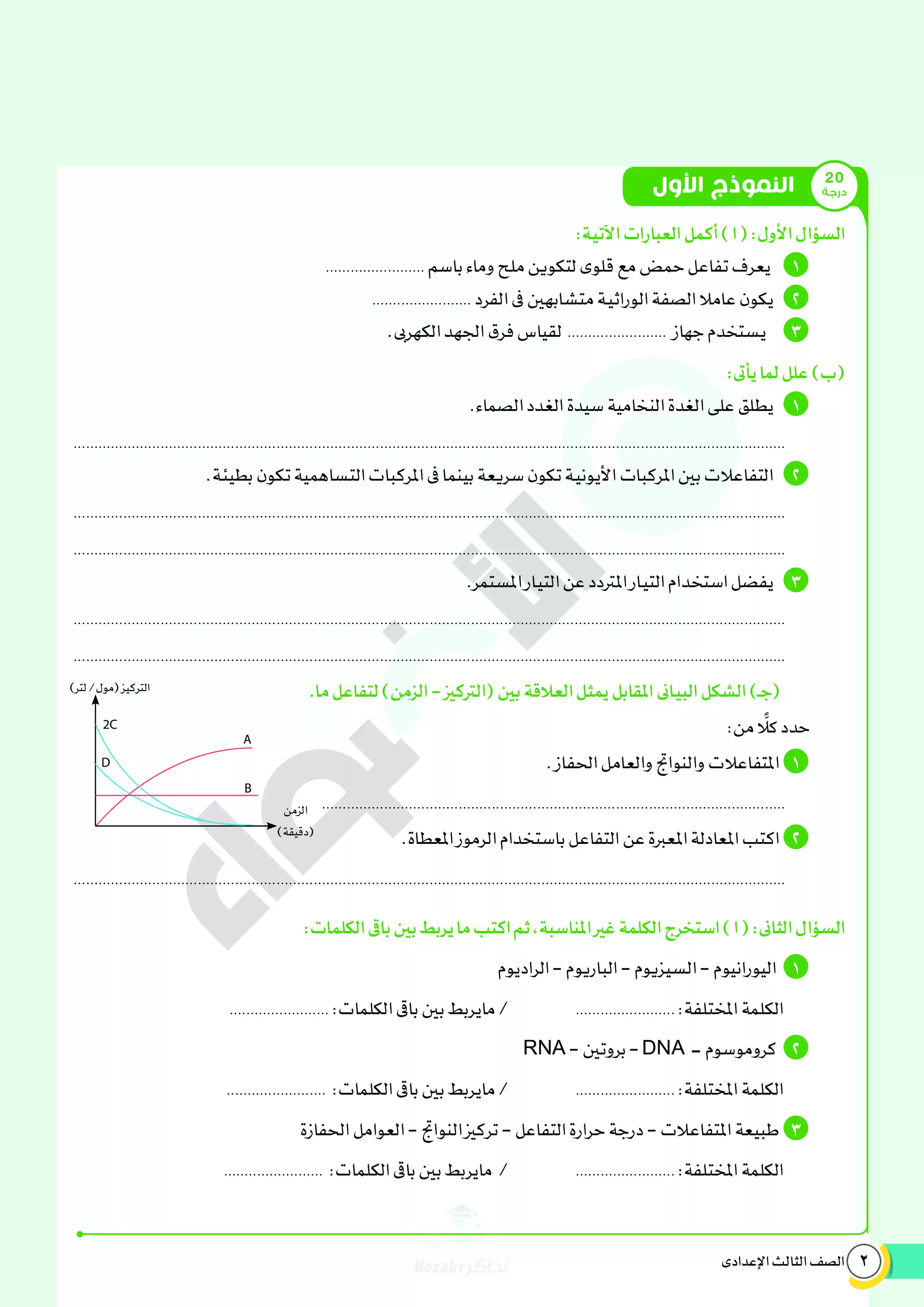 | بيانات الملف: (نماذج اختبارات ومراجعة الأضواء النهائية في مادة العلوم للصف الثالث الإعدادي الترم الثاني 2025 - Nezakr) | |
