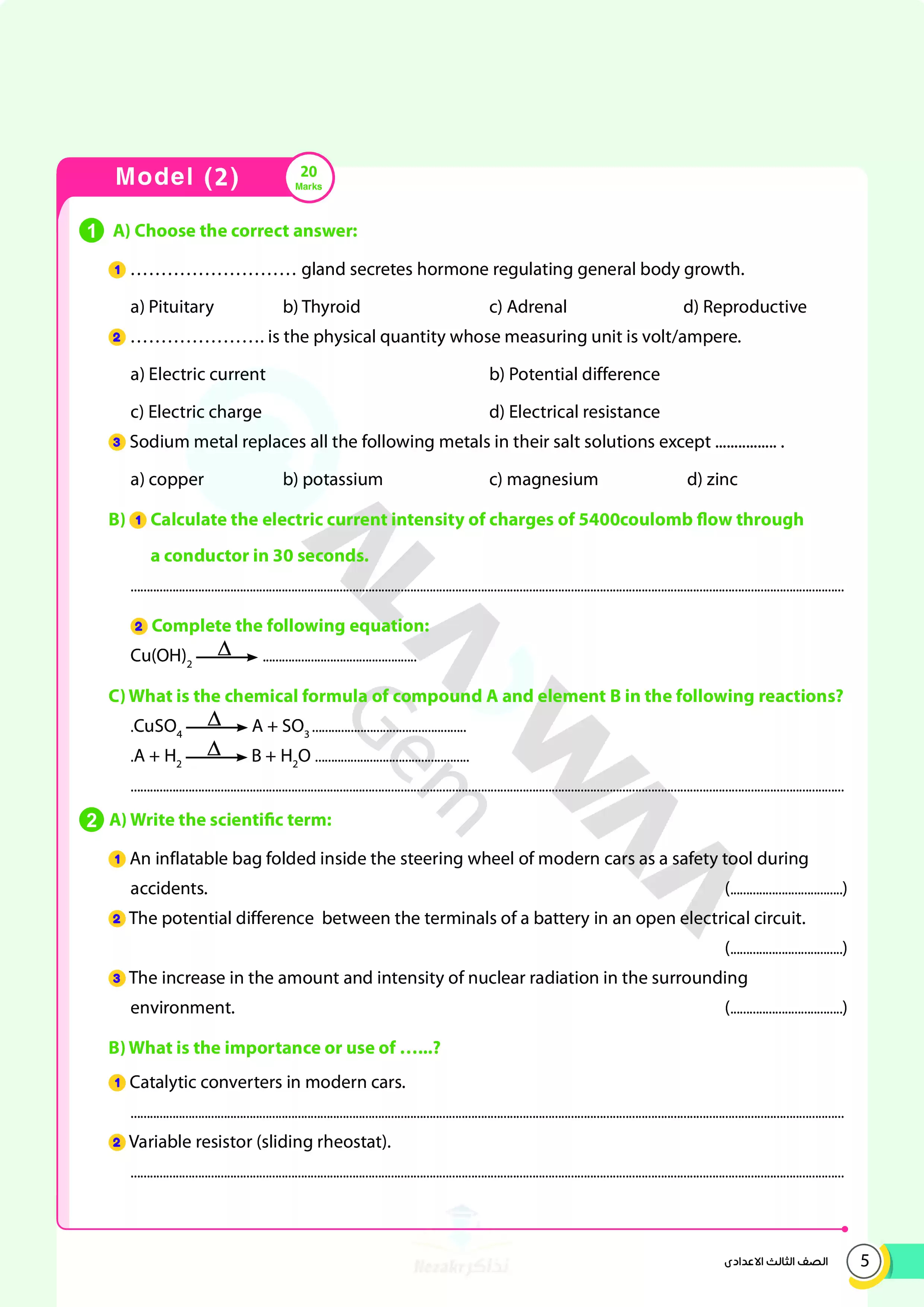 | بيانات الملف: (نماذج اختبارات ومراجعة الأضواء النهائية في الساينس science للصف الثالث الإعدادي الترم الثاني 2025 - Nezakr) | |