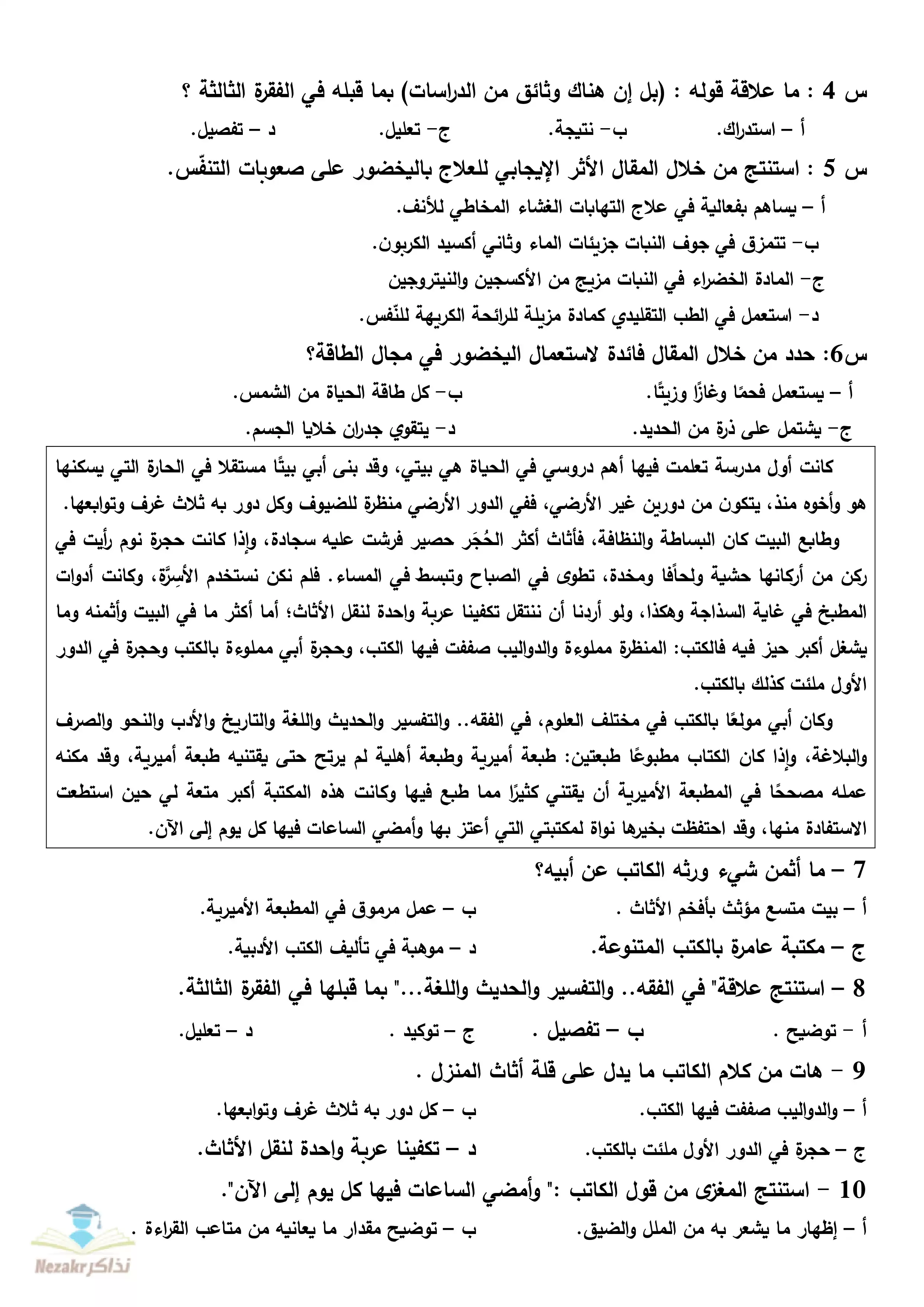 صفحة 4 من 9 صفحة من ملف: نموذج اختبار استرشادى في مادة اللغة العربية للصف الثالث الثانوي من وزارة التربية والتعليم - Nezakr