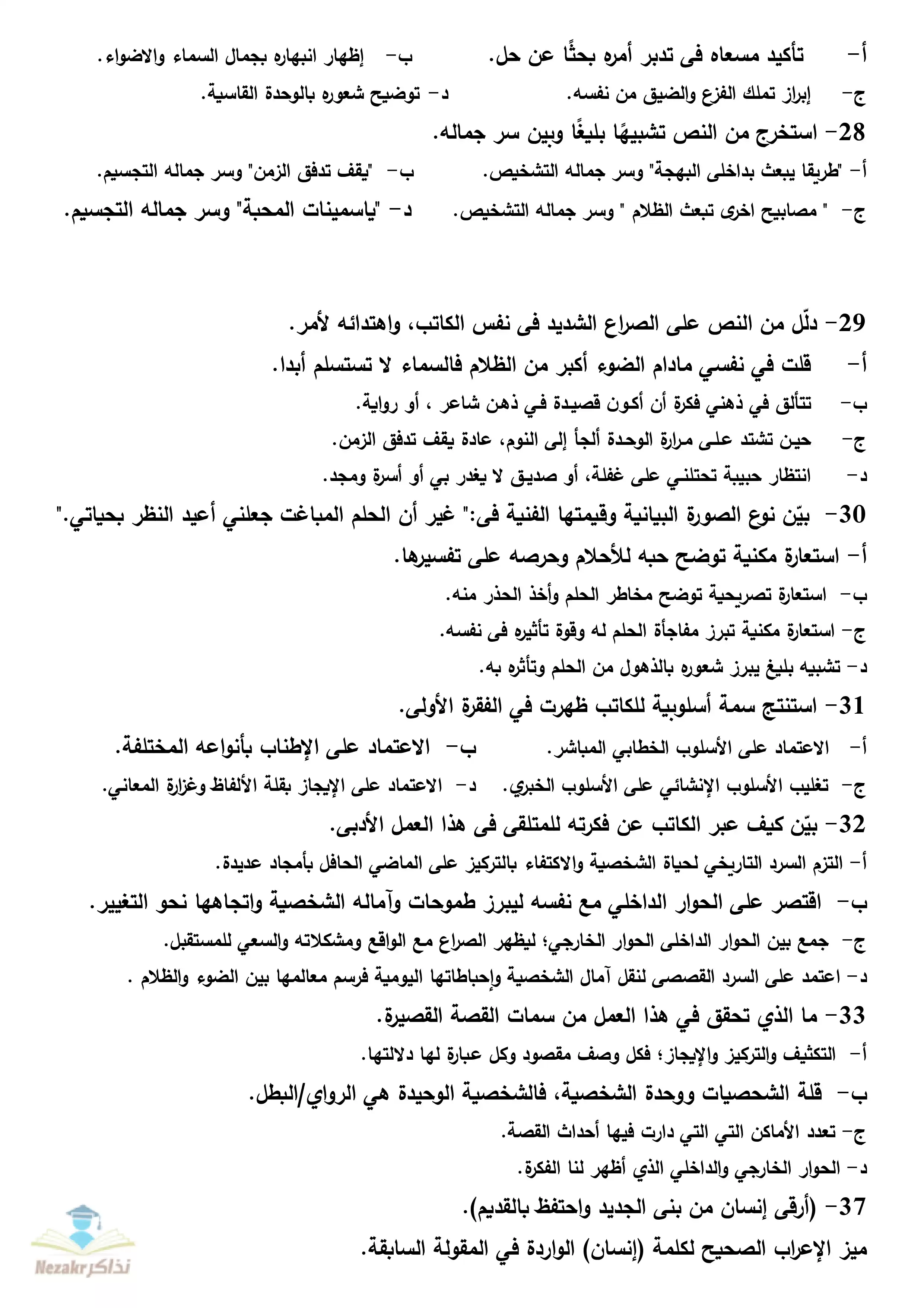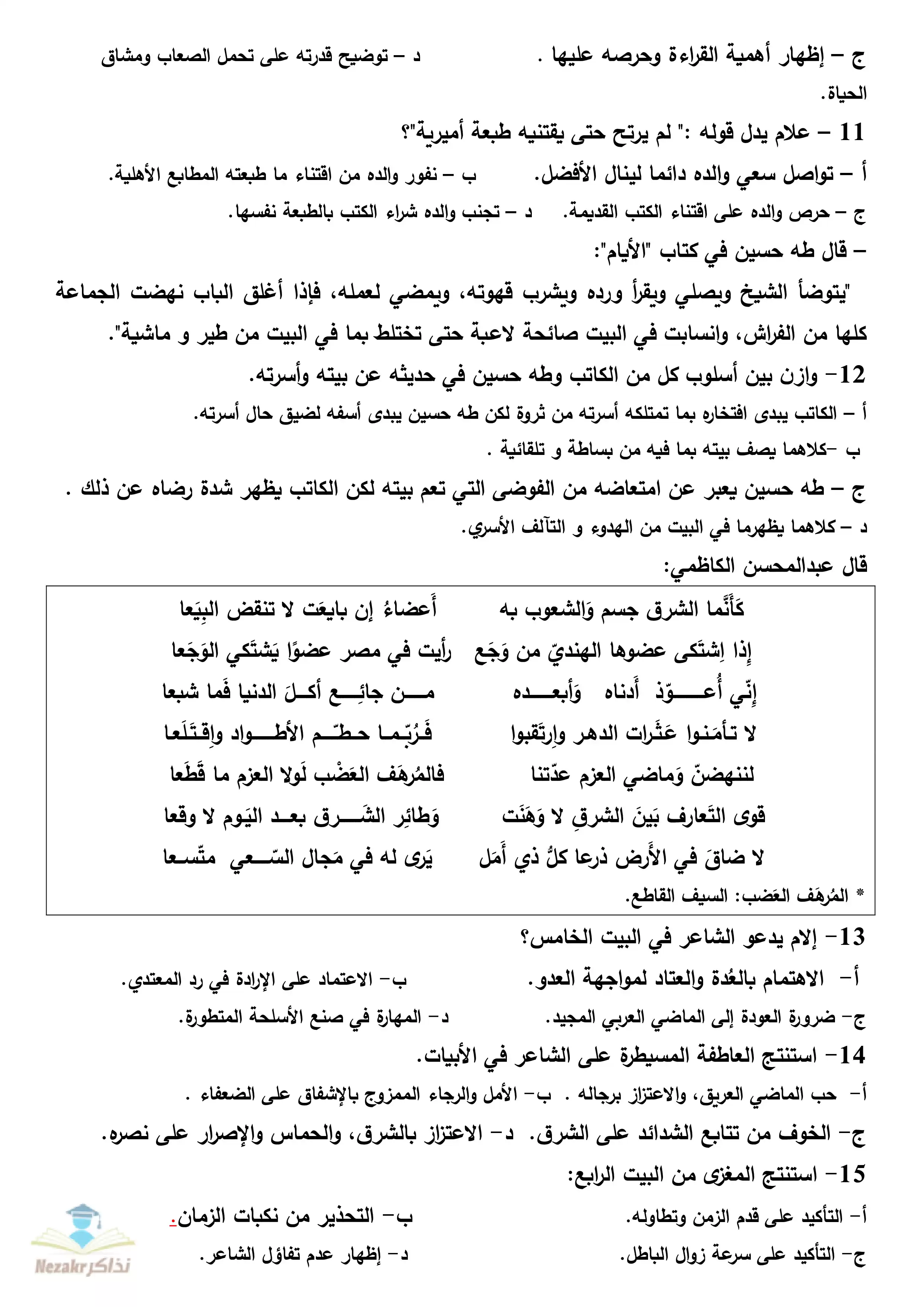صفحة 3 من 9 صفحة من ملف: نموذج اختبار استرشادى في مادة اللغة العربية للصف الثالث الثانوي من وزارة التربية والتعليم - Nezakr