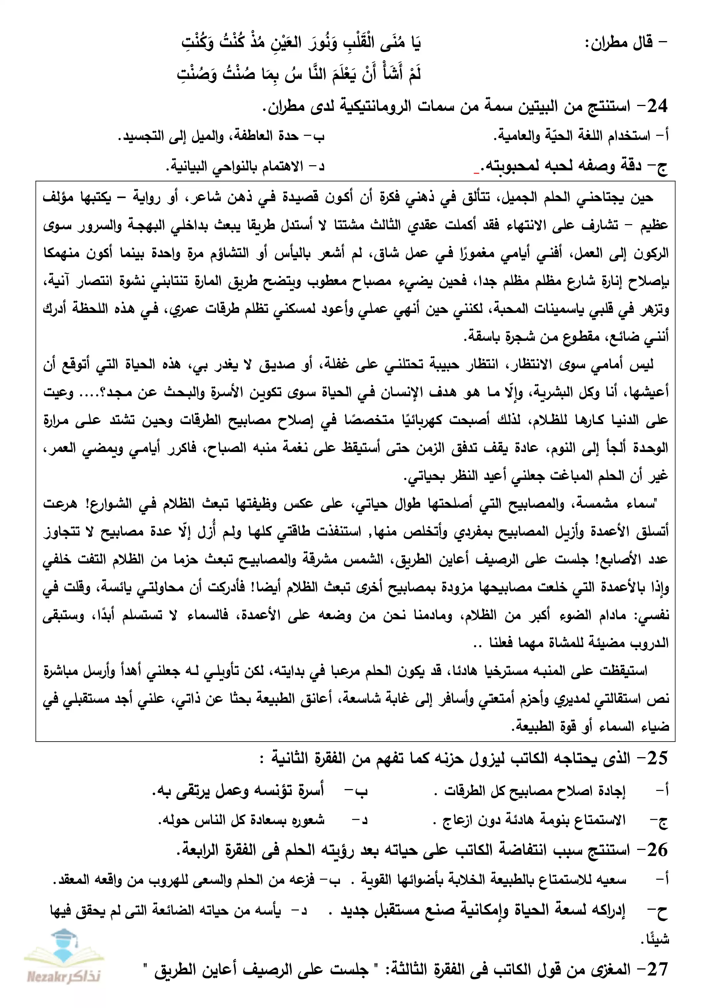 انظر أيضاً: امتحانات اللغة العربية في الأعوام الماضية للثانوية العامة أعوام 2021 و 2022 و 2023 دور أول وثاني