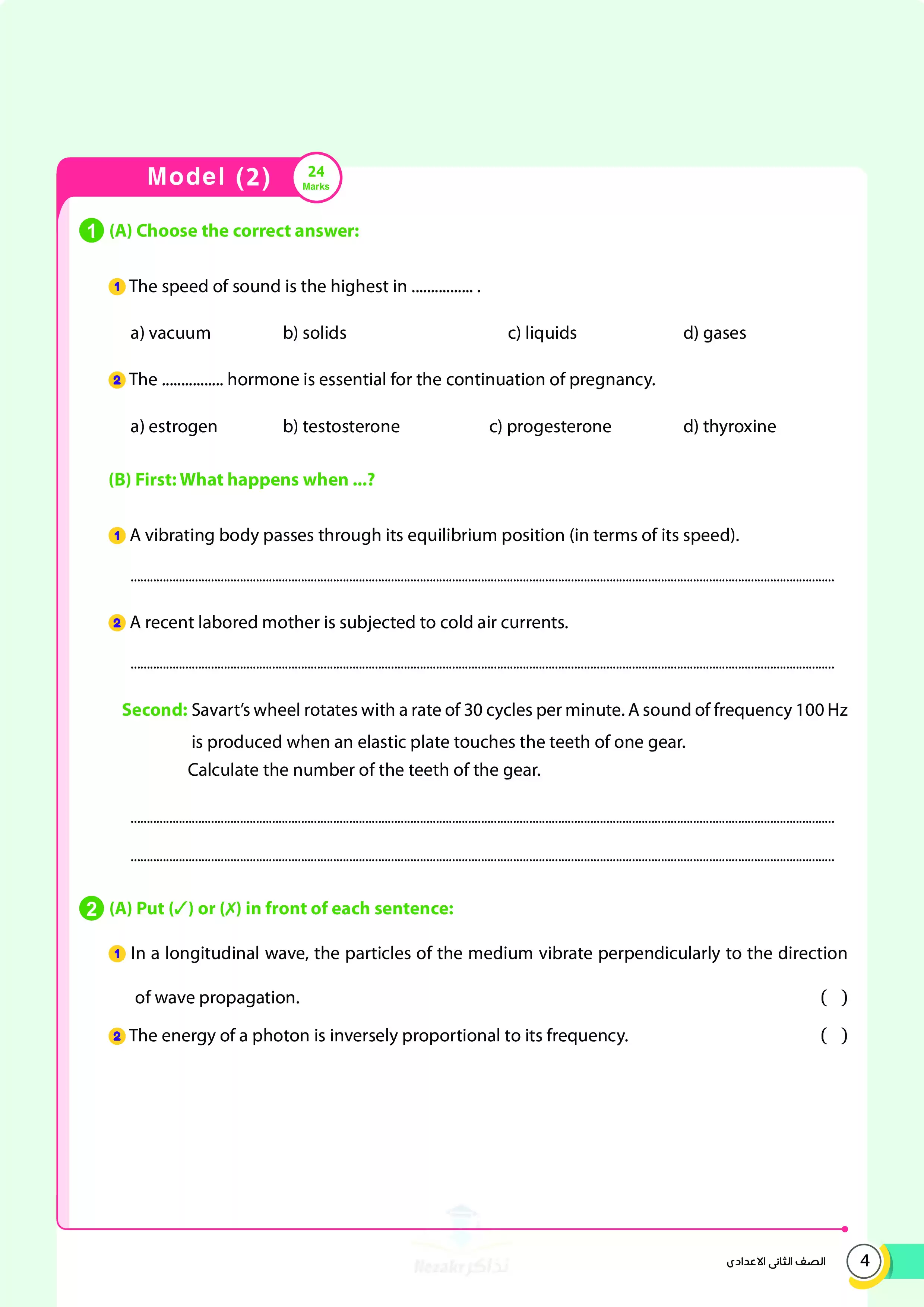نقدم لكم، أولياء الأمور وطلاب الصف الثاني الإعدادي، نماذج امتحانات الأضواء الاسترشادية في مادة العلوم للغات (الساينس science) للصف الثاني الإعدادي الترم الثاني 2025، وهي نماذج مميزة قام بإعدادها كتاب الأضواء وذلك للمراجعة النهائية على مقرر العلوم باللغة الإنجليزية الساينس في الترم الثاني للمرحلة الإعدادية الصف الثاني الإعدادي.