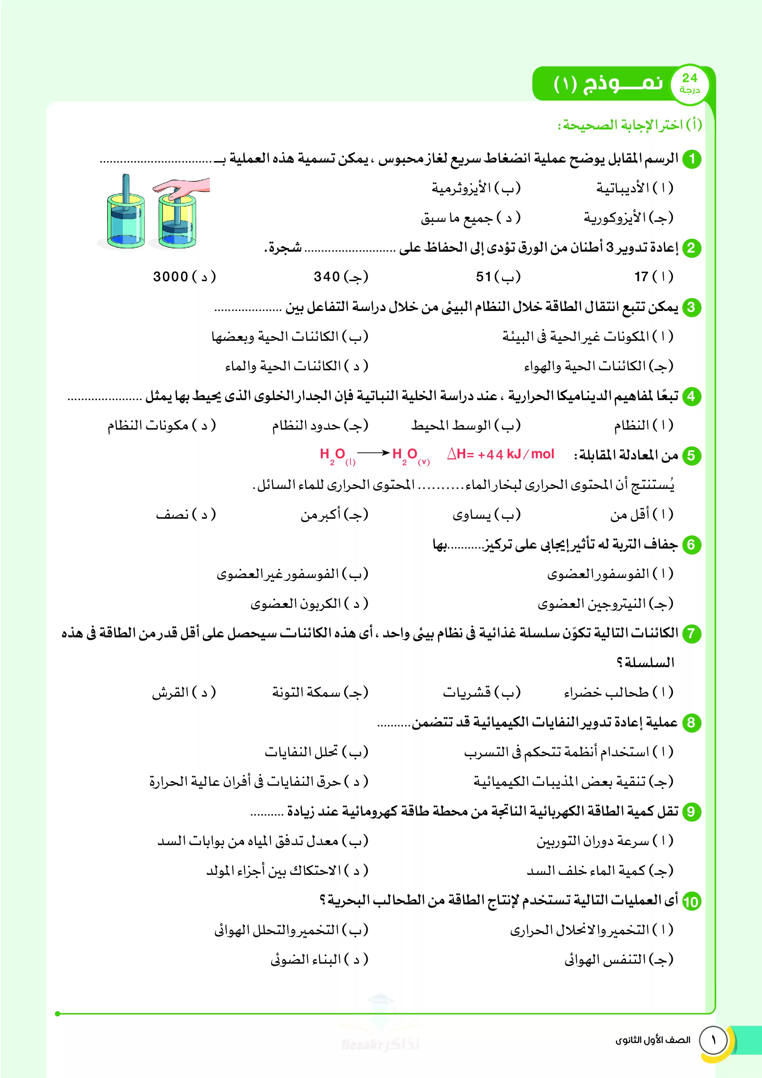 صفحة 2 من 34 صفحة من ملف: نماذج اختبارات ومراجعة الأضواء النهائية في مادة العلوم المتكاملة للصف الأول الثانوي الترم الثاني 2025 - Nezakr