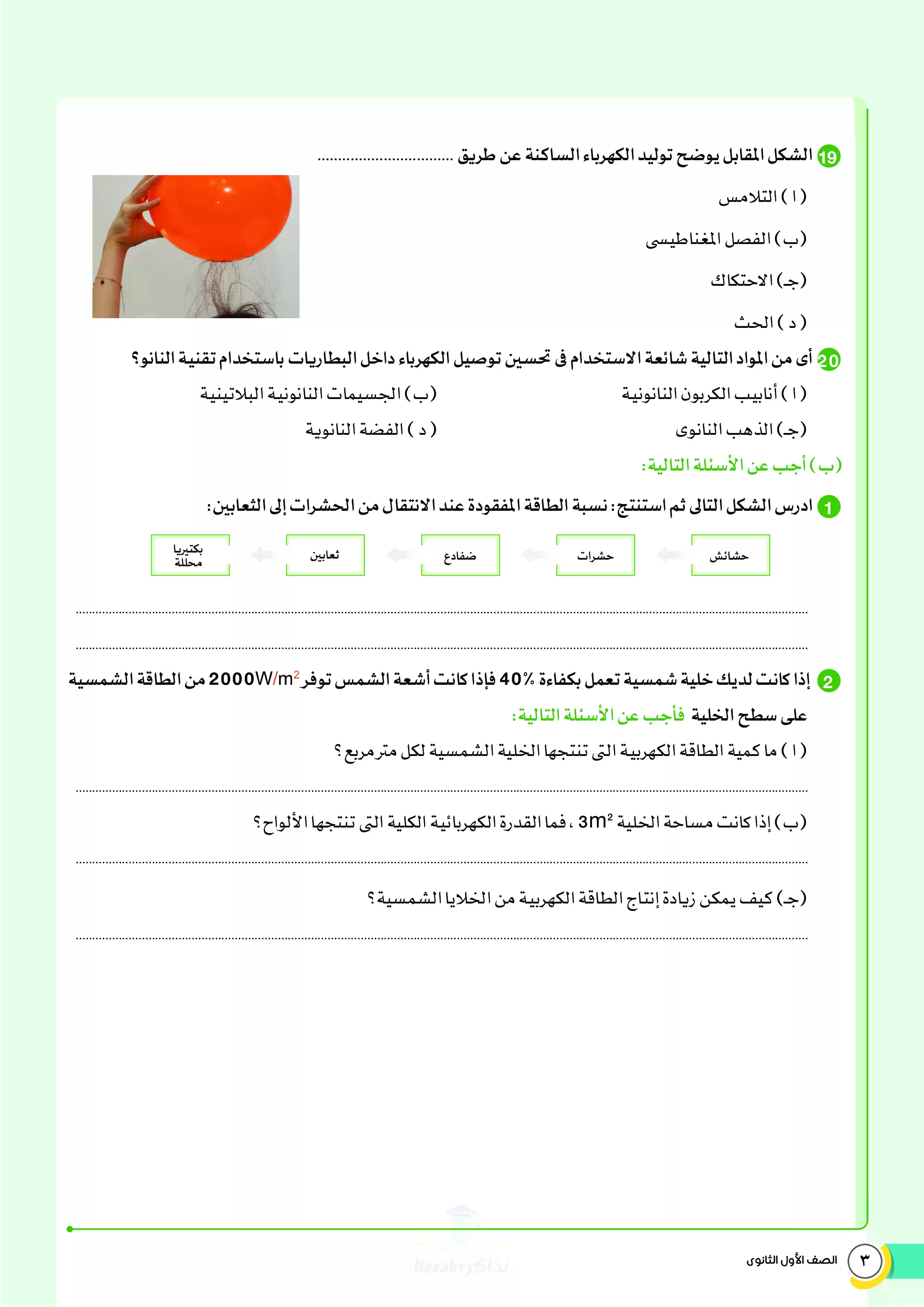 صفحة 3 من 34 صفحة من ملف: نماذج اختبارات ومراجعة الأضواء النهائية في مادة العلوم المتكاملة للصف الأول الثانوي الترم الثاني 2025 - Nezakr