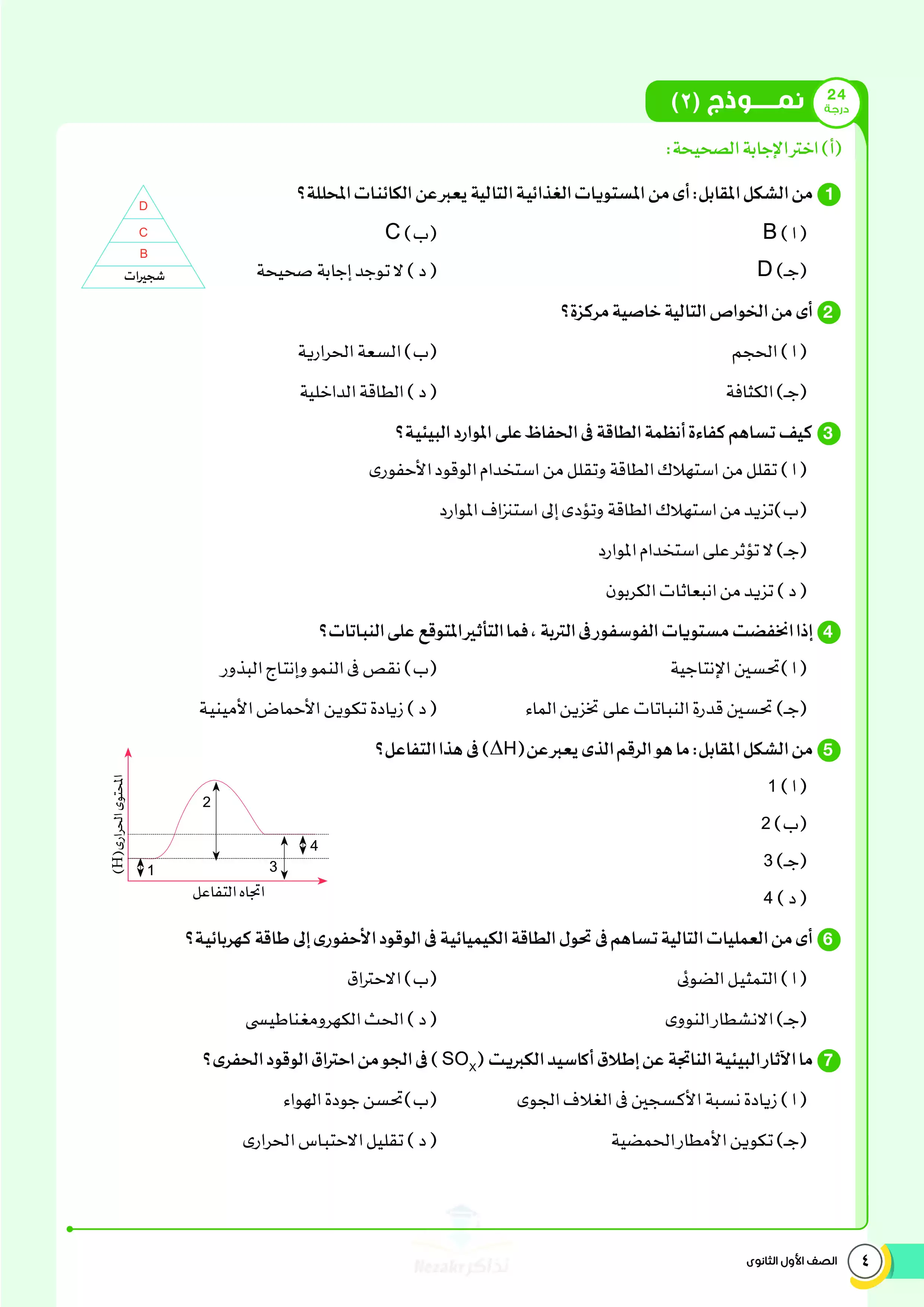 صفحة 4 من 34 صفحة من ملف: نماذج اختبارات ومراجعة الأضواء النهائية في مادة العلوم المتكاملة للصف الأول الثانوي الترم الثاني 2025 - Nezakr