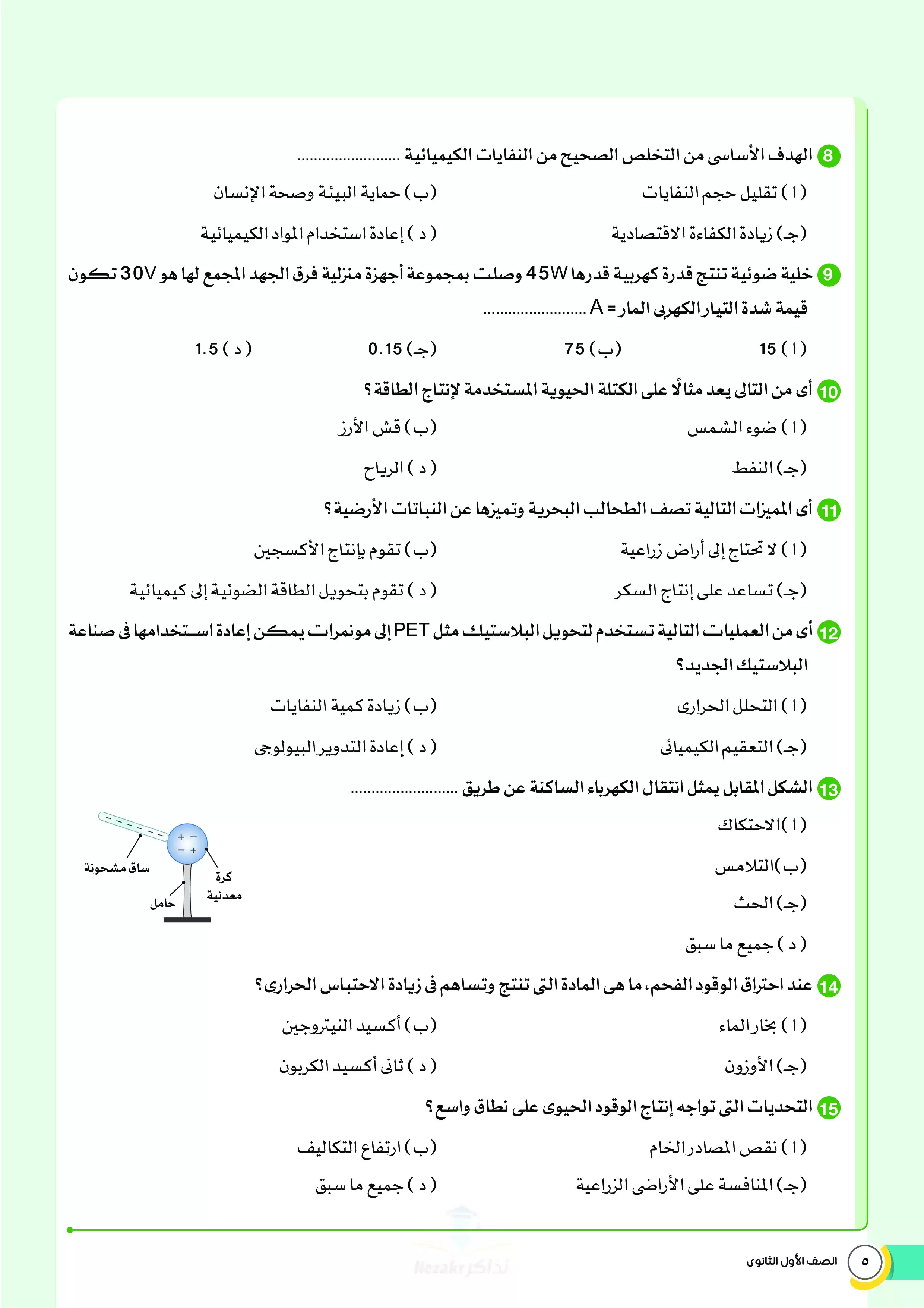 صفحة 5 من 34 صفحة من ملف: نماذج اختبارات ومراجعة الأضواء النهائية في مادة العلوم المتكاملة للصف الأول الثانوي الترم الثاني 2025 - Nezakr