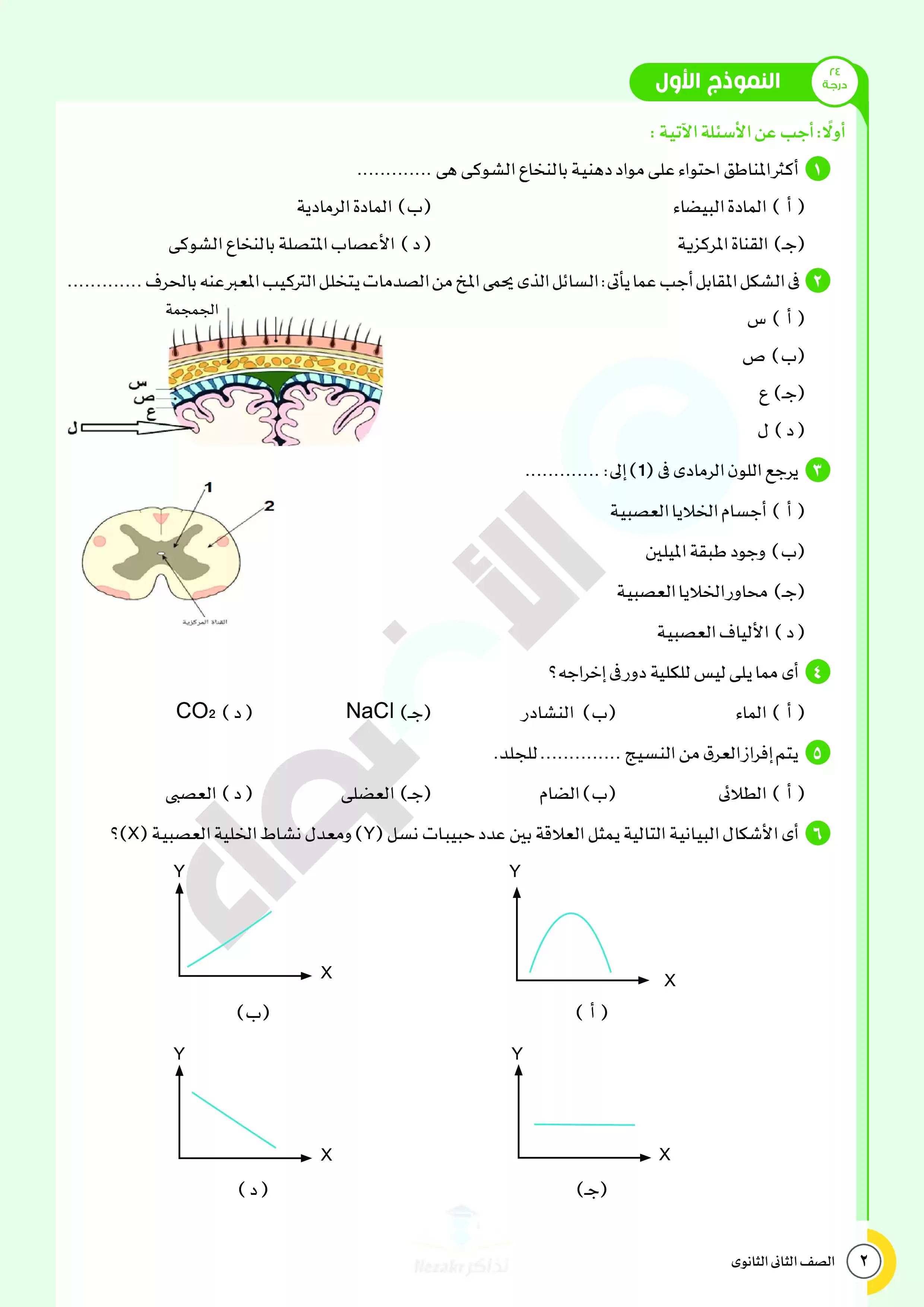 صفحة 2 من 34 صفحة من ملف: نماذج اختبارات ومراجعة الأضواء النهائية في مادة الأحياء للصف الثاني الثانوي الترم الثاني 2025 - Nezakr