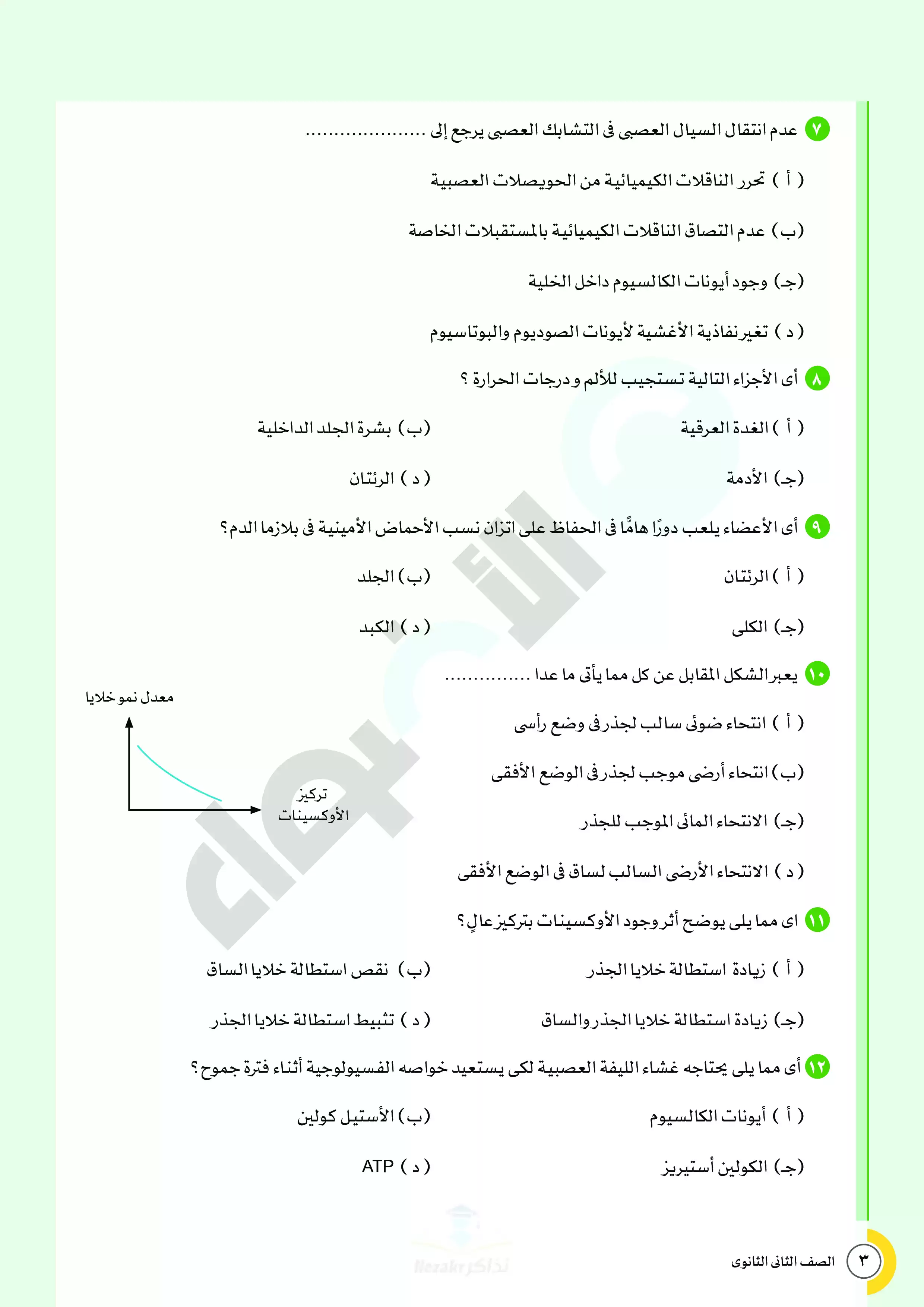 صفحة 3 من 34 صفحة من ملف: نماذج اختبارات ومراجعة الأضواء النهائية في مادة الأحياء للصف الثاني الثانوي الترم الثاني 2025 - Nezakr